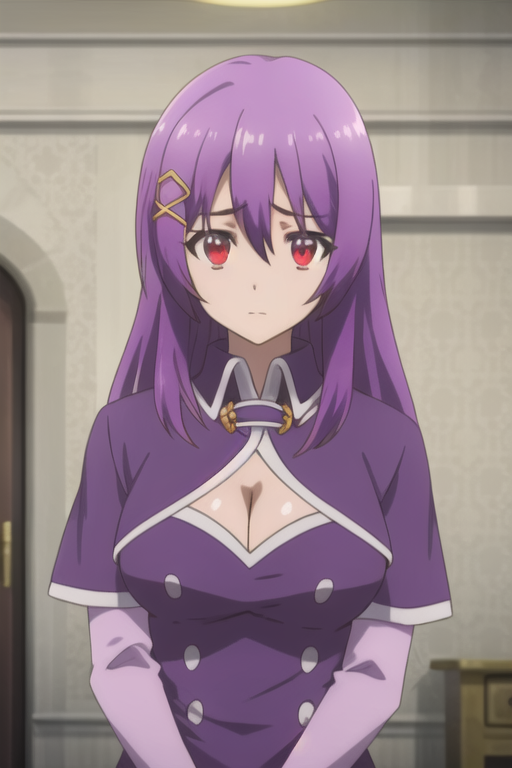 Trigger Words: arcena norman, long hair, purple hair, red eyes