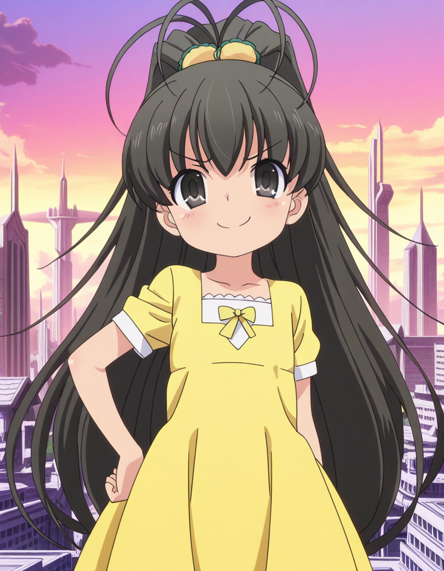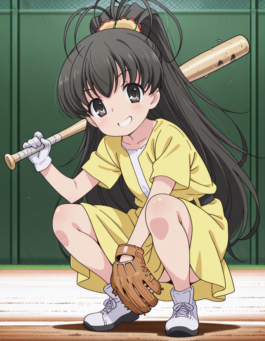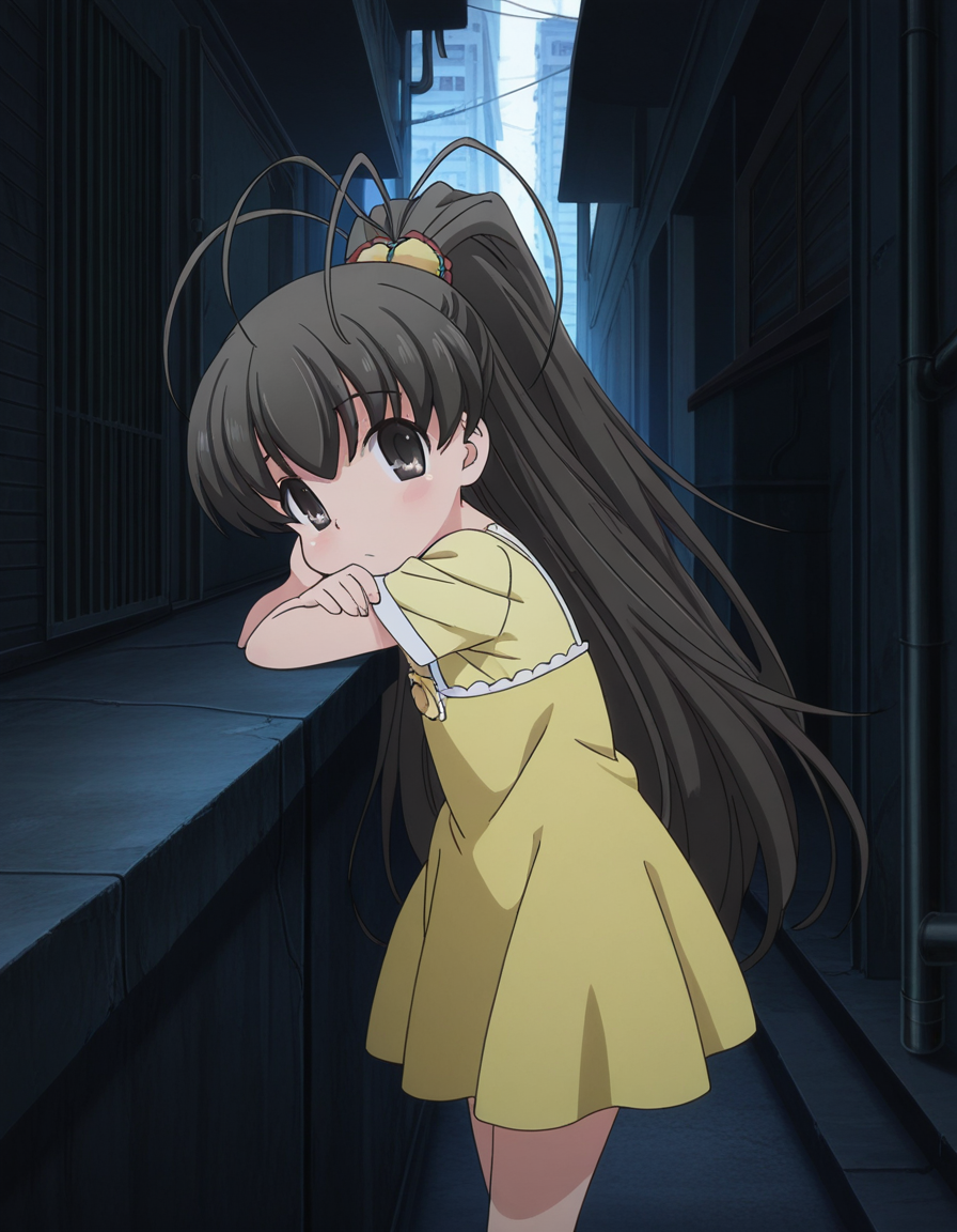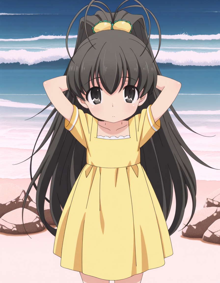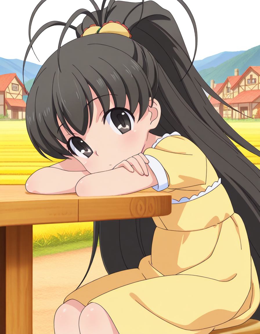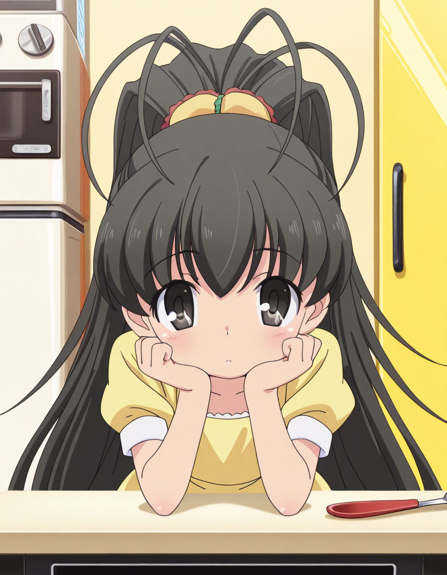 hina takanashi, long hair, black hair, black eyes, ponytail, antenna hair, anime screencap