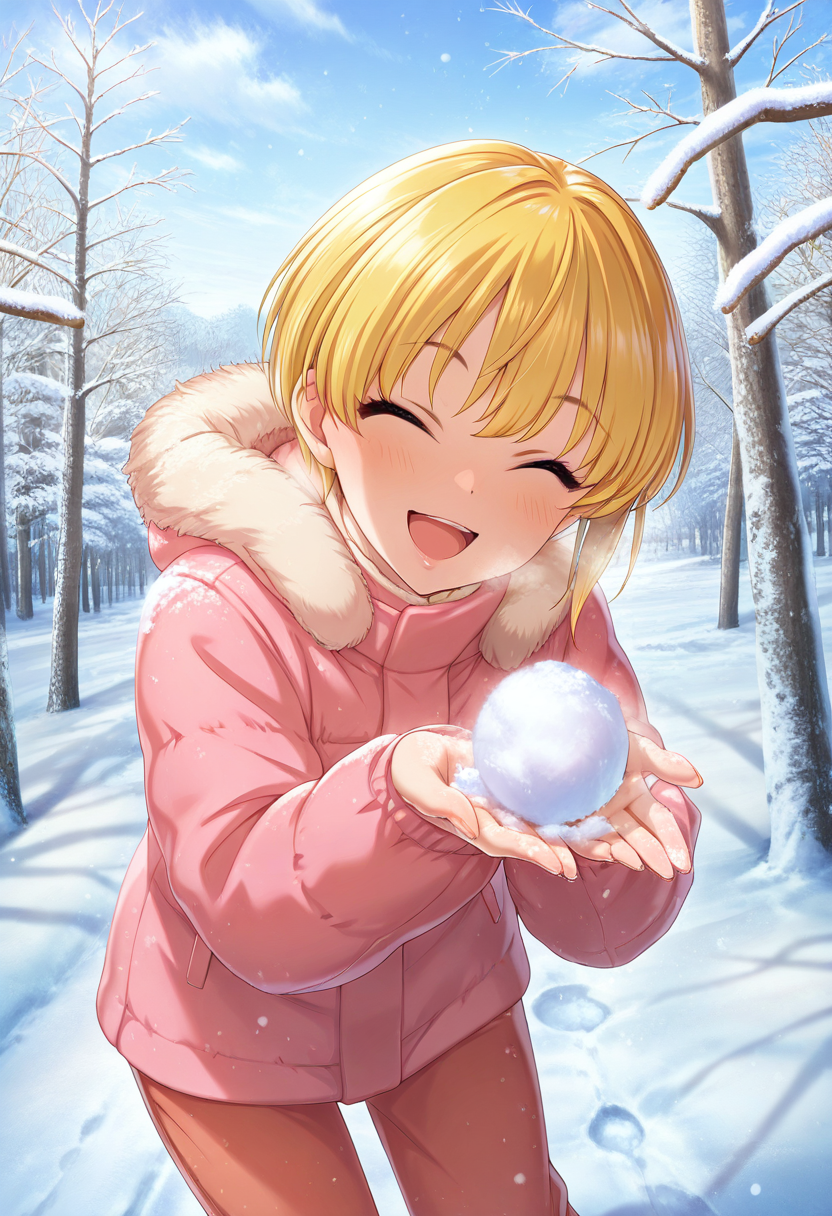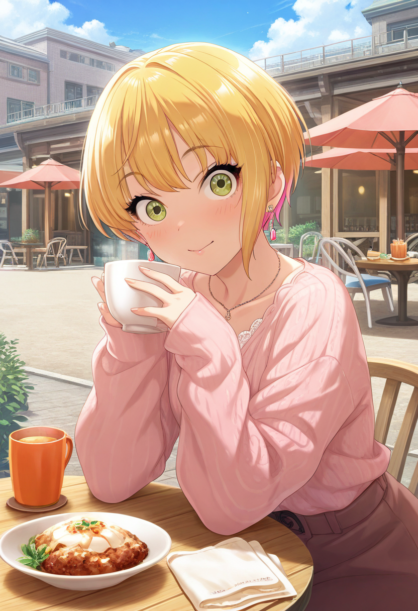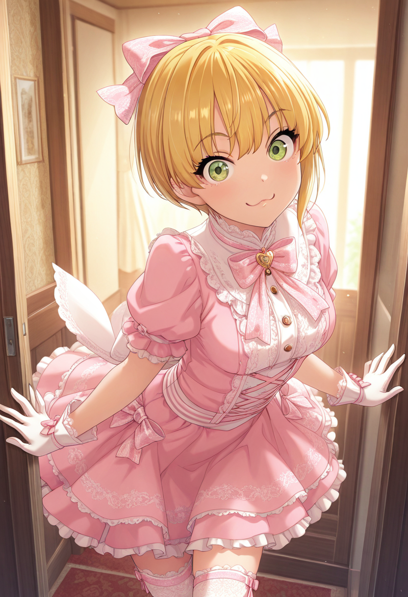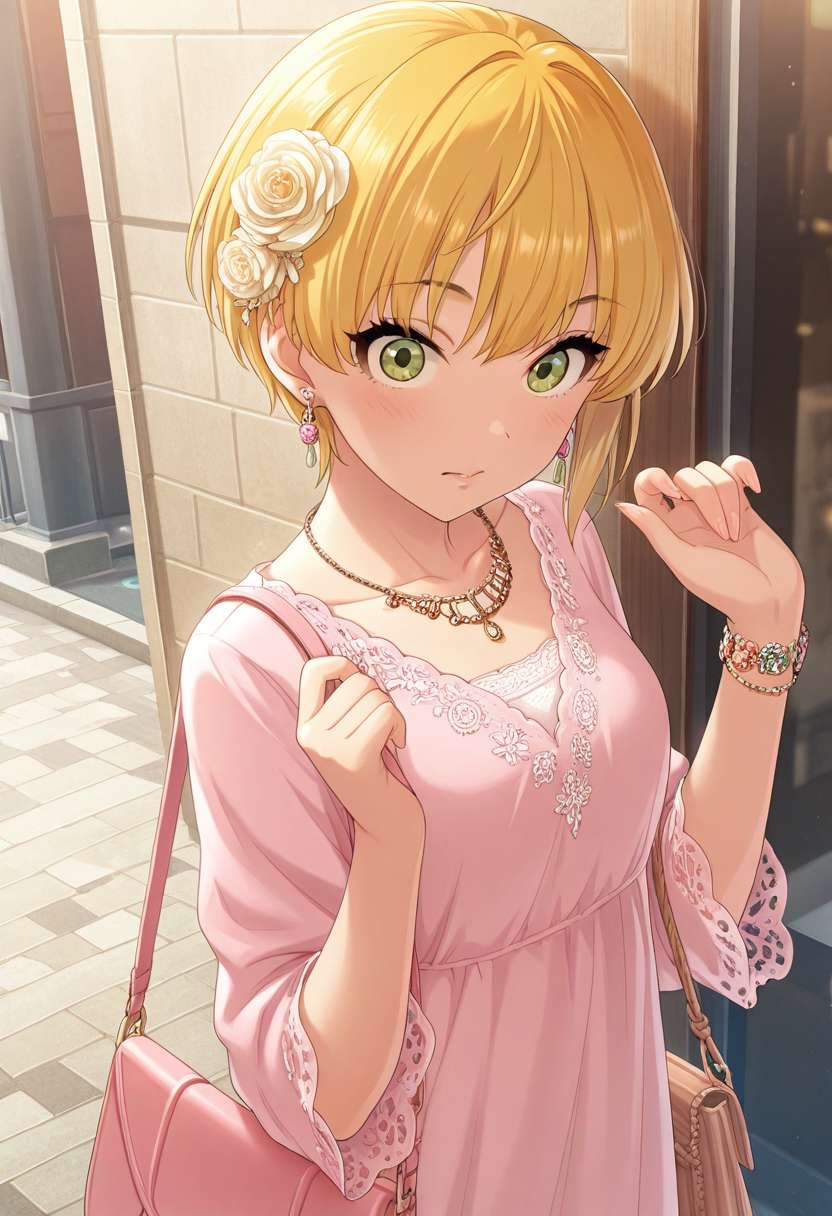 Trigger Words: miyamoto furederika, short hair, blonde hair, green eyes