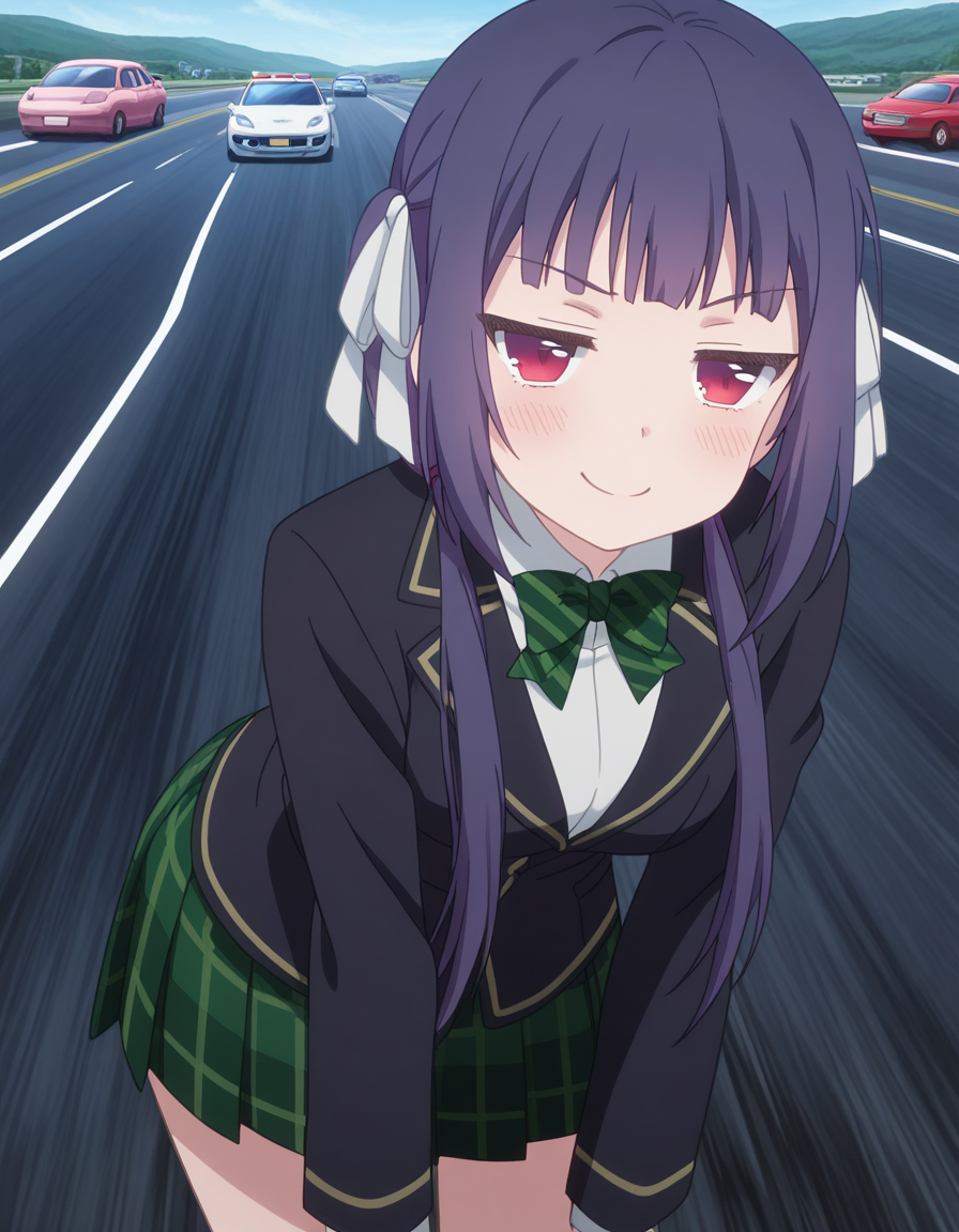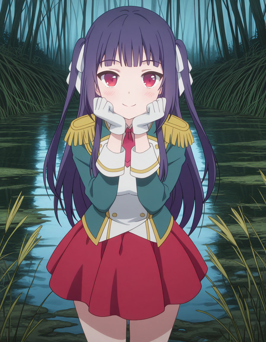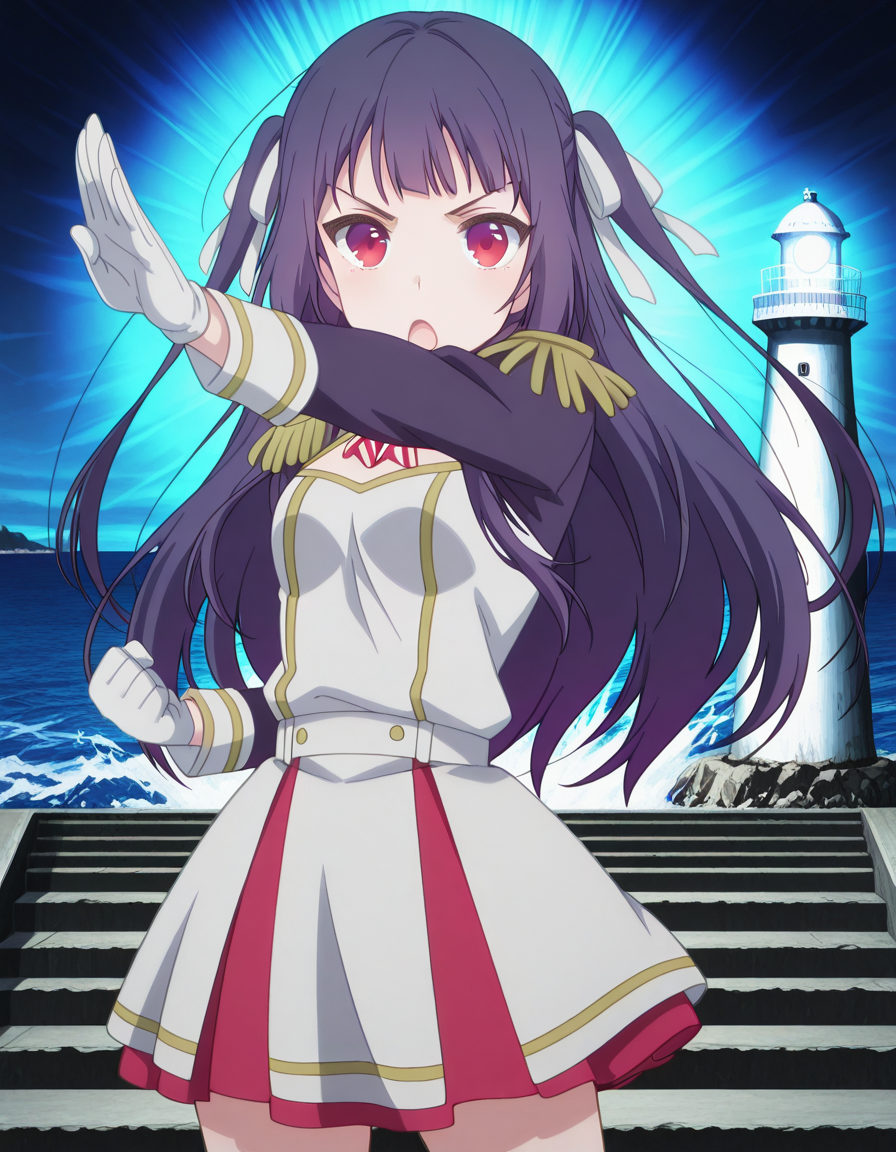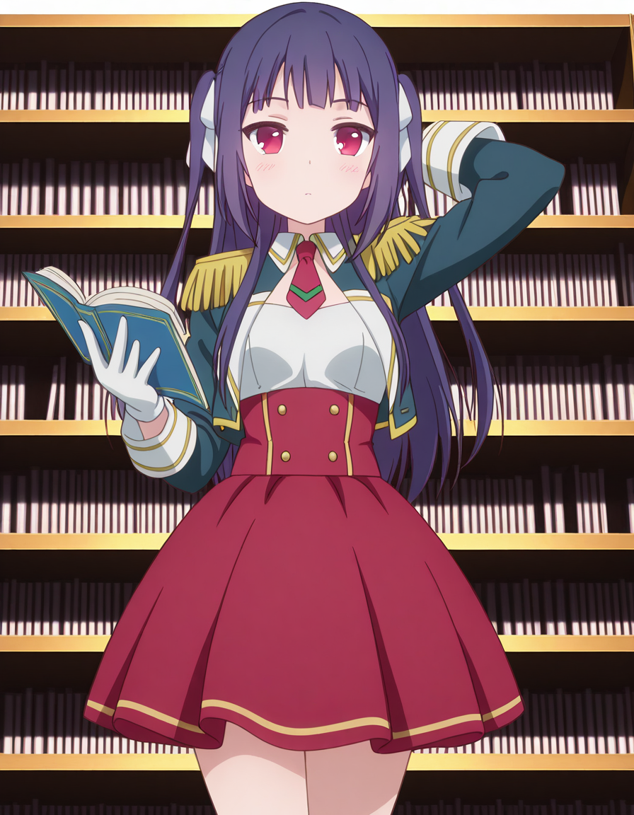 ringo kinoshita, long hair, bangs, purple hair, red eyes, bangs, mature female, small breasts, anime screencap