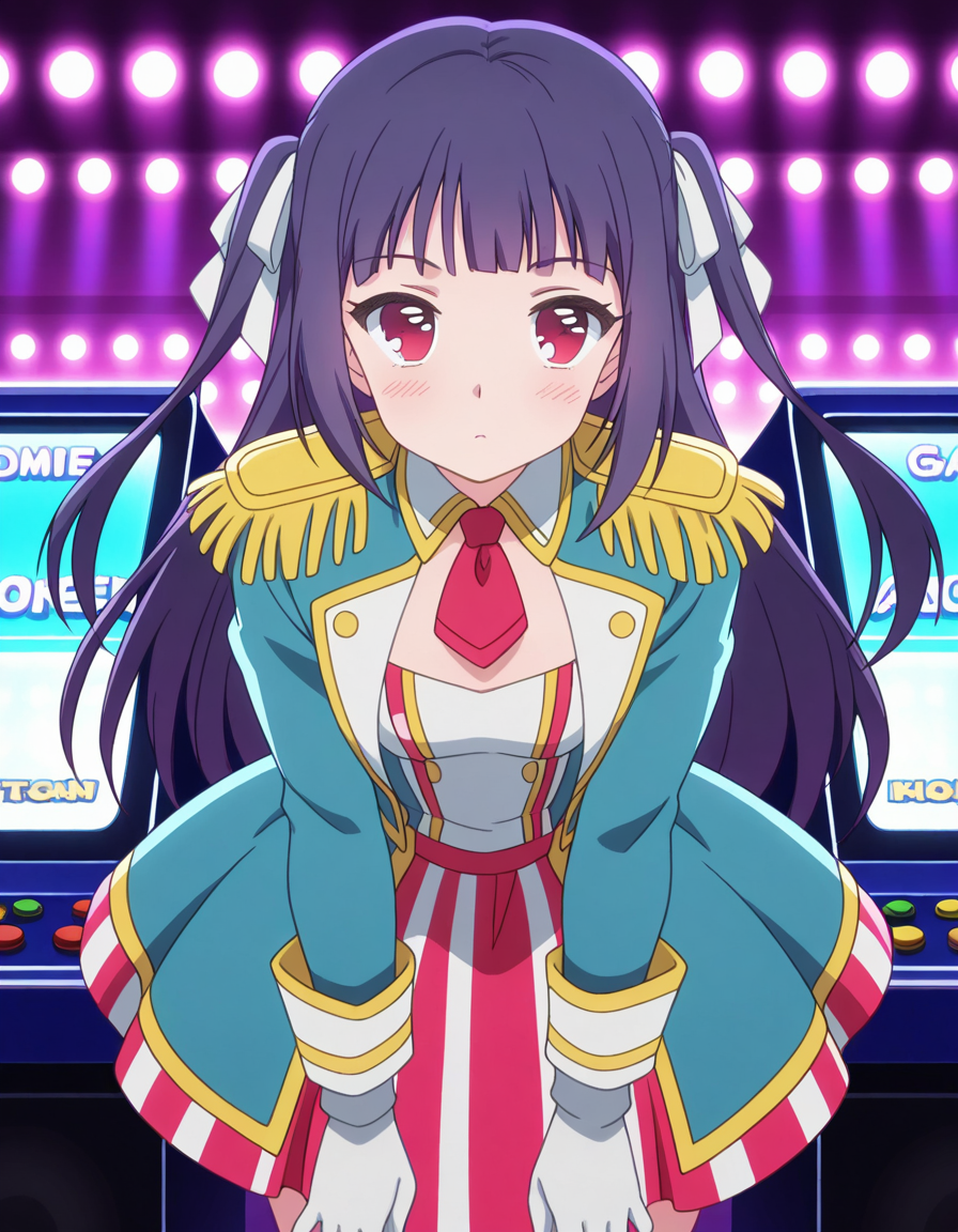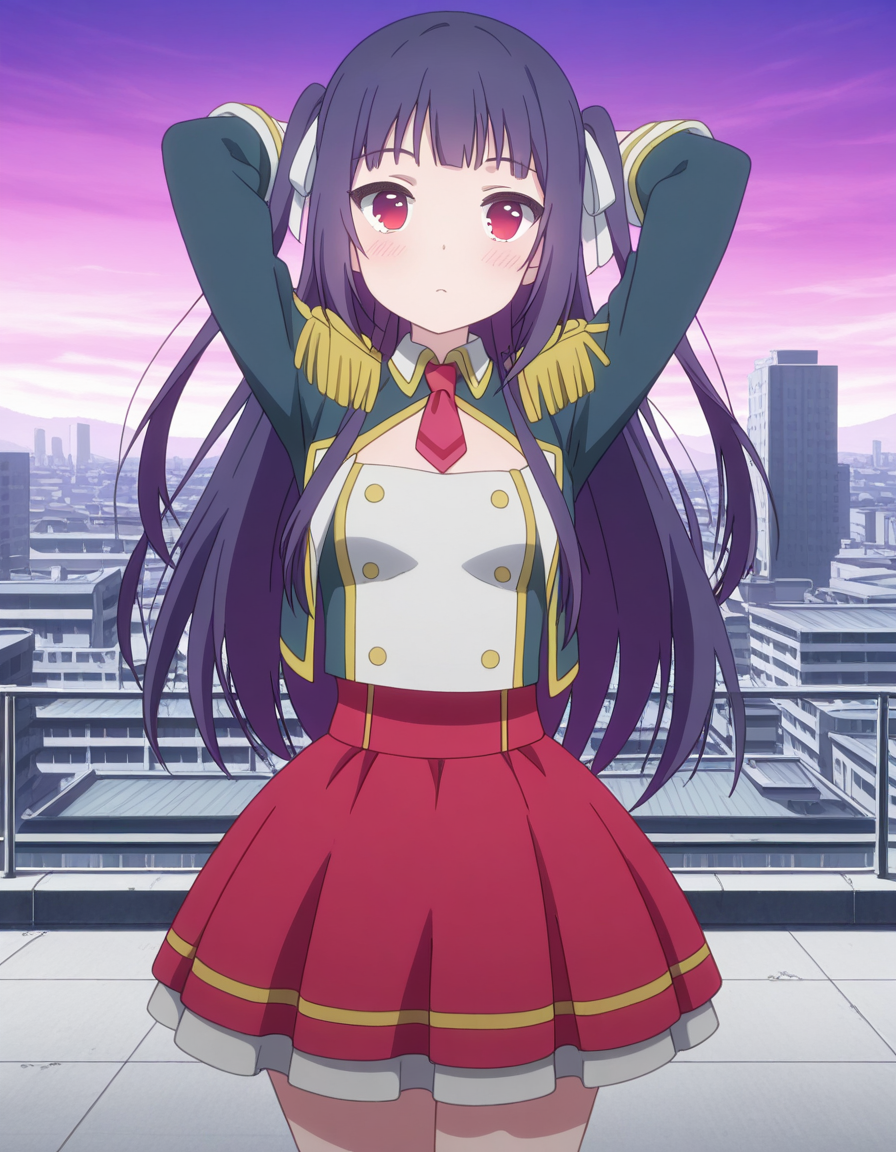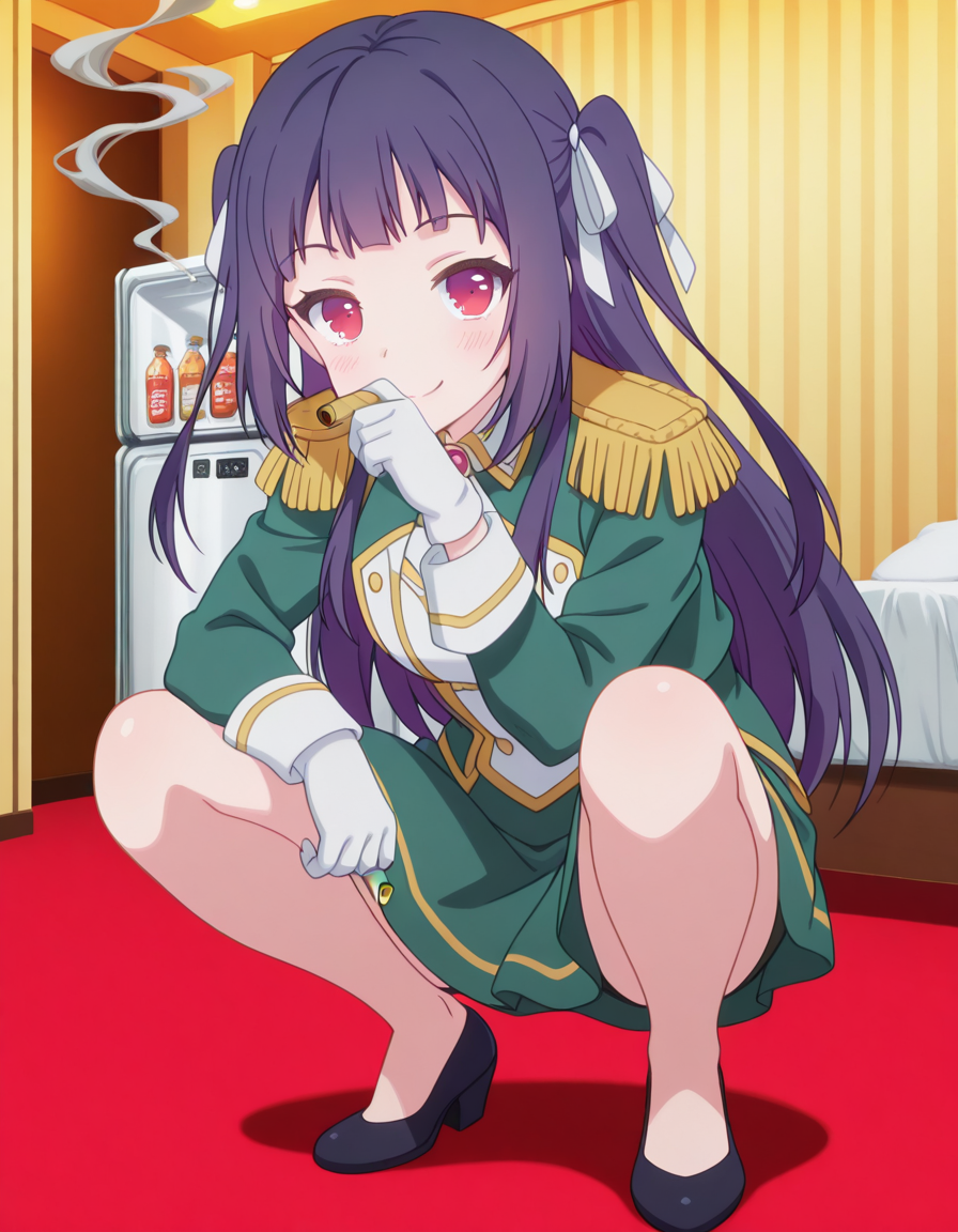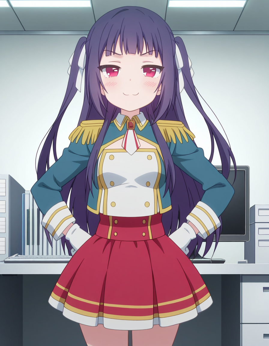 ringo kinoshita, long hair, bangs, purple hair, red eyes, bangs, mature female, small breasts, anime screencap
