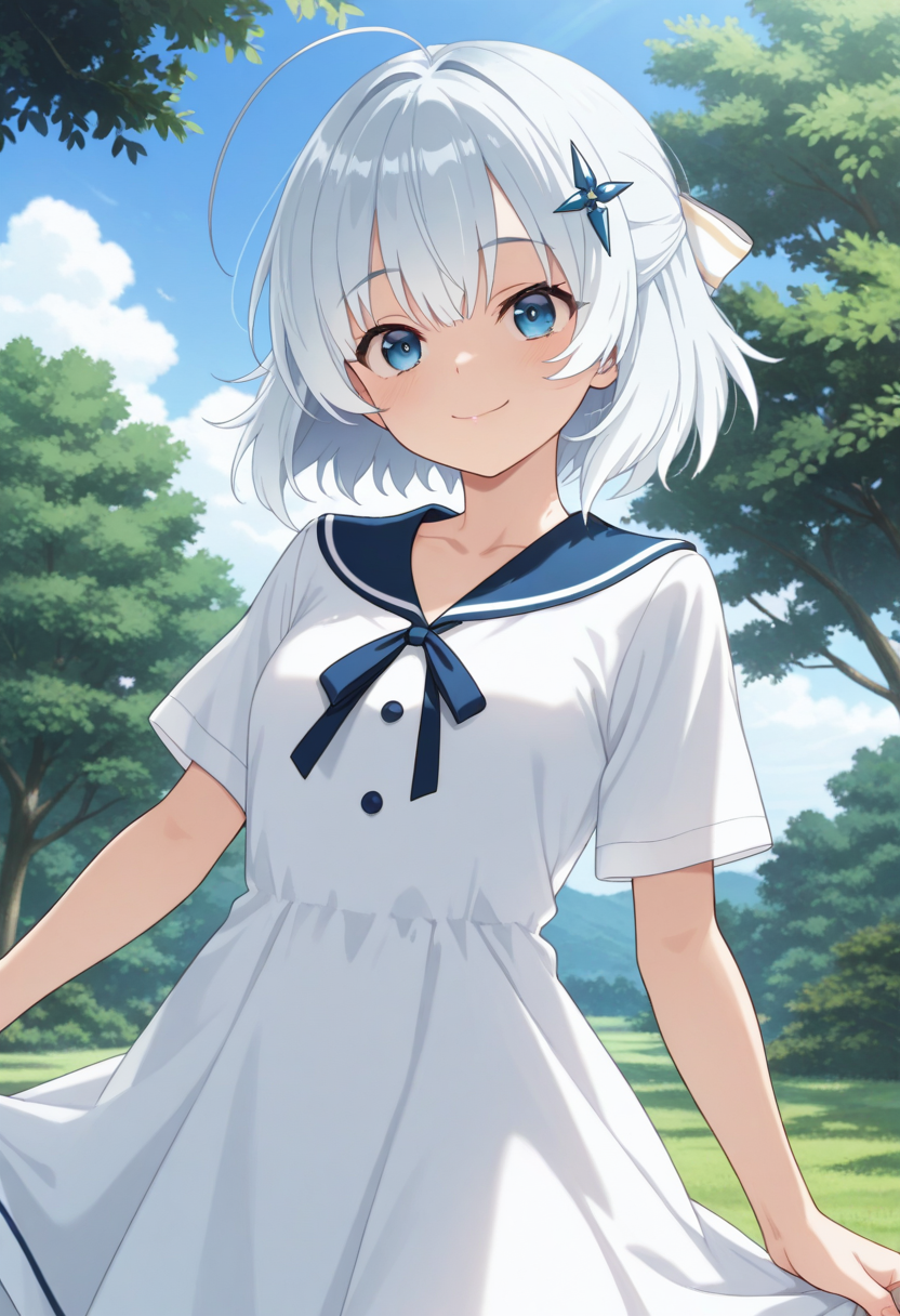 Trigger Words: tina howard, white hair, blue eyes, short hair
