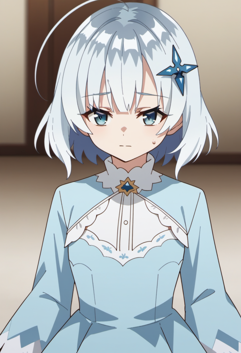 Trigger Words: tina howard, white hair, blue eyes, short hair