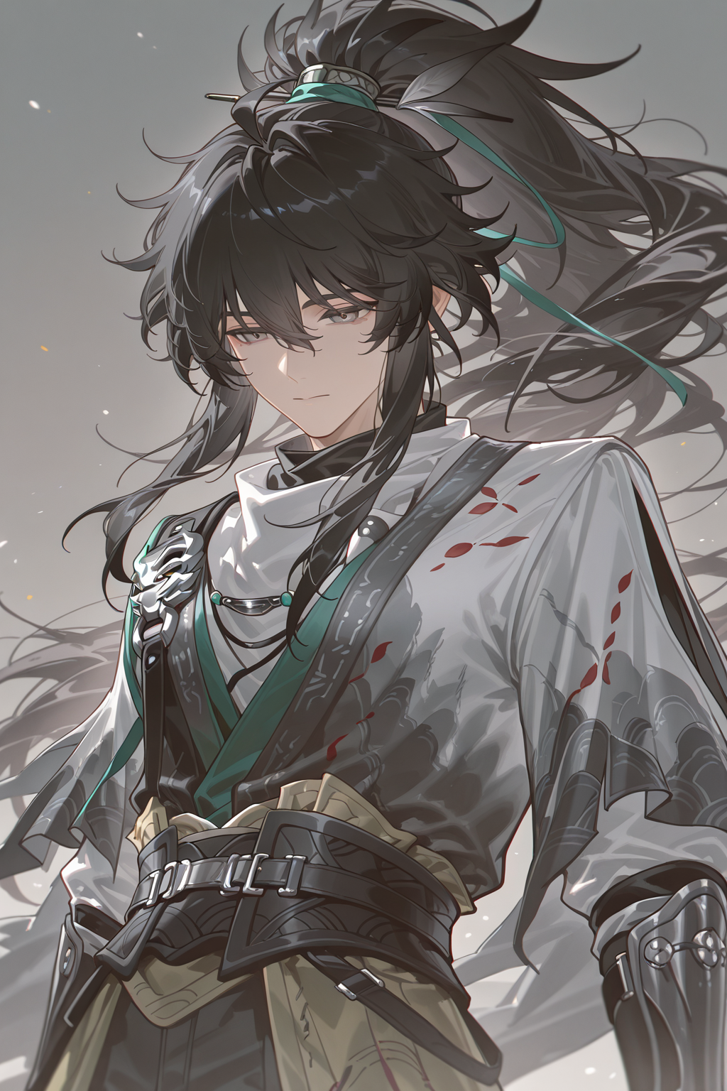 触发词: qiuyuan \(wuthering waves\), 1boy, solo, black hair, long hair,grey_eyes