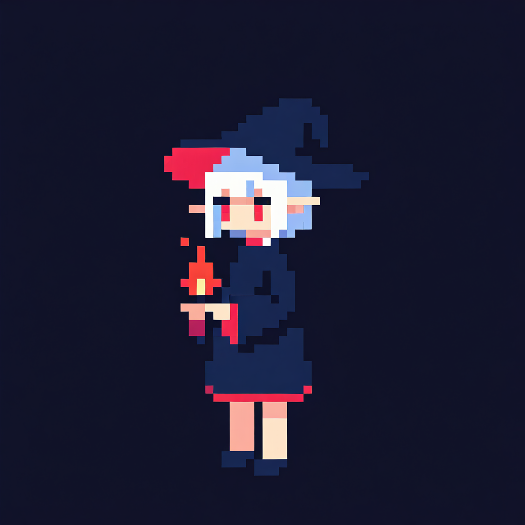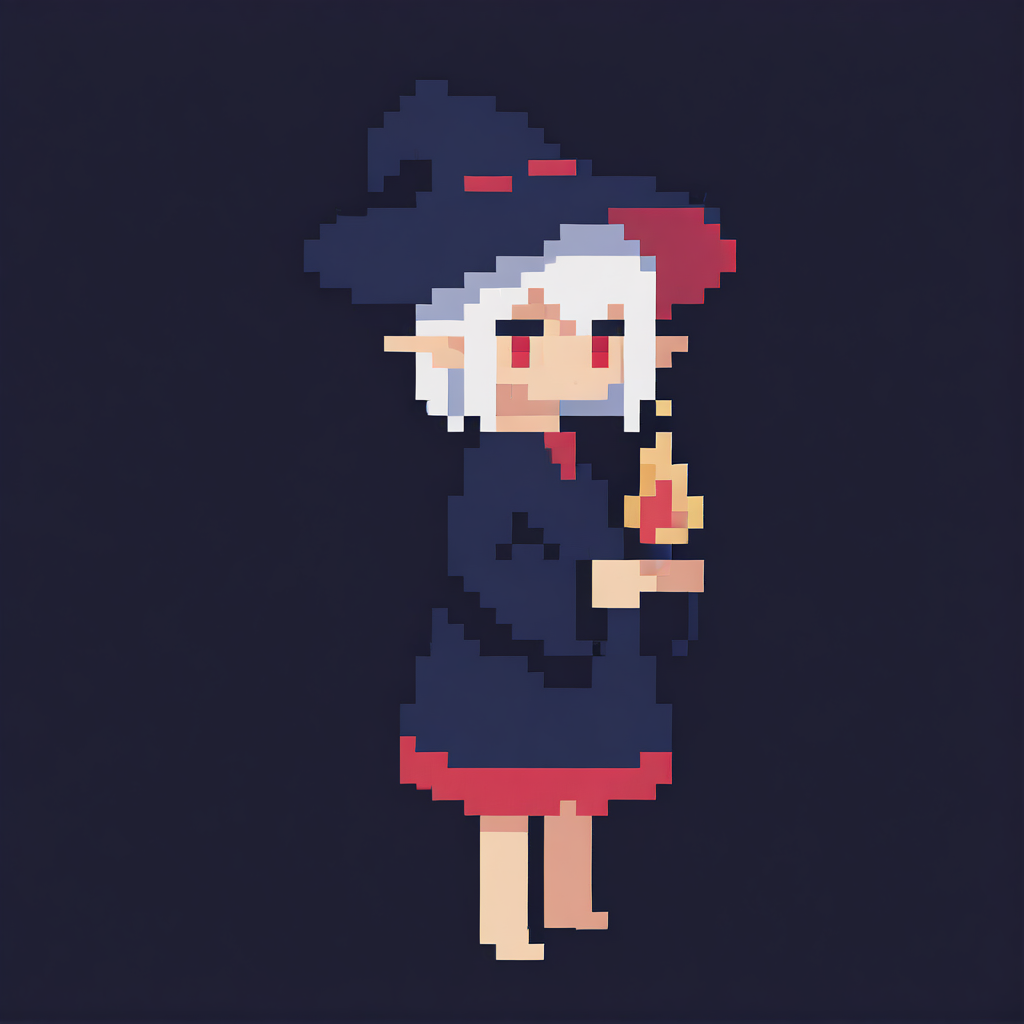 The model was trained on 32 preprocessed images with 16x pixel size (1024x1024). All the images were jpeg so I needed to clean-up them and leave 8-16 colors. Most of the train images are witch girls, so that may affect the results. I found Illustrous Pencil model better with LoRAs so I switched from WAI and Plant Milk(thanks to Skormino for head-start!) training.