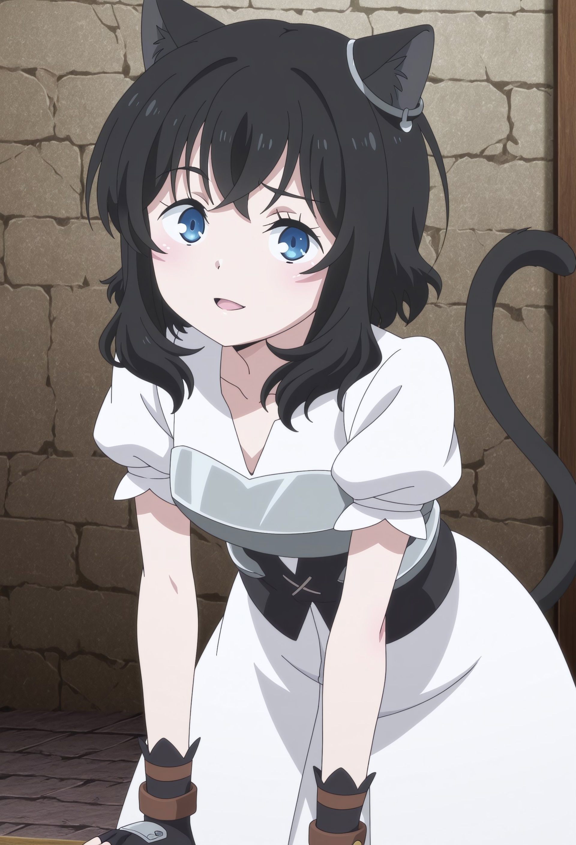 fran, long hair, blue eyes, black hair, animal ears, tail, medium hair, cat ears, cat tail, cat girl,