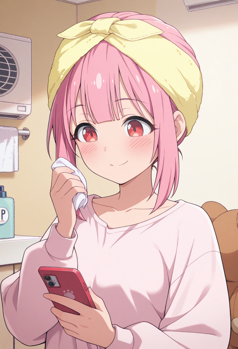 Trigger Words: mochizuki momoko, pink hair, medium hair, red eyes