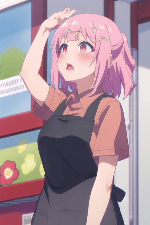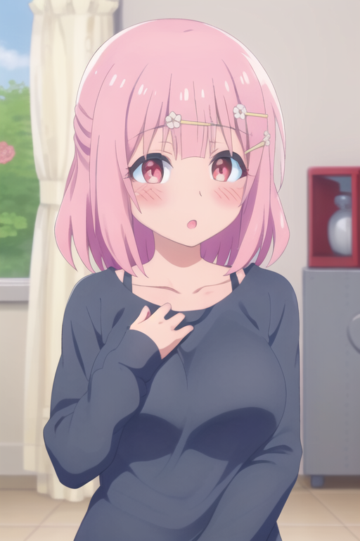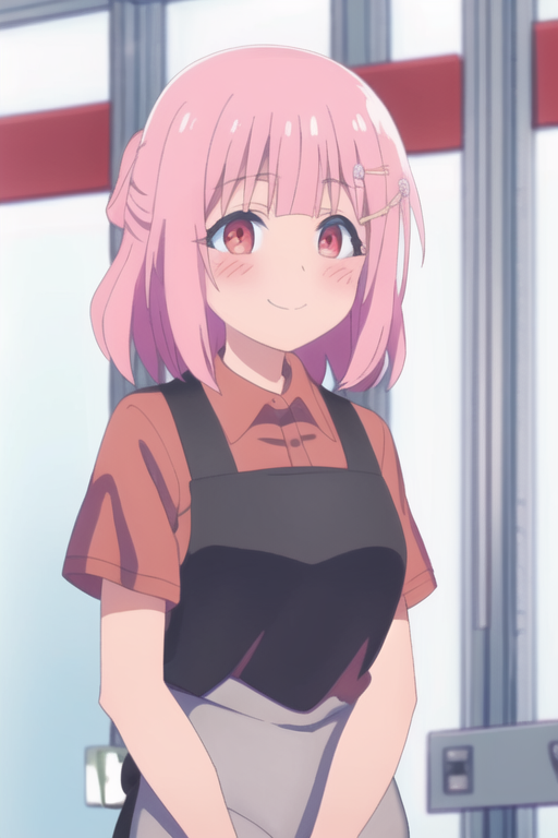 Trigger Words: mochizuki momoko, pink hair, medium hair, red eyes
