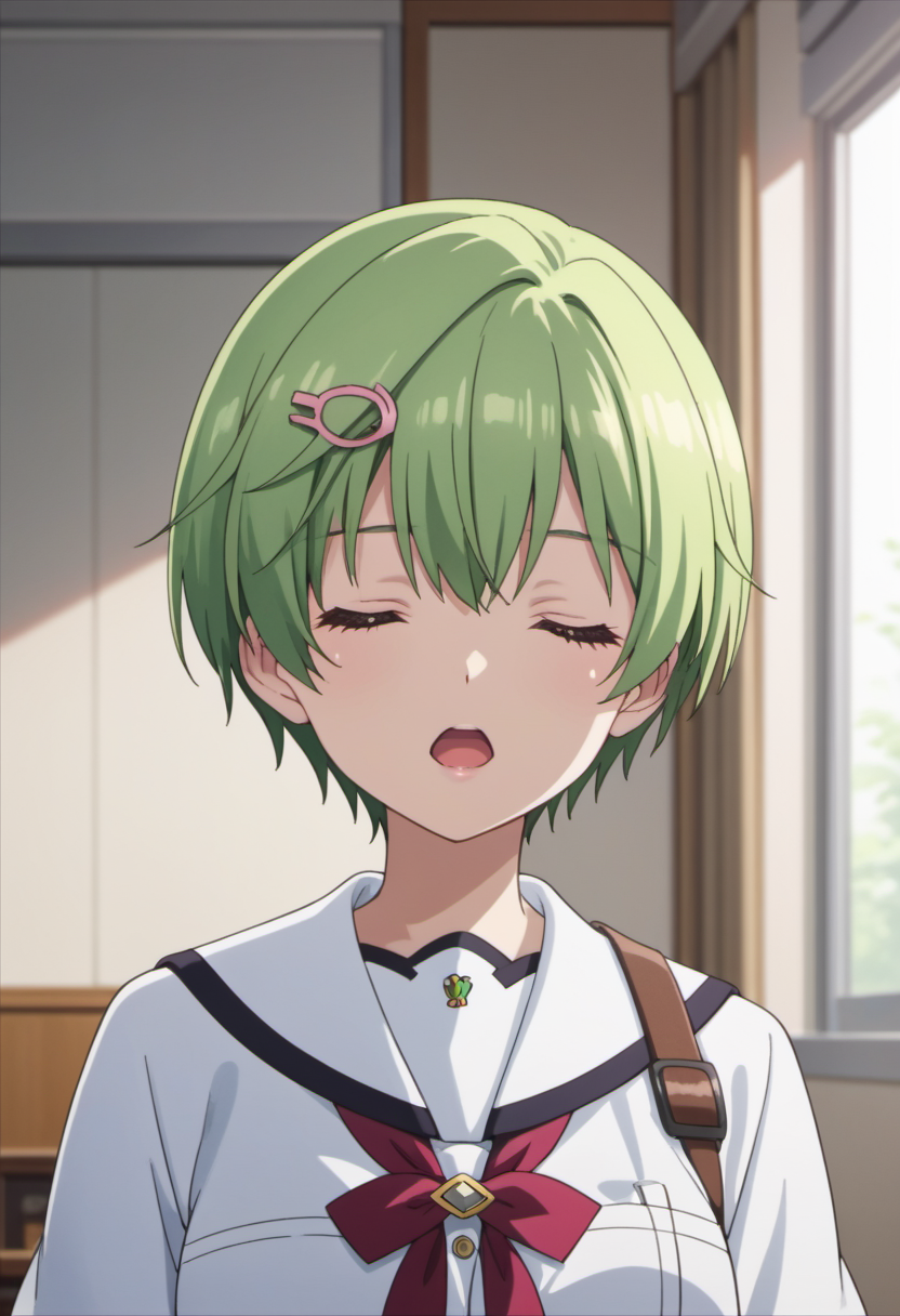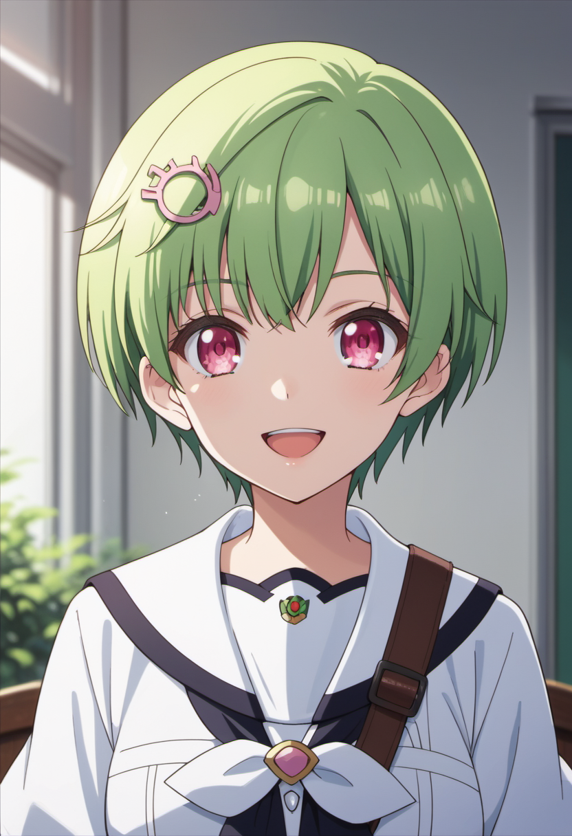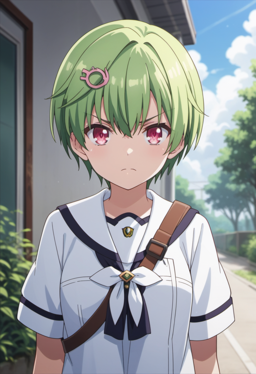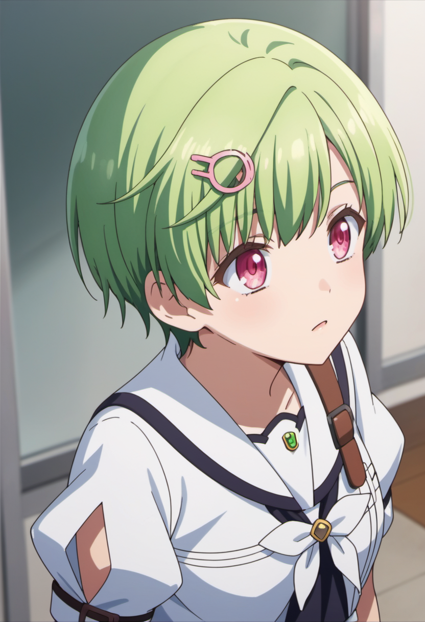 Trigger Words: nomura miki, short hair, green hair, pink eyes
