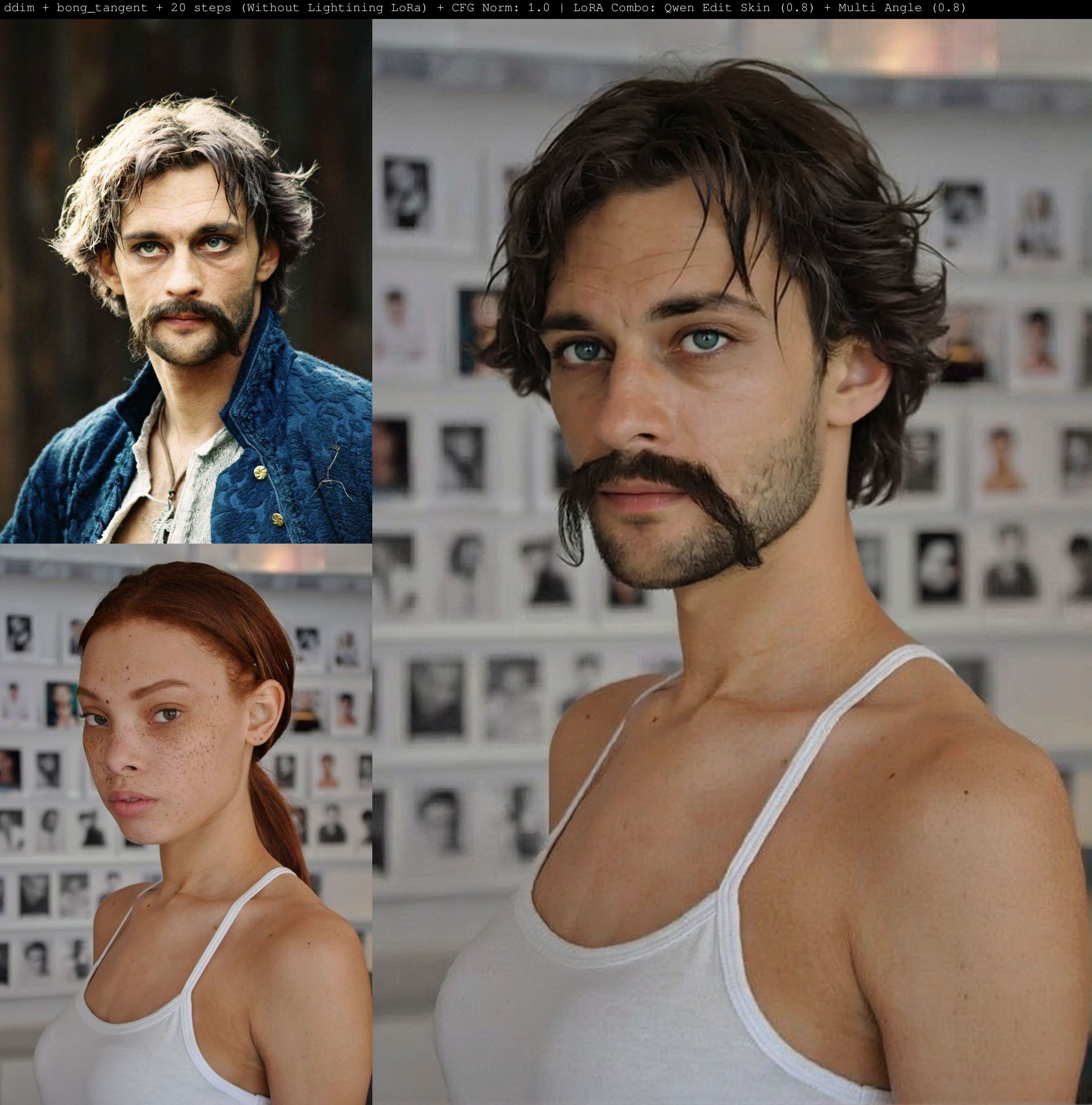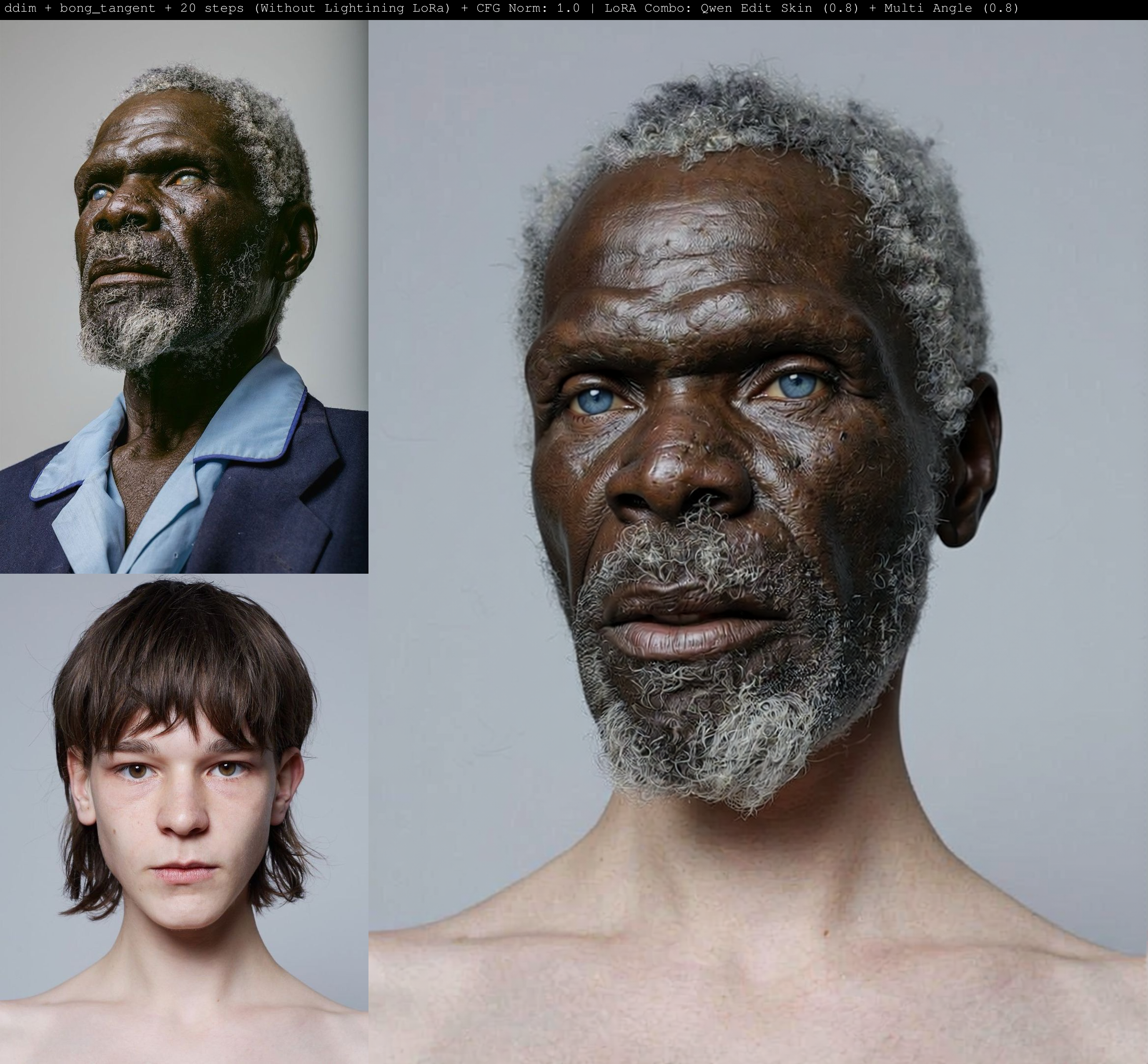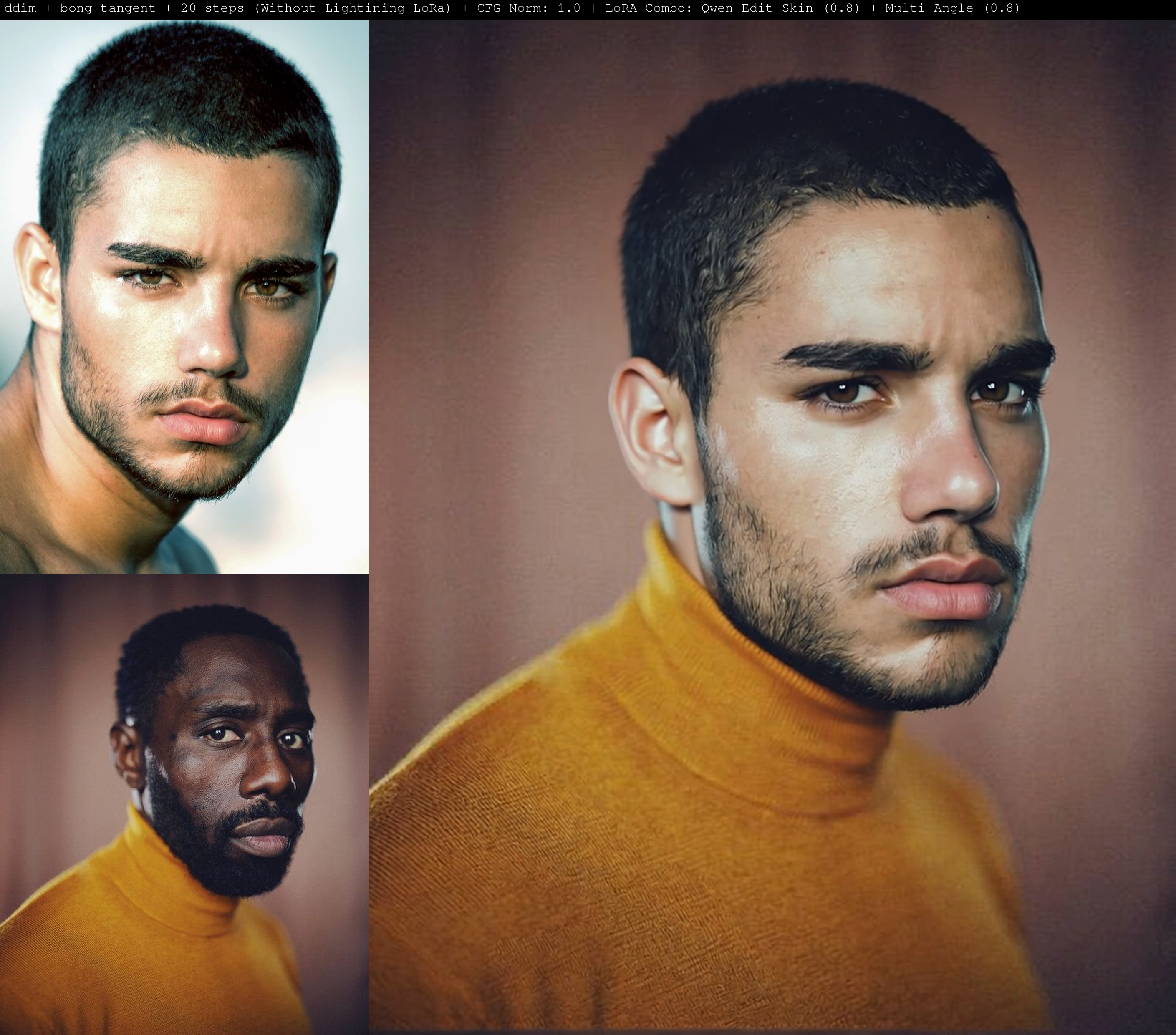 Lightning LoRA: may produce plastic-like skin, especially when mixed with other Qwen-based LoRAs.