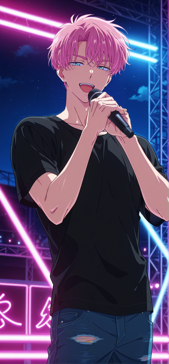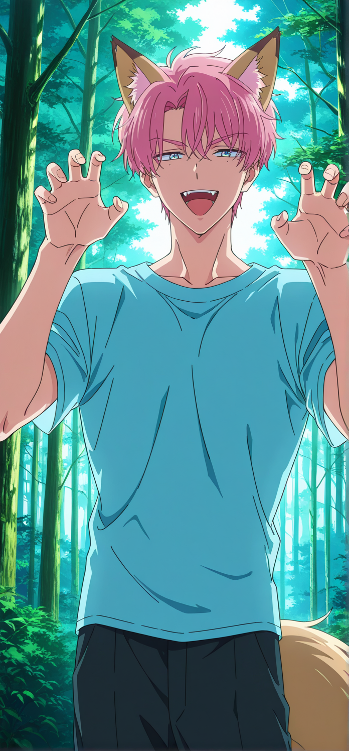 Trigger words: fukuhara tamon,pink hair,blue eyes,mole,mole under eye