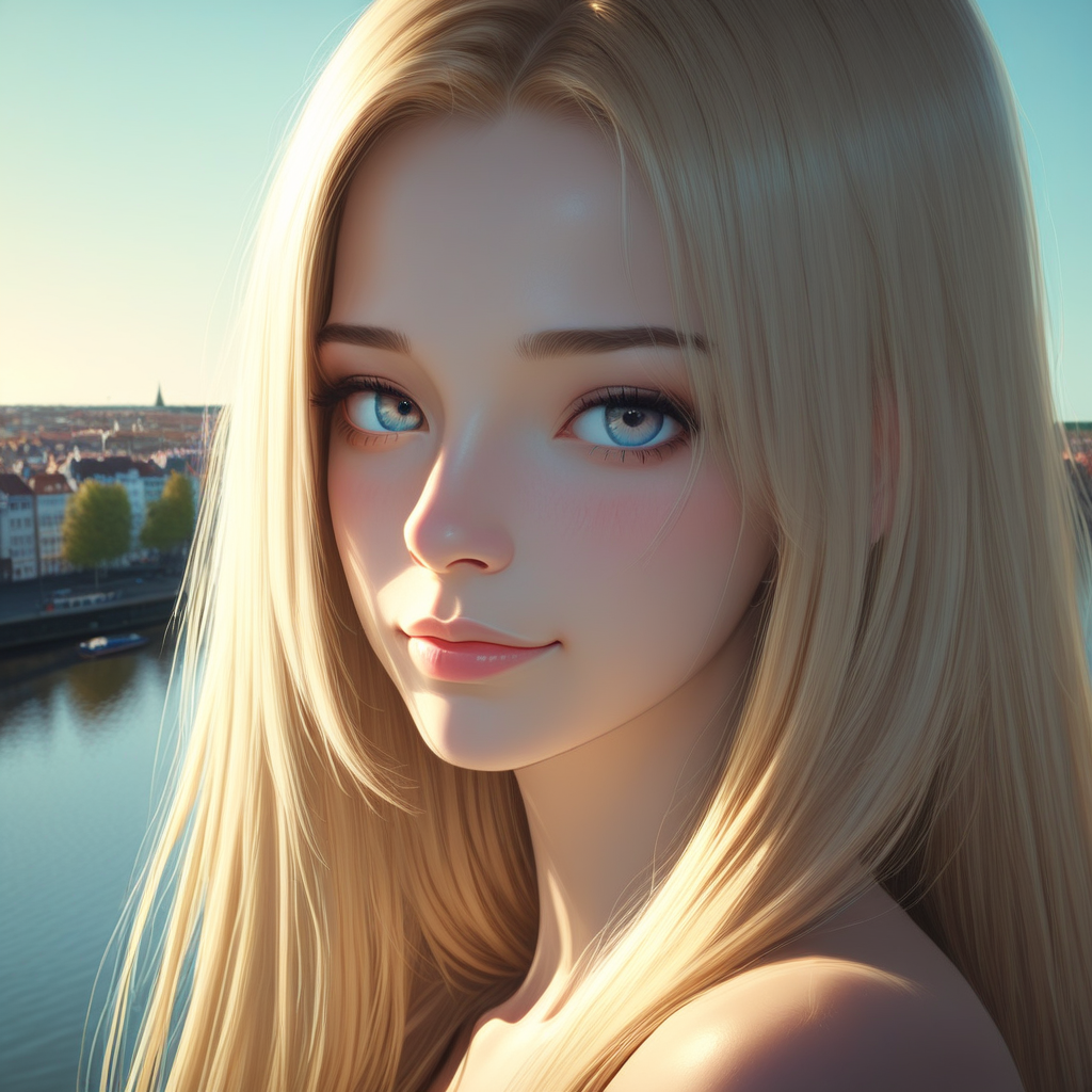 EmmaStar character LoRA. Blonde hair, blue eyes, slim body, anime-cartoon hybrid style. Trained on face and full body images for consistency. Trigger word: emmastarv1