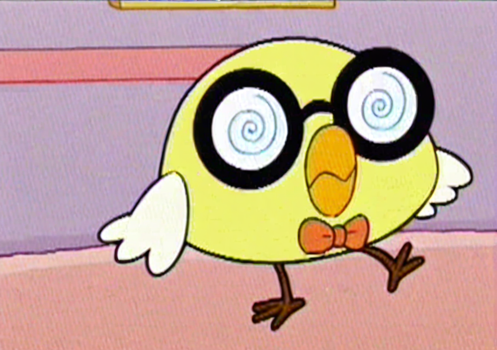 Choki, bird, Yellow head and body, Light yellow wings, ngsglasses, spinning eyes,