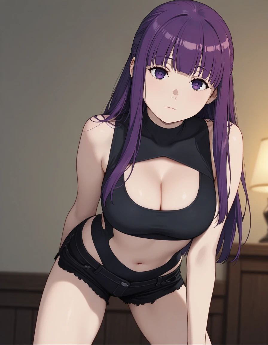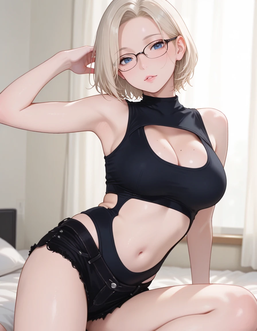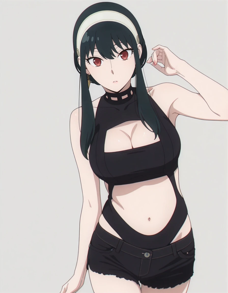 mai_bj_clothing_sexy_black_3, midriff, clothing_cutout, cleavage_cutout, stomach_cutout, black_shorts