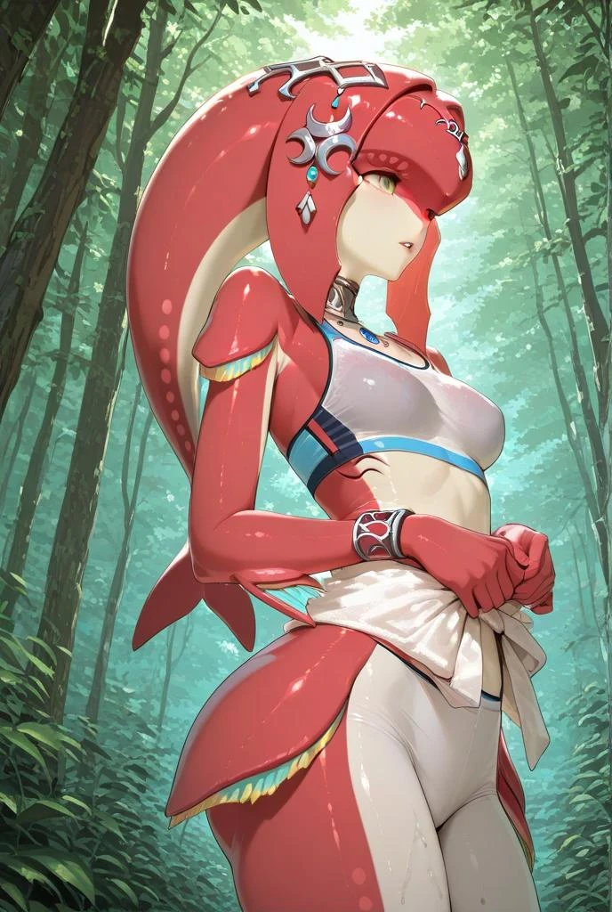 1girl,Mipha,Zora,fish girl,colored skin,multicolored skinSkin: Red with pale and white accents (Zora skin pattern)