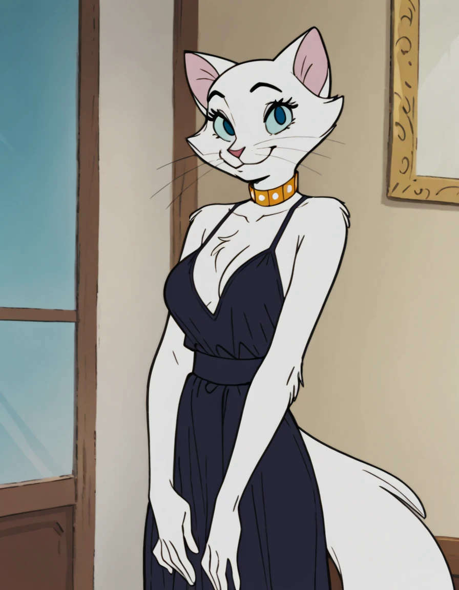 duchesscat, cat, white fur, cat ears, body fur, whiskers, blue sclera, black eyes, blue eyes, collar
