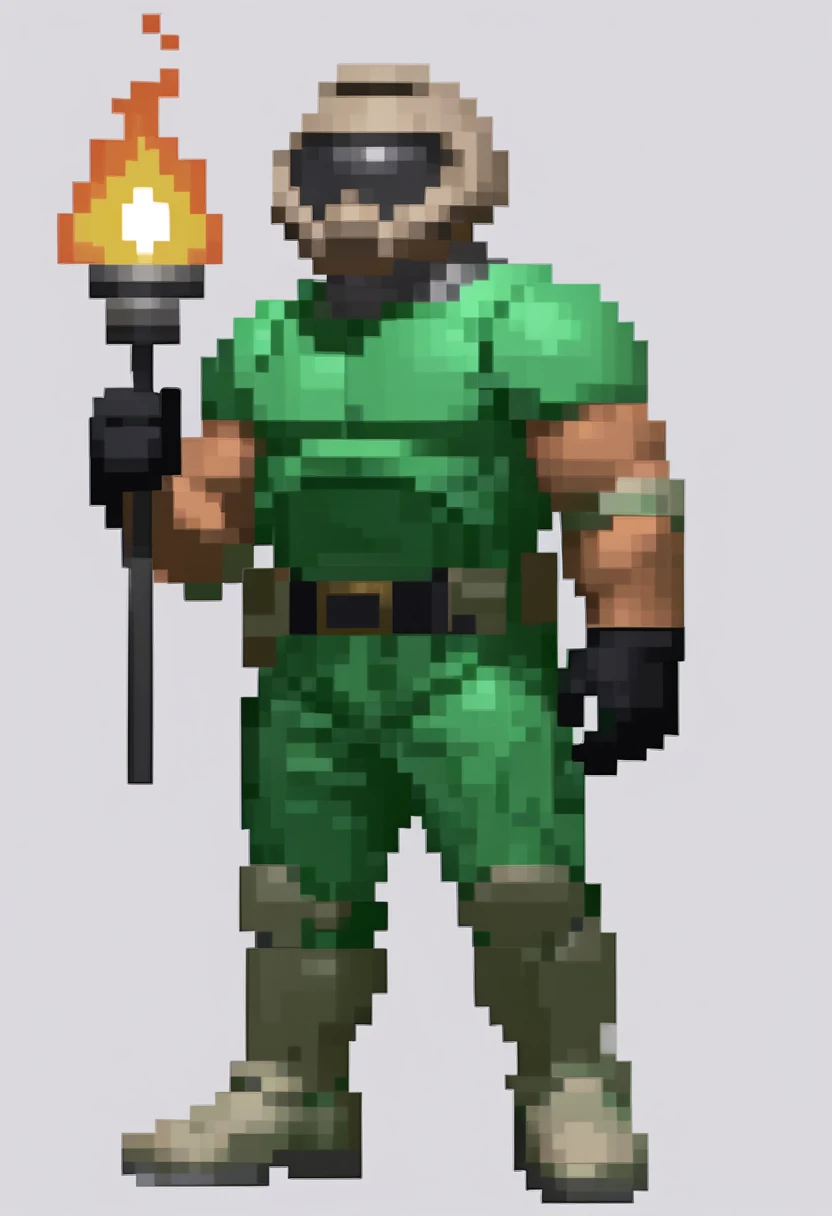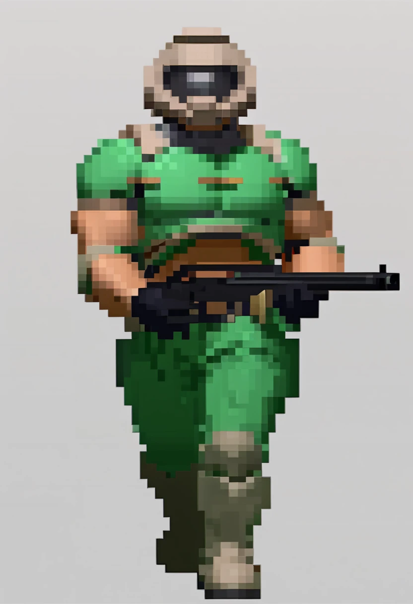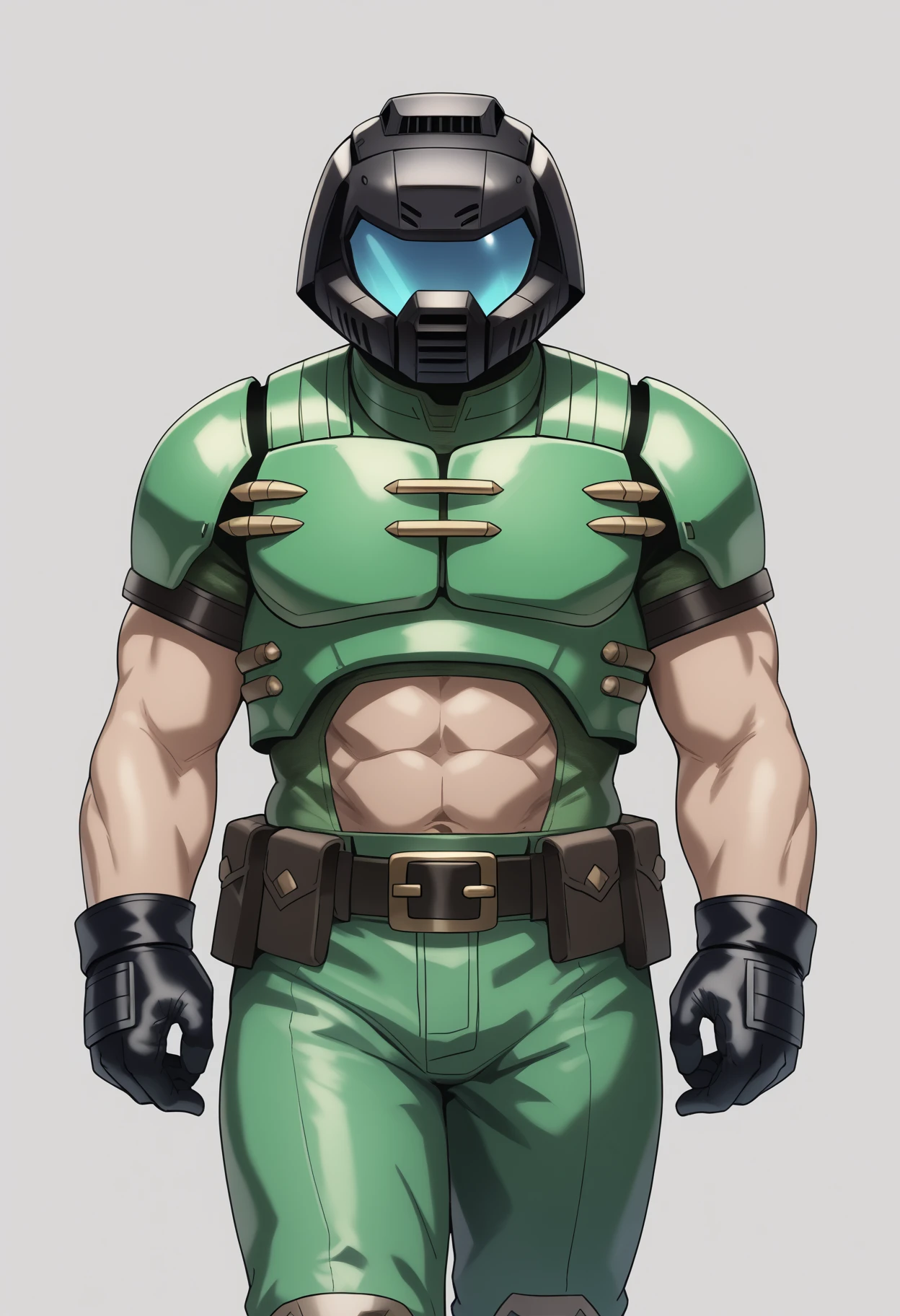 Basic prompts : 1boy, doomguy, green armor, green pants,helmet, muscular, belt, black gloves, kneepad, boots