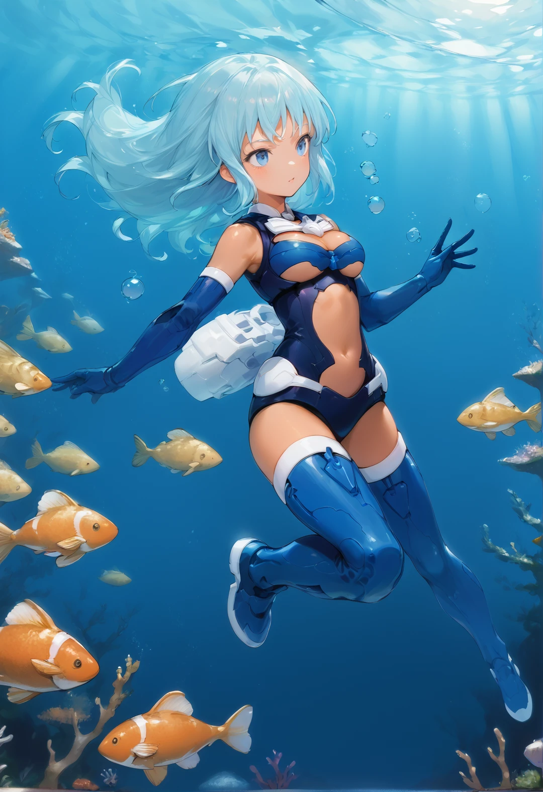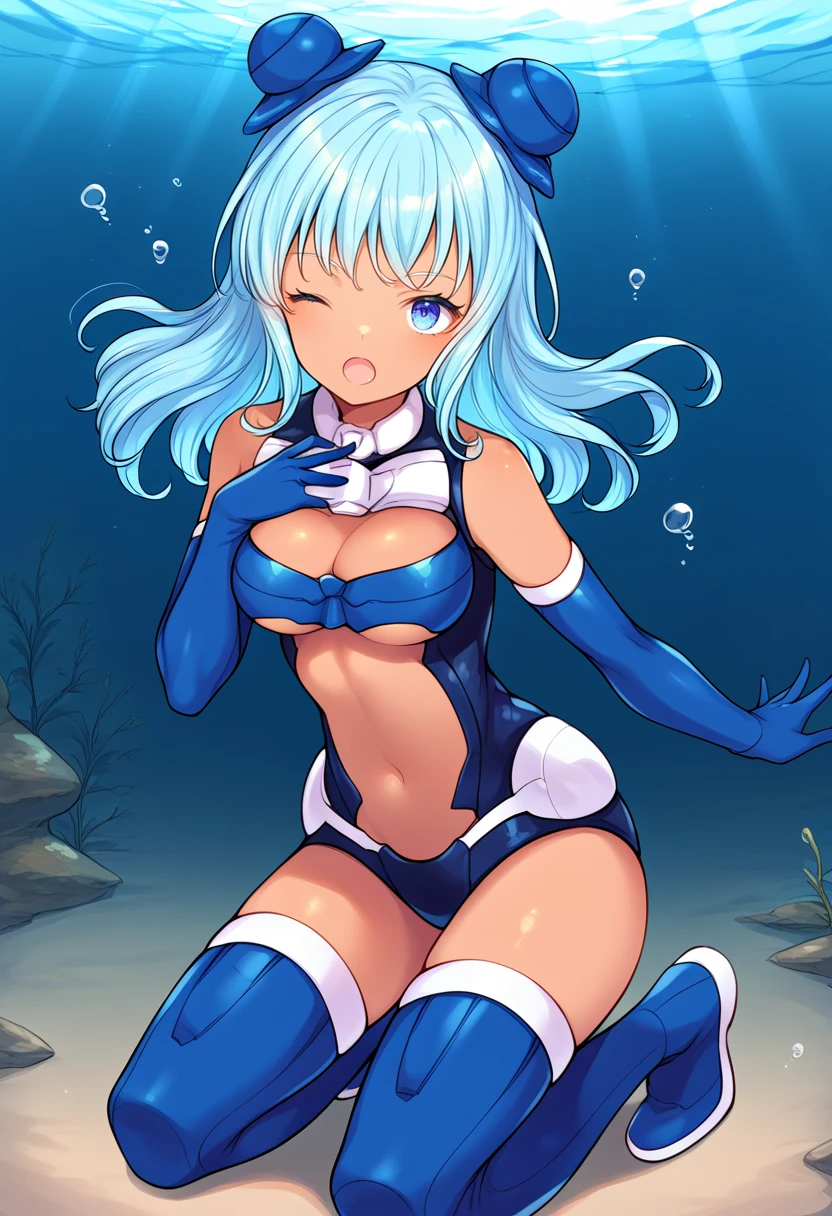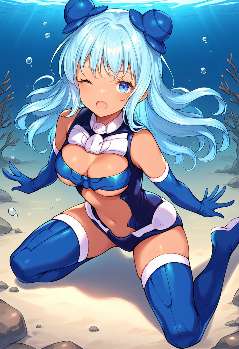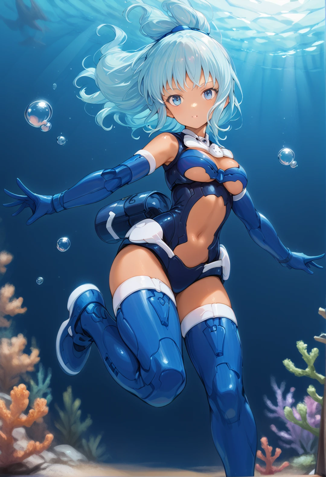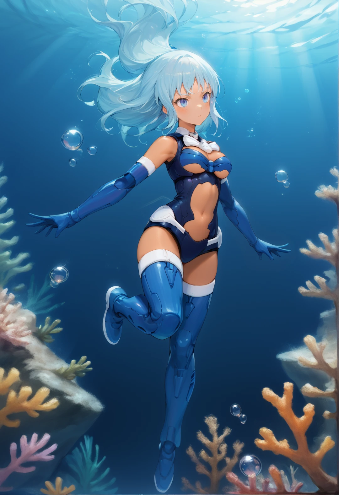 Tags (clothes): Siana-Amarcia bodysuit, blue bodysuit, hair bow, thigh boots, elbow gloves