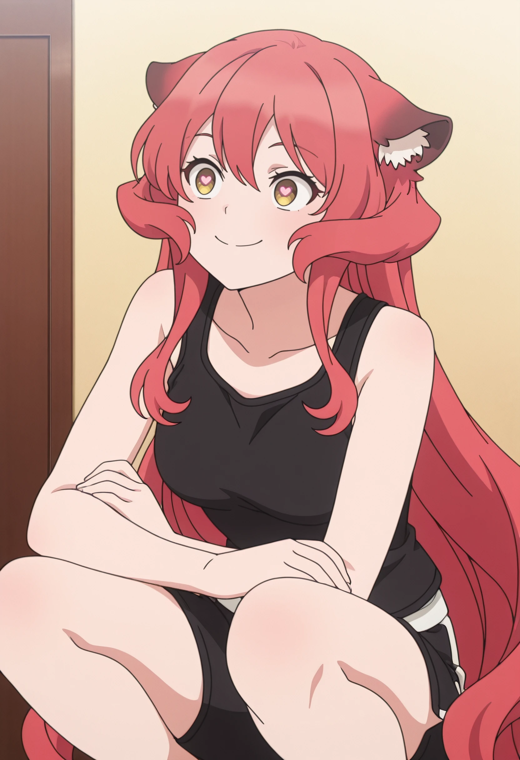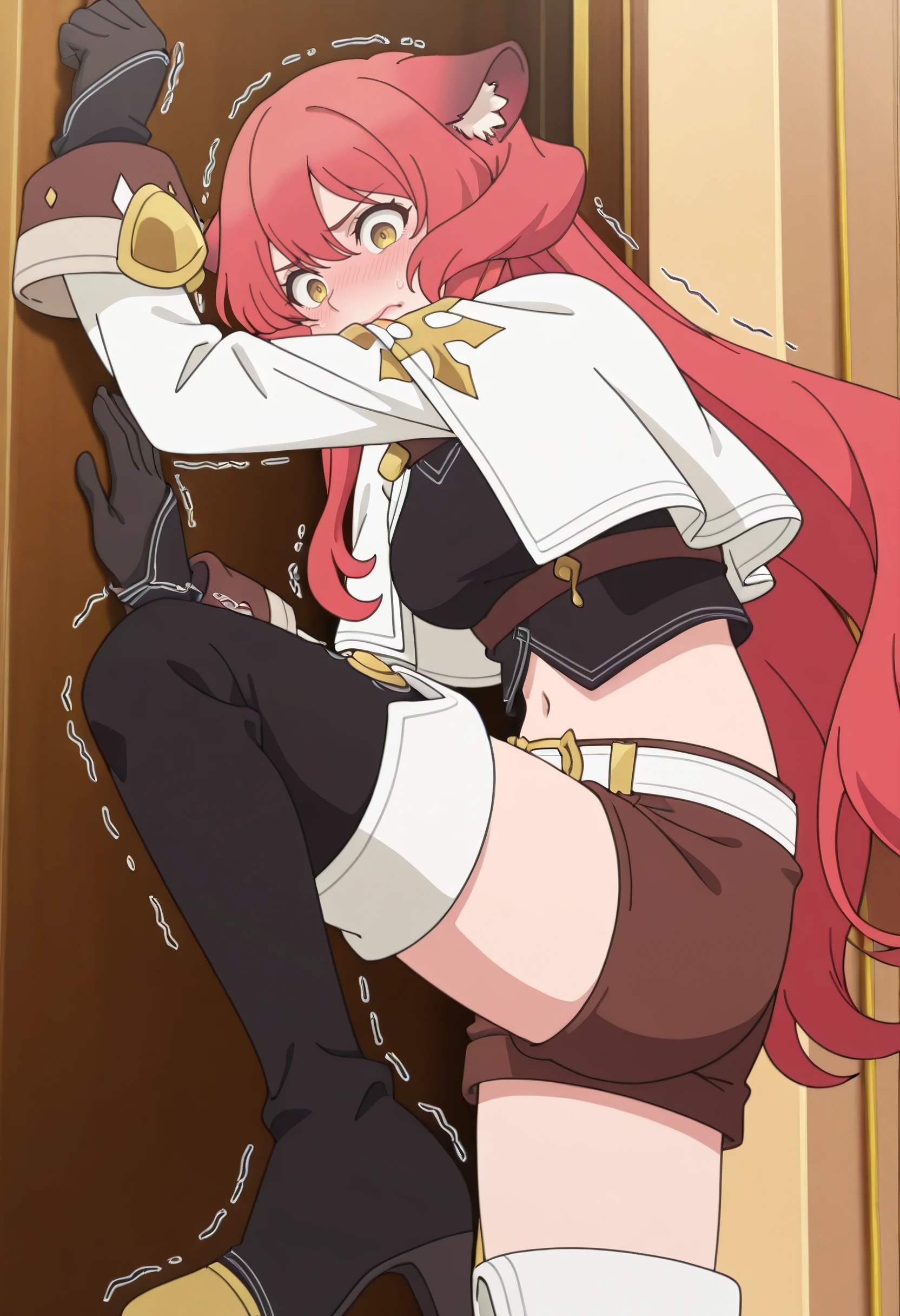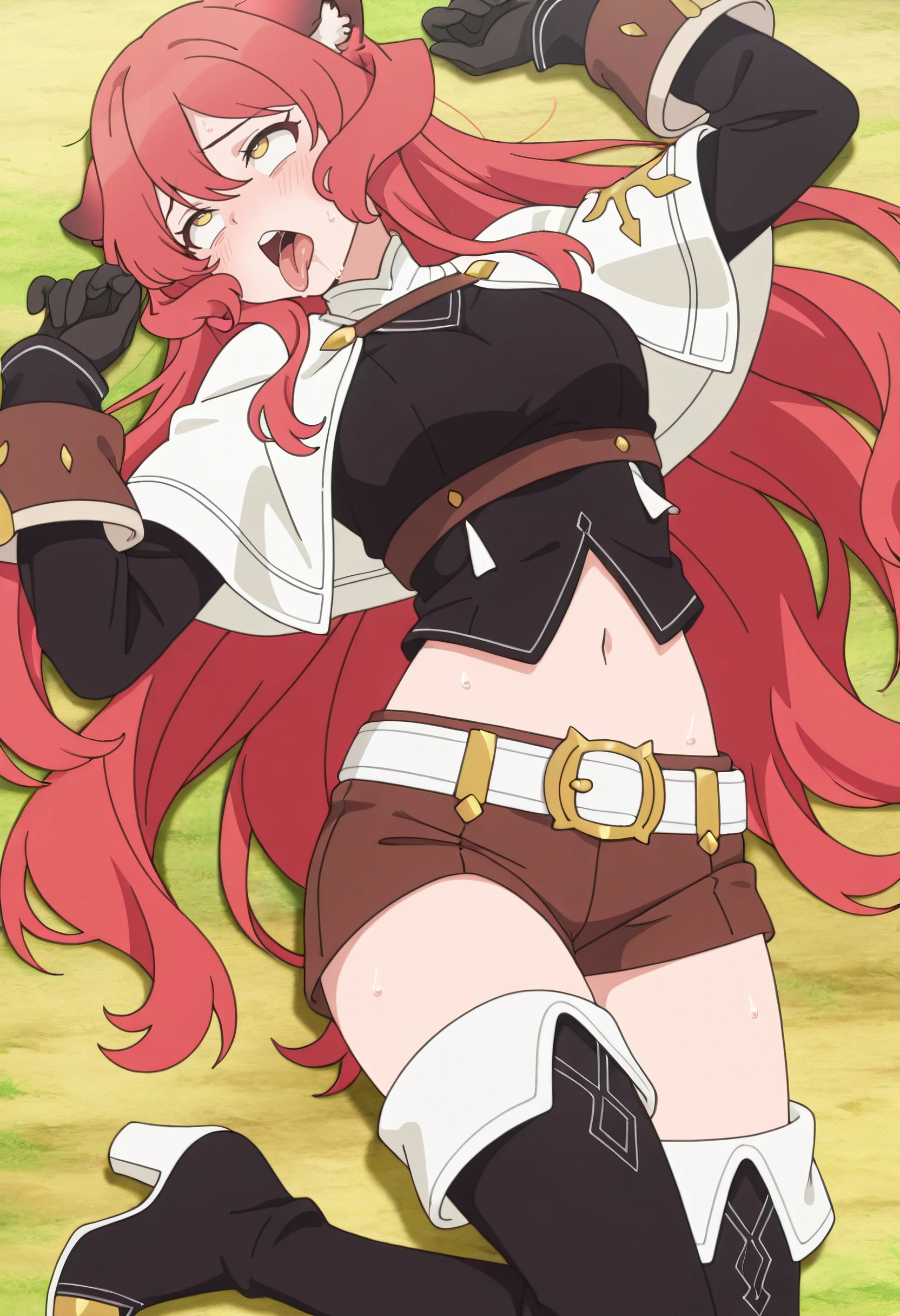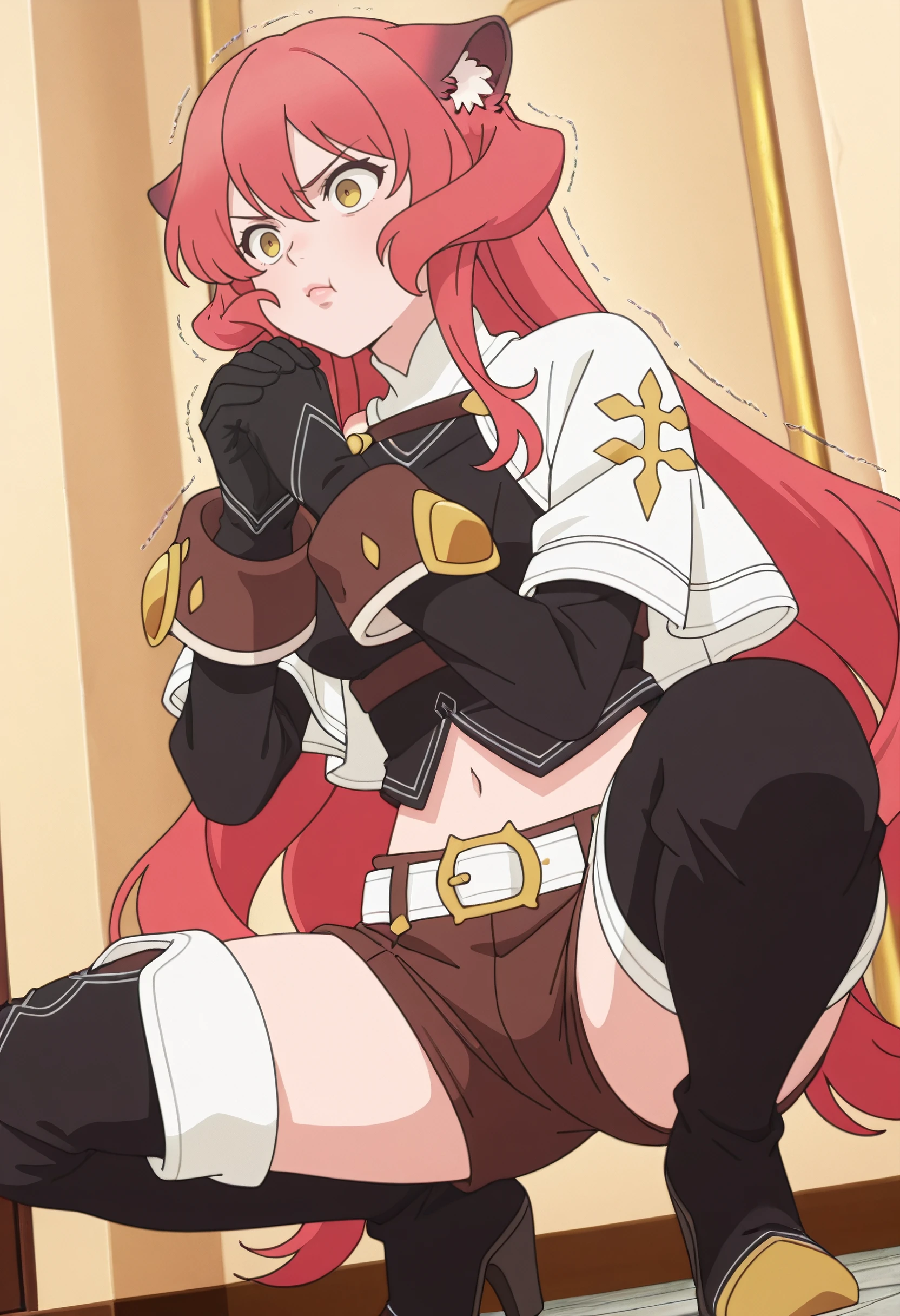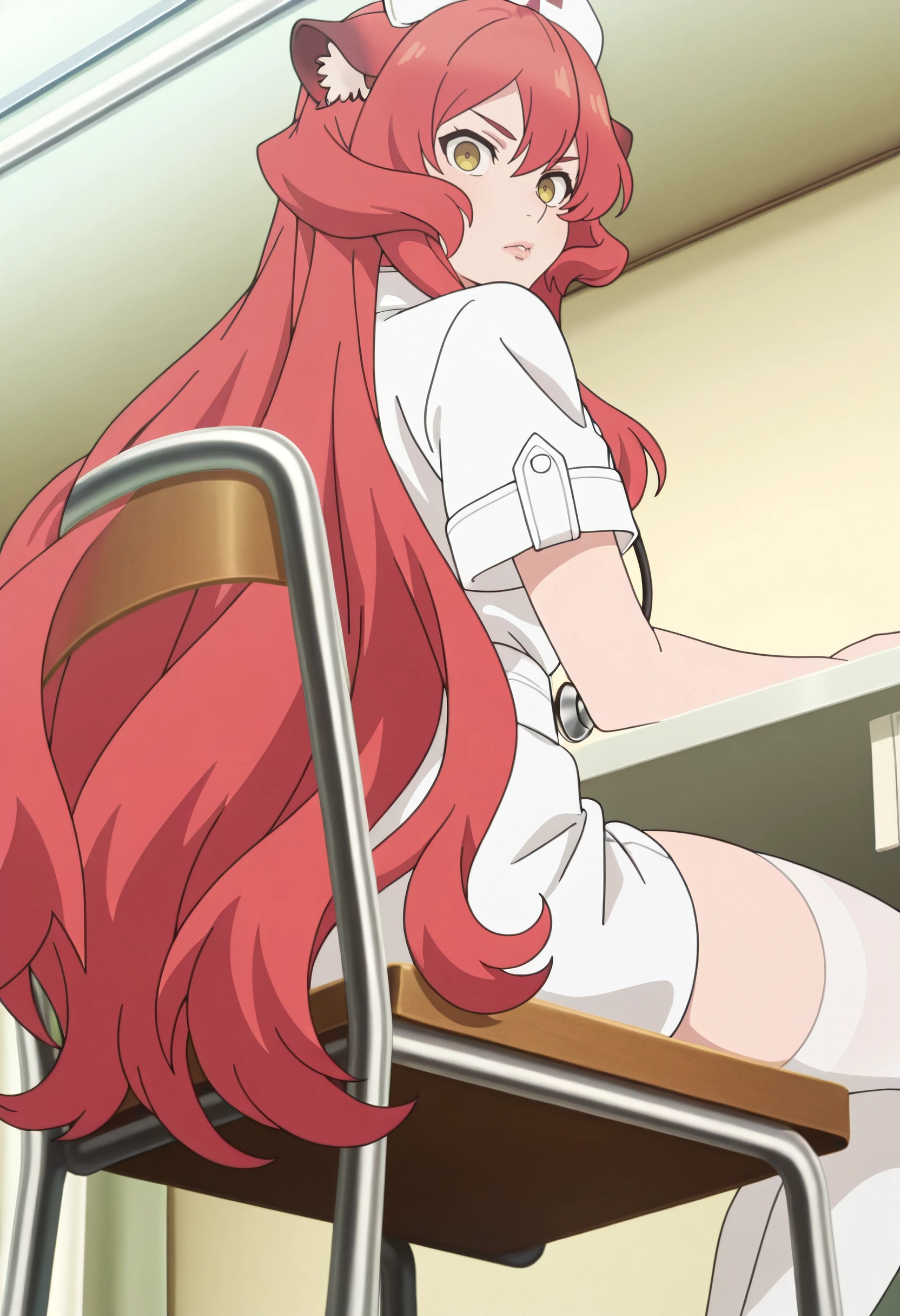 OWSMianne, red hair, long hair, animal ears, cat ears, yellow eyes, animal ear fluff, hair between eyes, very long hair,