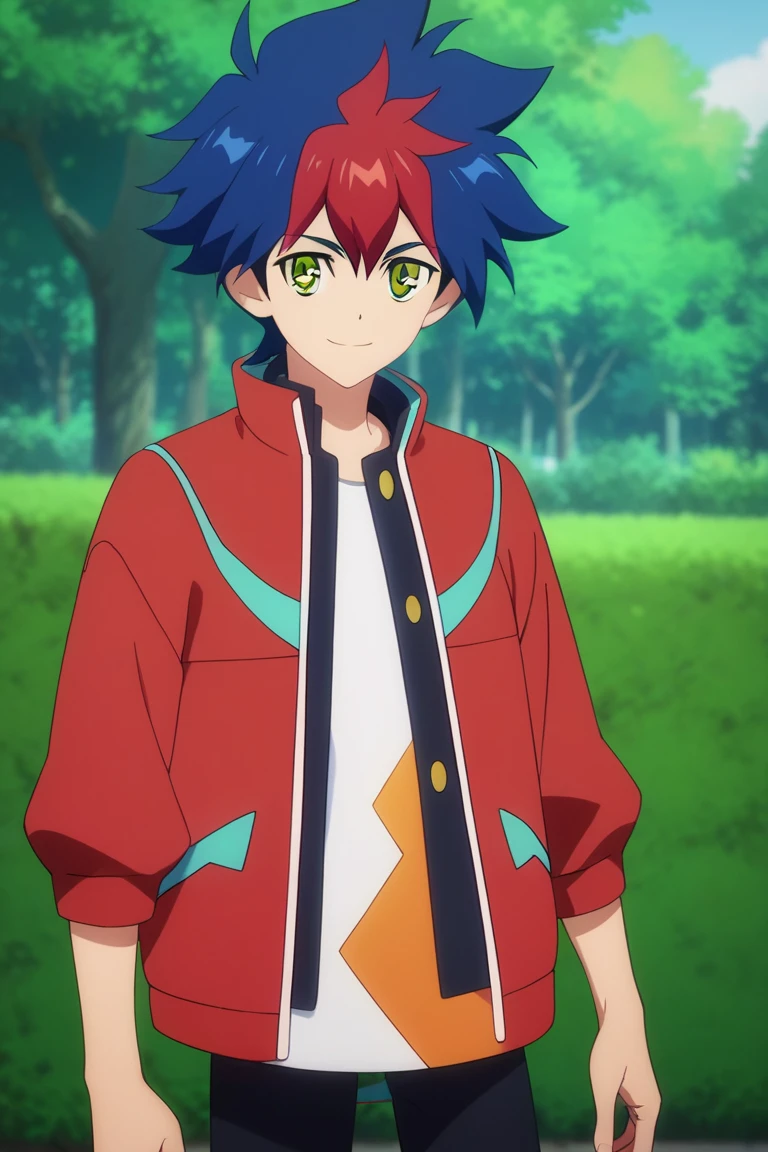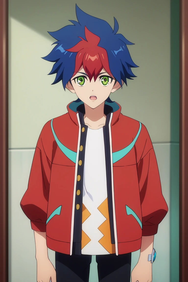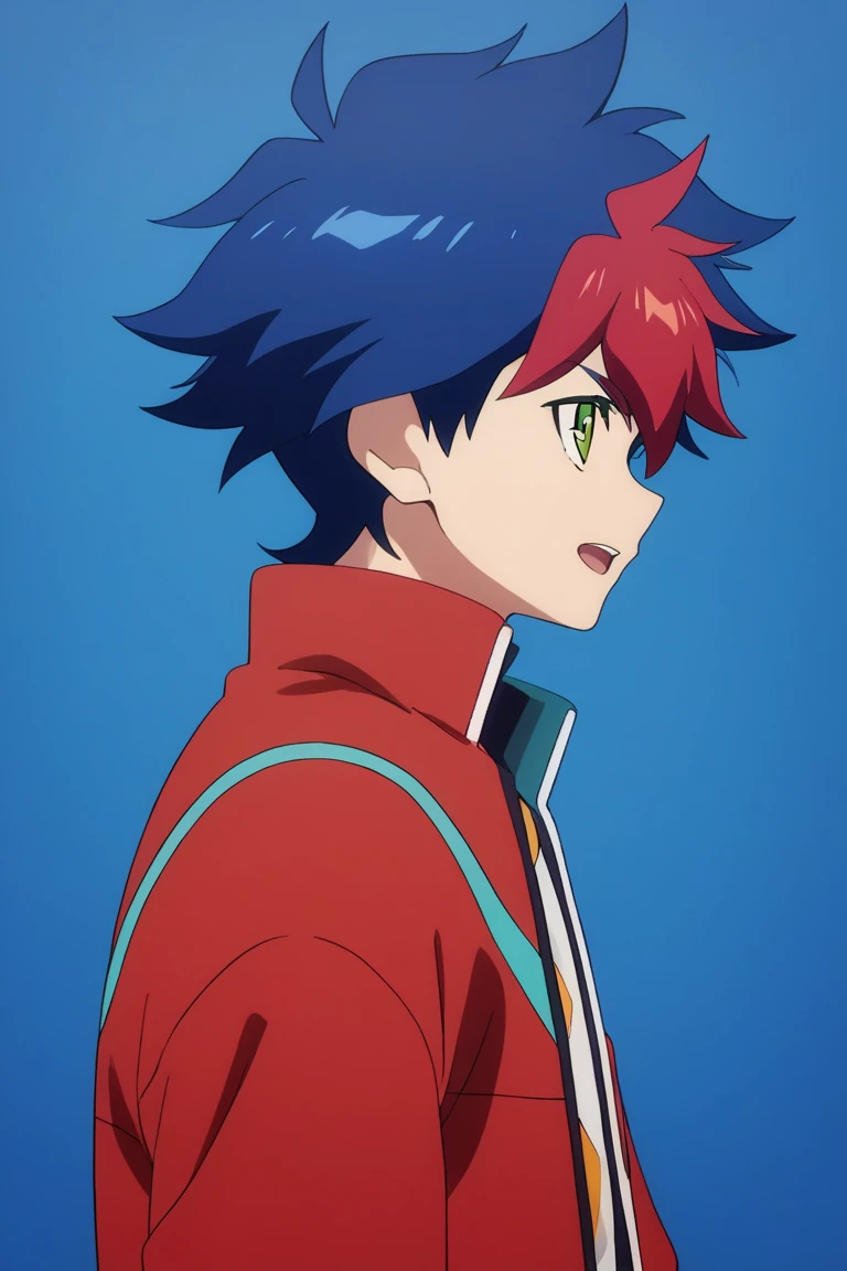 light tenryuu,blue hair,red hair, multicolored hair, green eyes, solo
