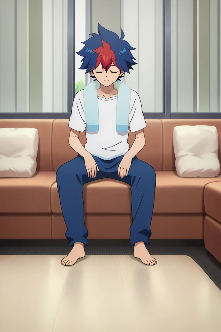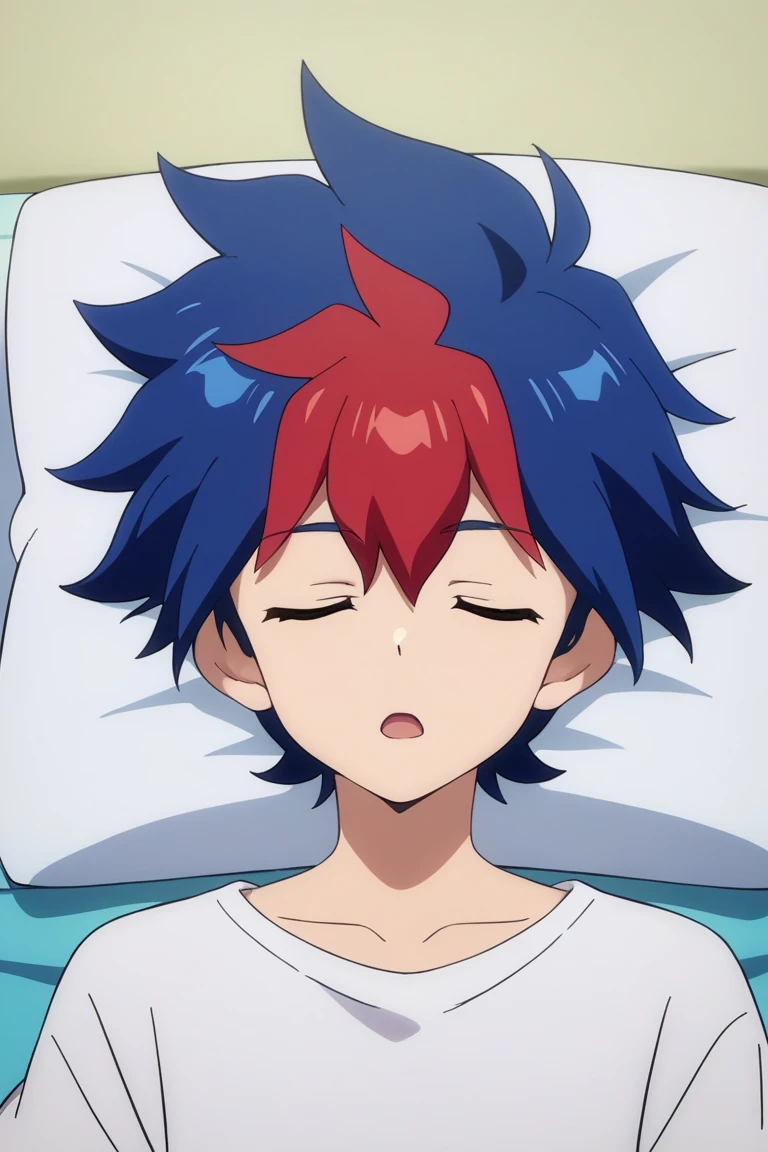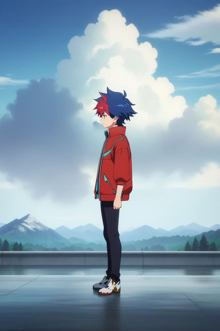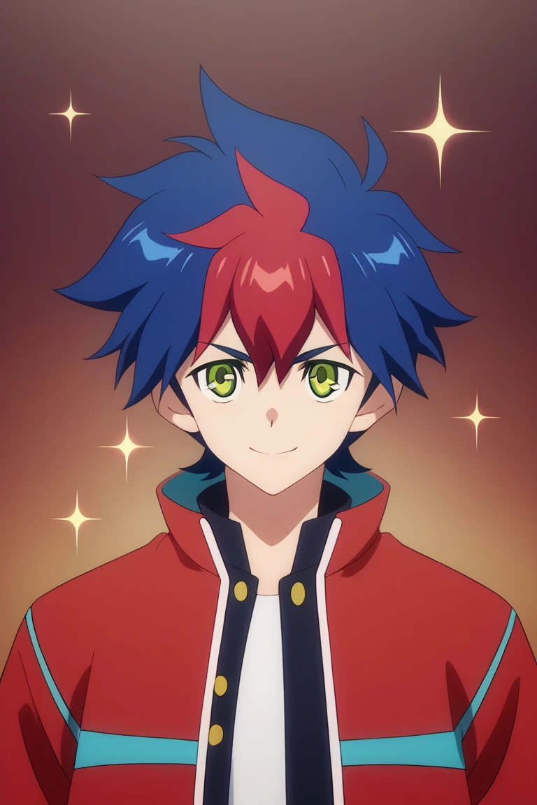 light tenryuu,blue hair,red hair, multicolored hair, green eyes, solo