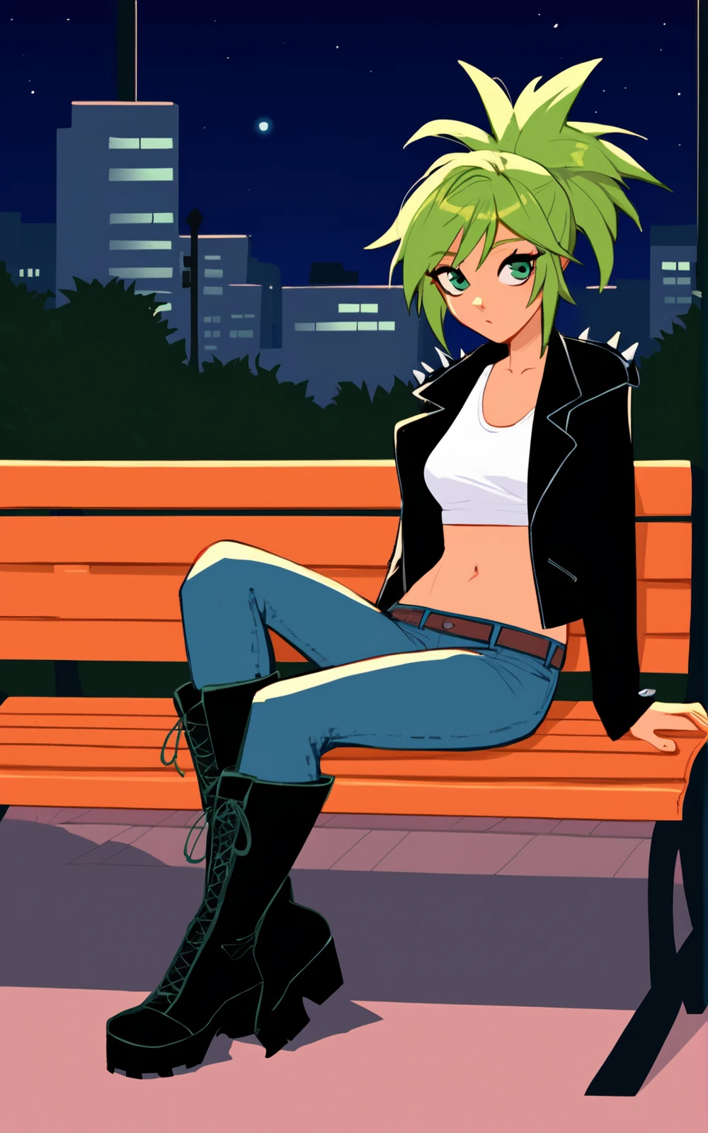For her Outfit: jacket ,black jacket, shirt ,white shirt, boots, pants, navel,denim, clothes writing