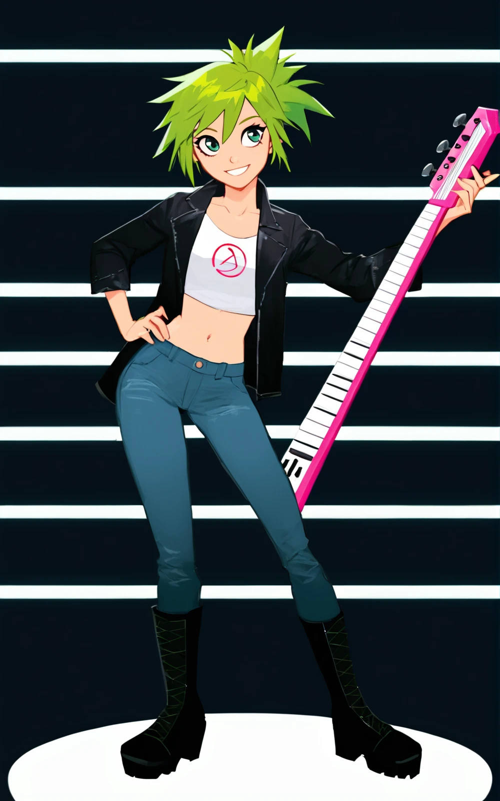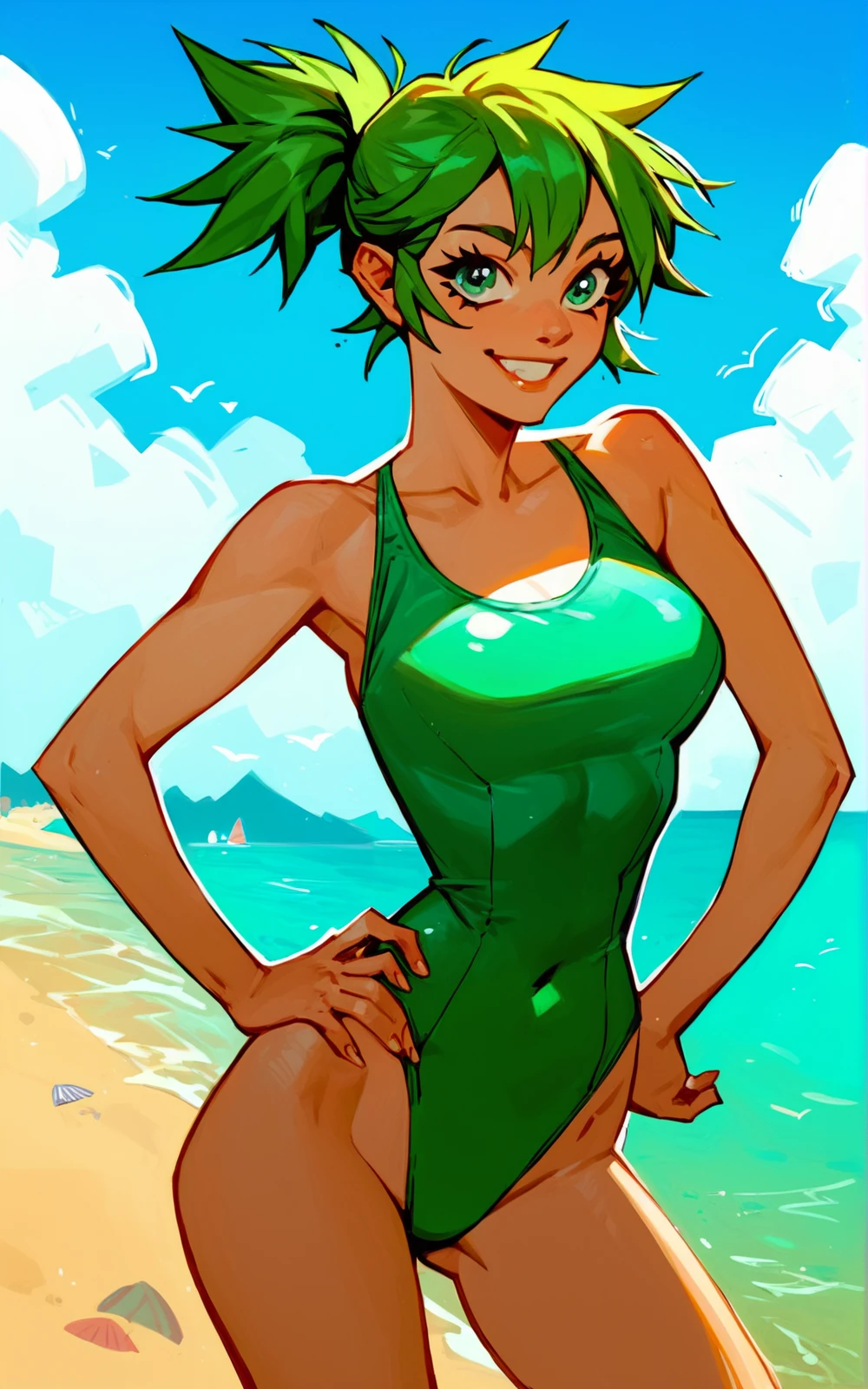 Reinforcement Tags: green hair, short hair, ponytail, green eyes