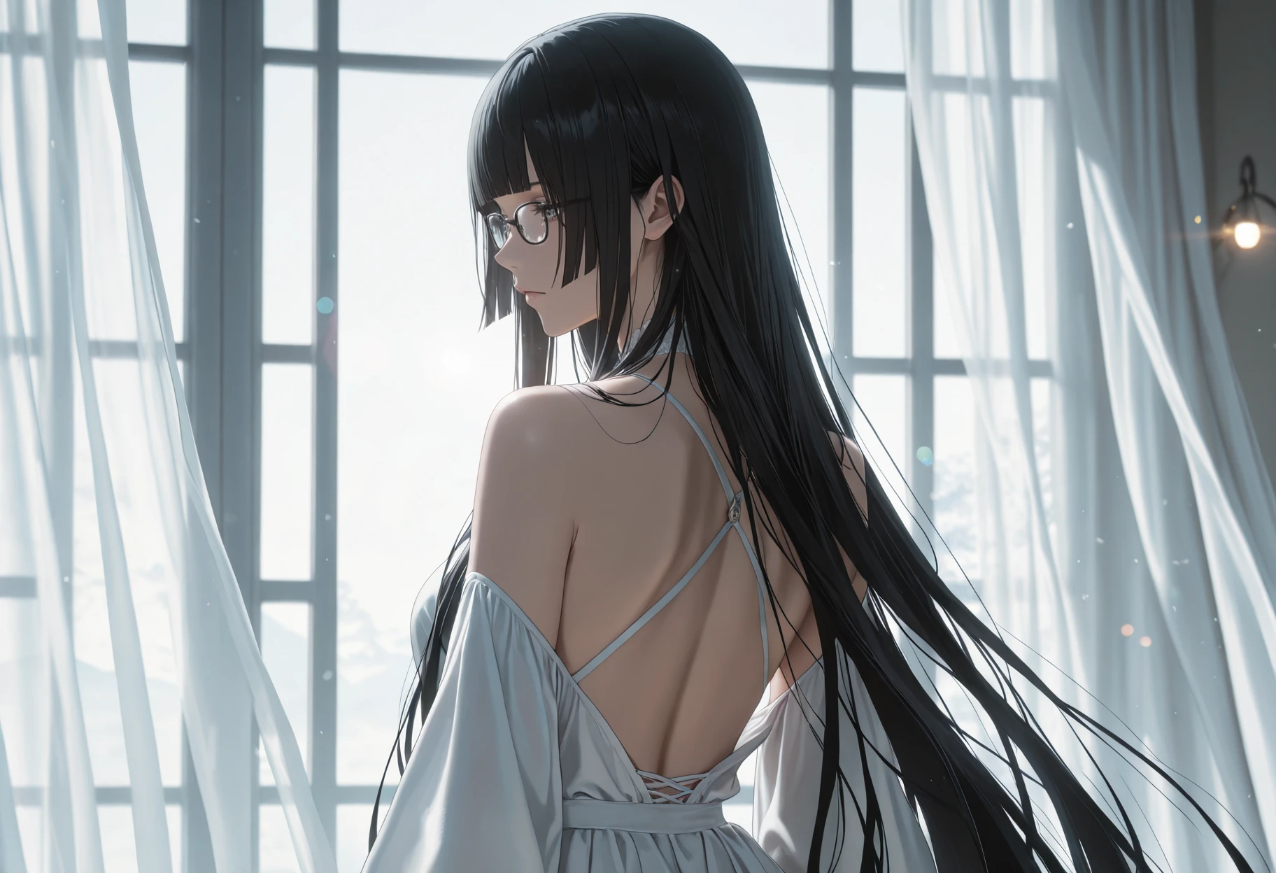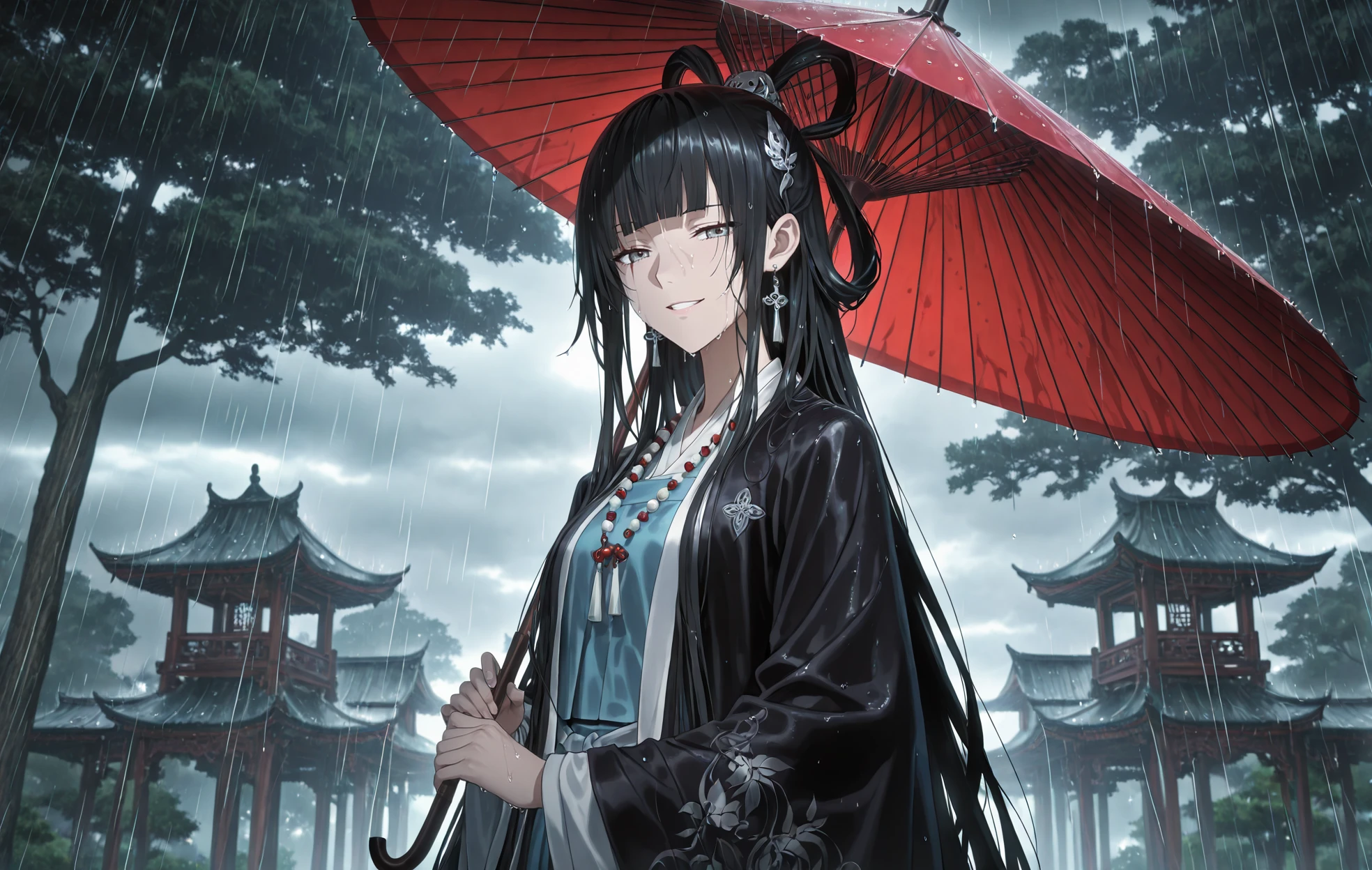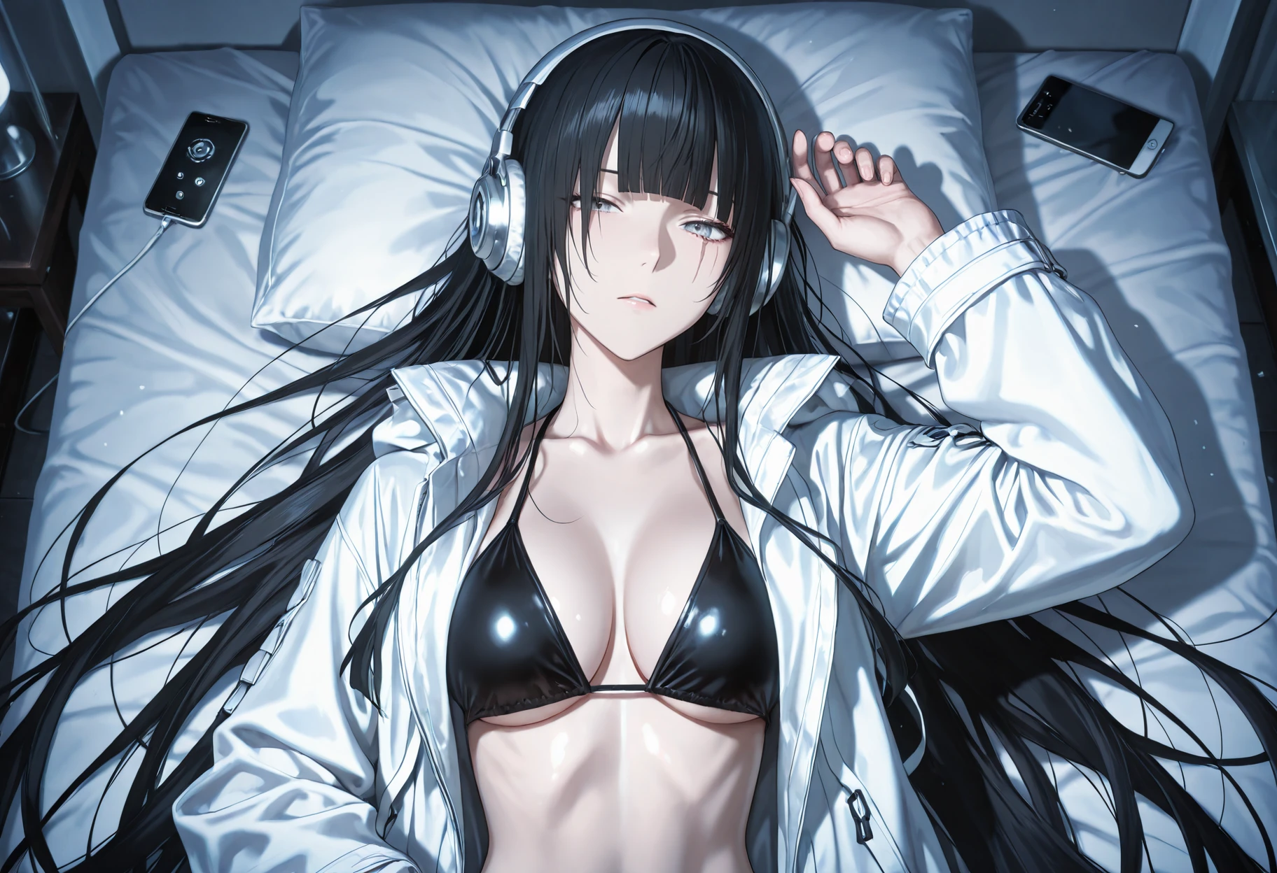Tags标签标签: black hair,grey eyes,very long hair,blunt bangs,