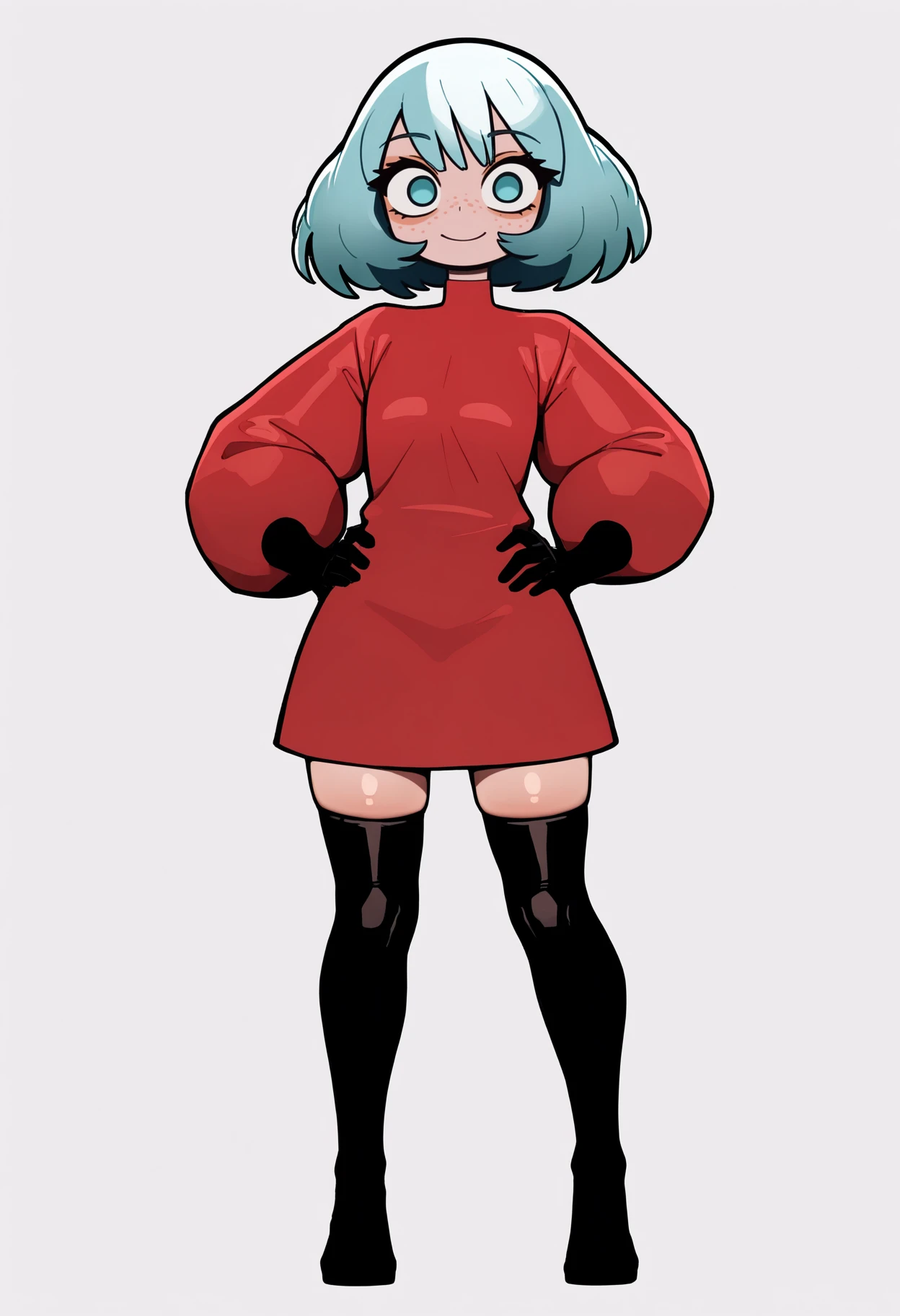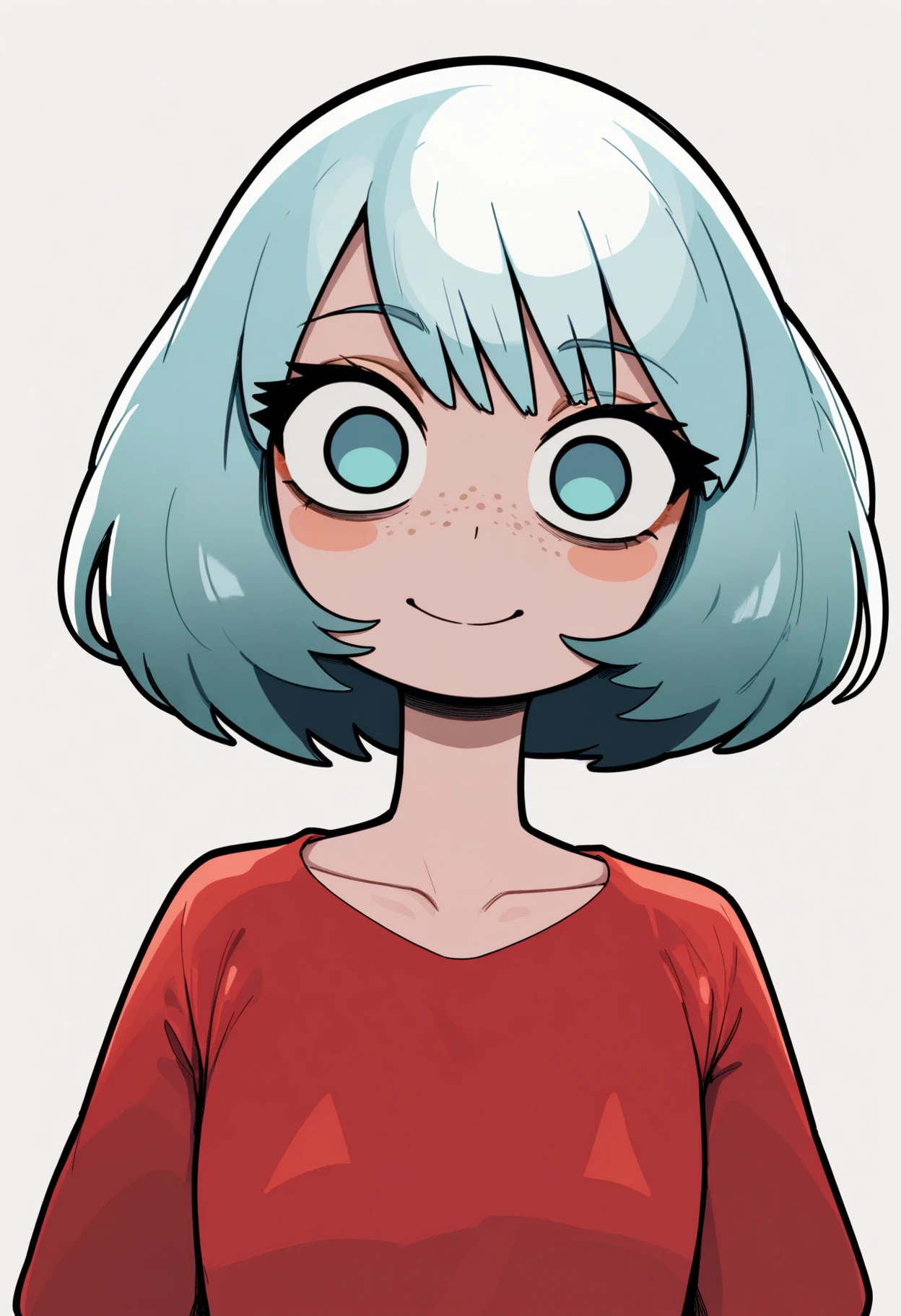 1girl, gris, blue eyes, freckles, blue hair, short hair, bangs