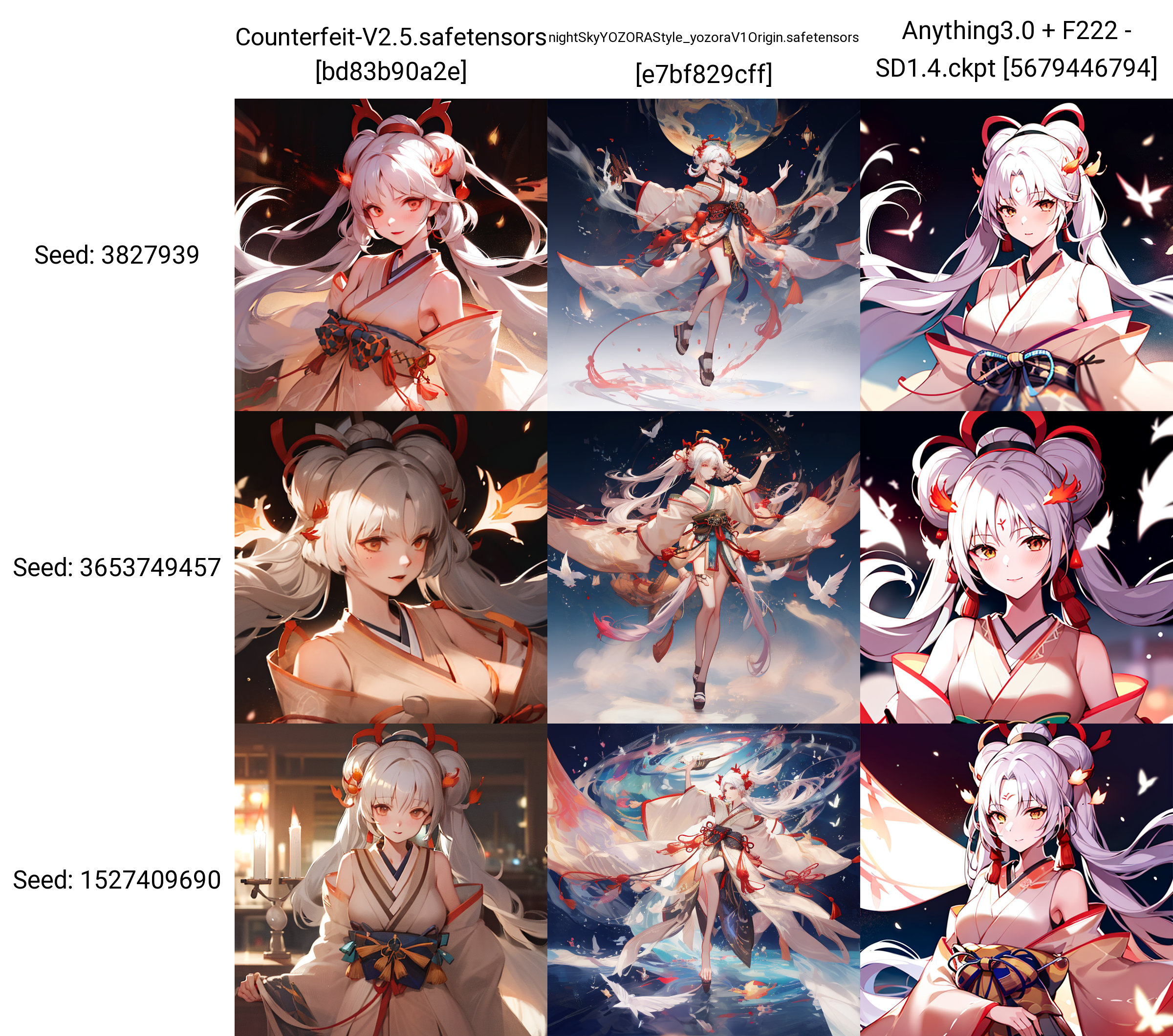 底模为 Anything3.0 ,经过测试,个人感觉在 anything3.0中有比较好的状态。