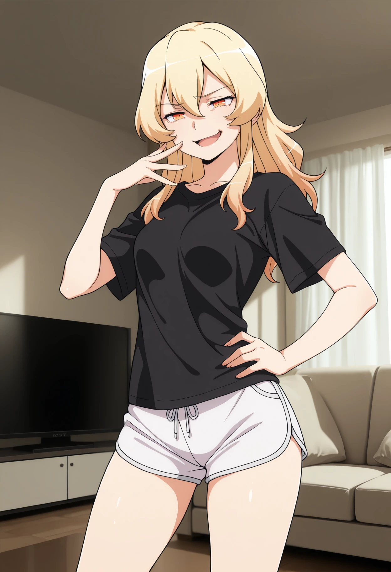 KJOtensai, blonde hair, orange eyes, hair between eyes, long hair,