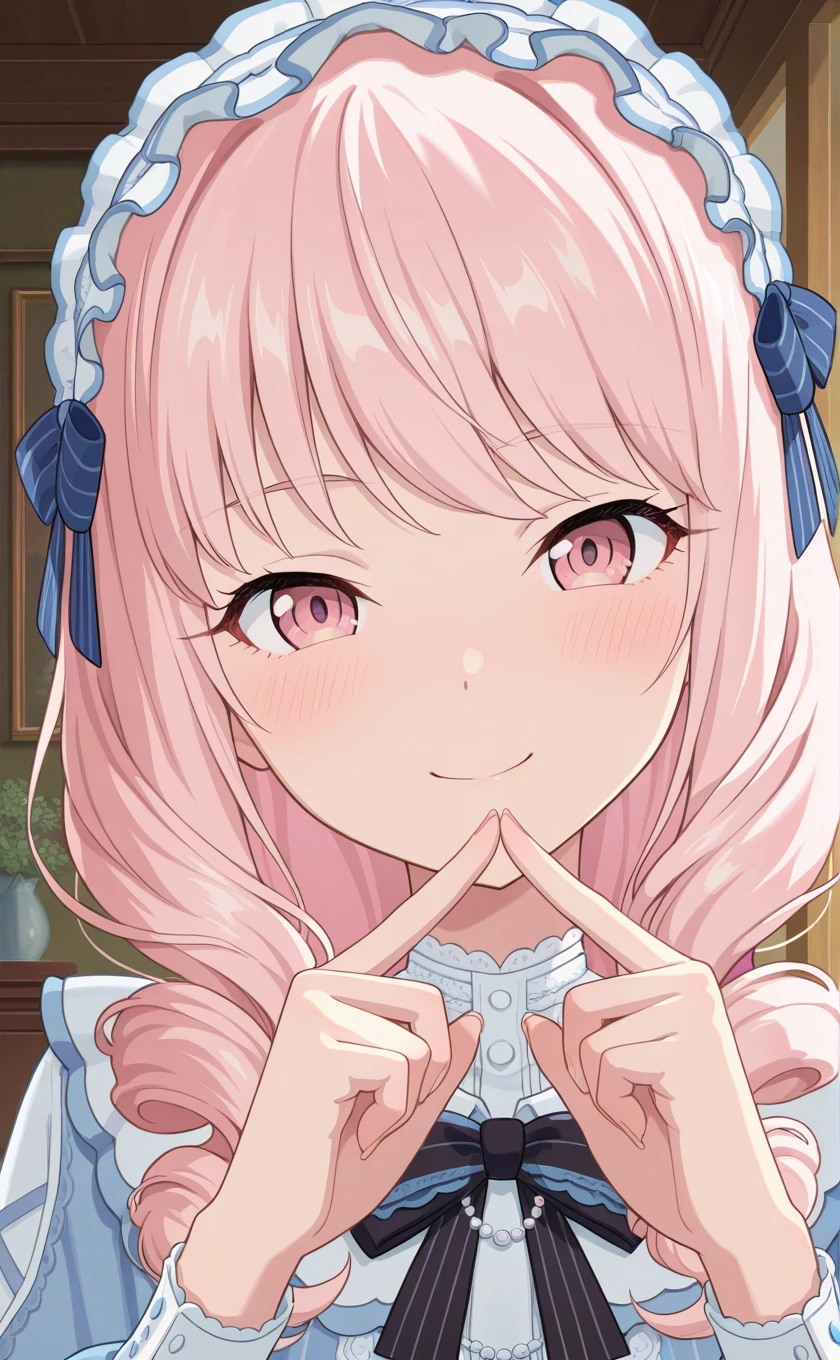 official alternate hairstyle,hairband,long hair,pink hair,drill hair,pink eyes