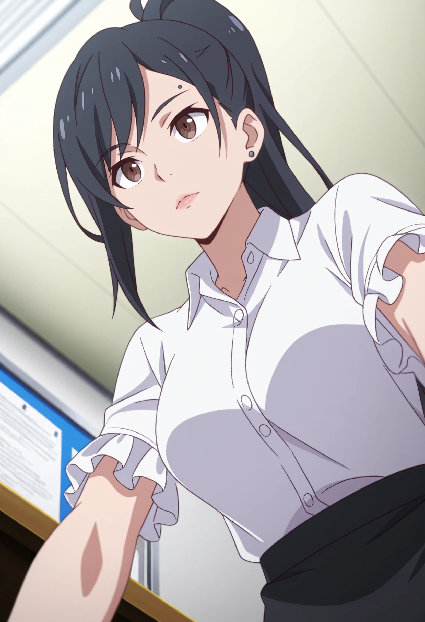 SSNLemming, long hair, ponytail, black hair, brown eyes, swept bangs, high ponytail,