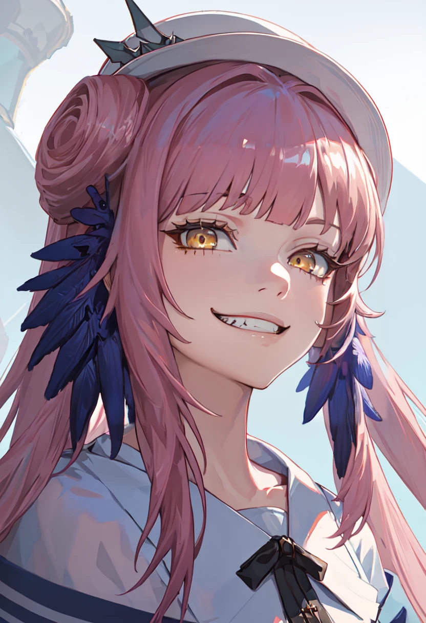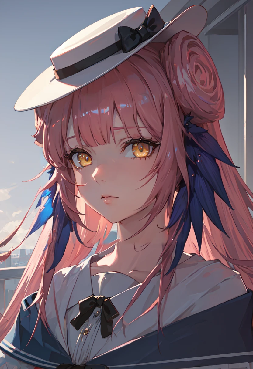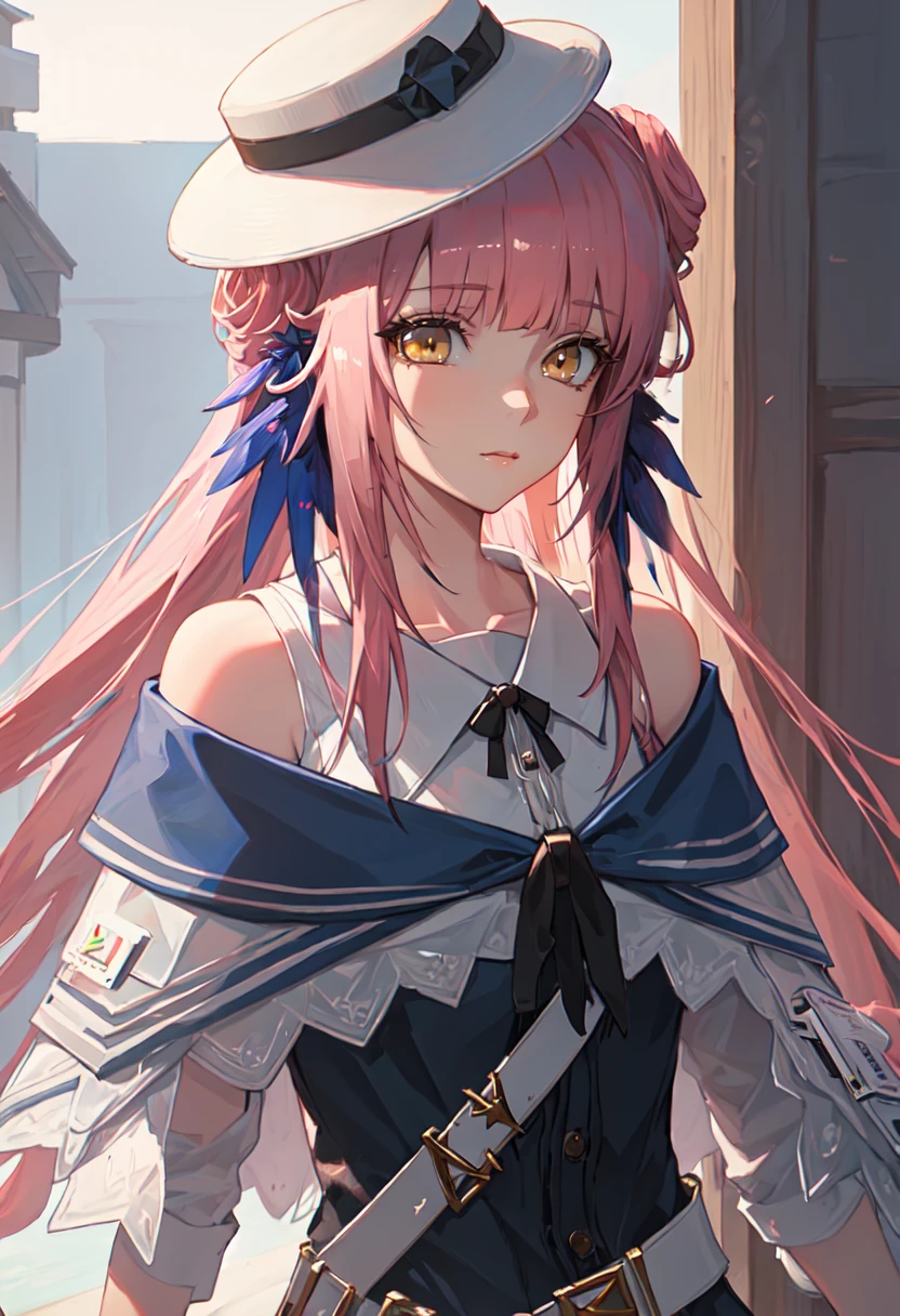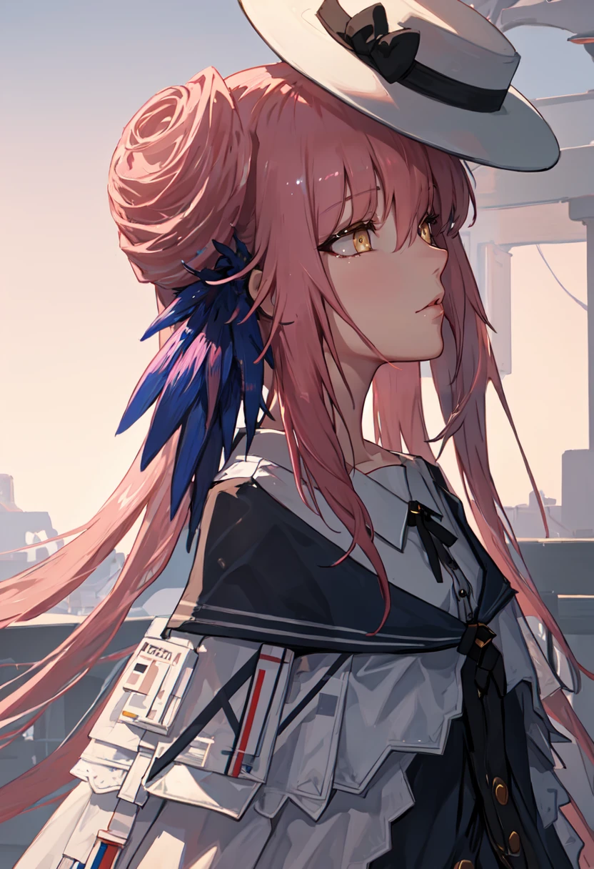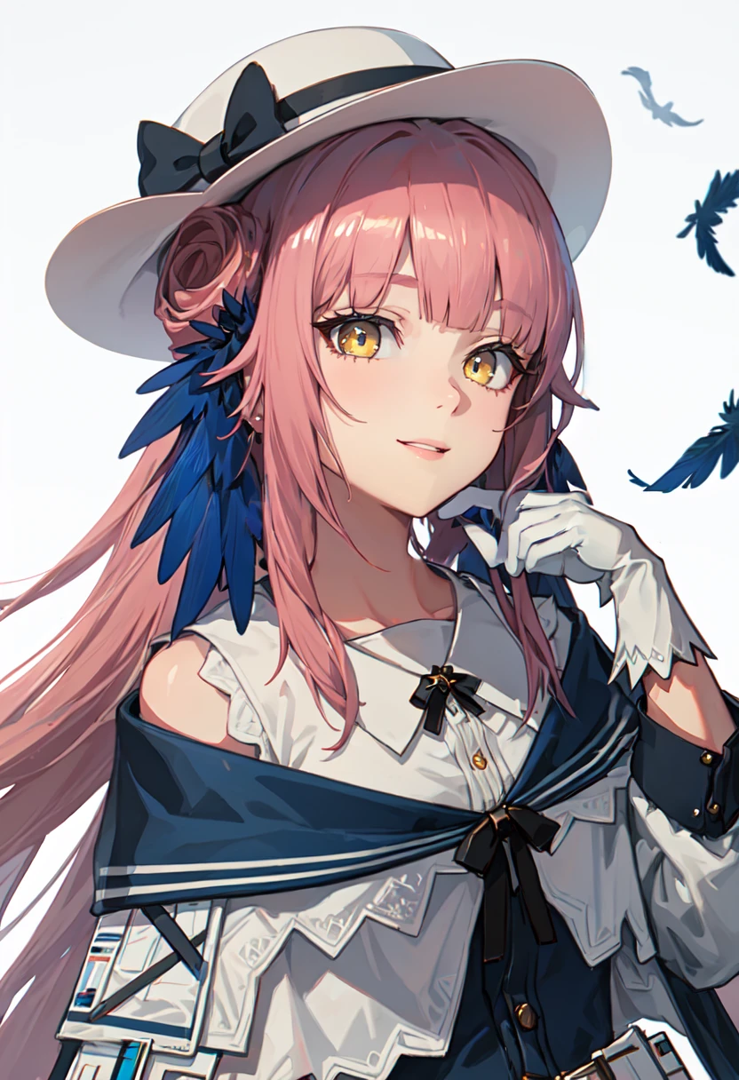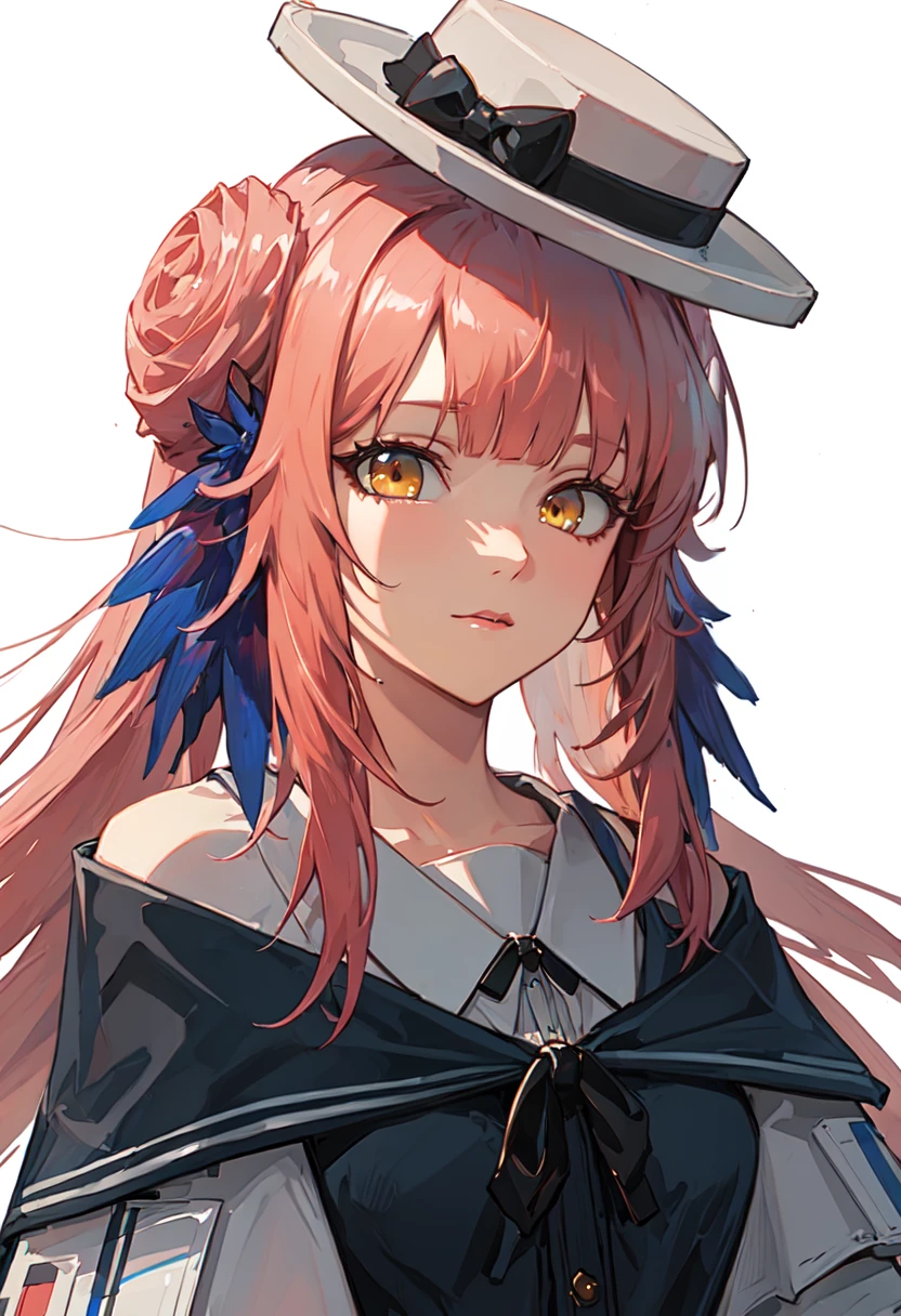 - The pruned character tags are long hair, pink hair, feather hair, hair bun, hat, white headwear, yellow eyes, bow, hat bow, black bow, very long hair. You can add them into prompts when core features (e.g. hair color) of character is not so stable.
