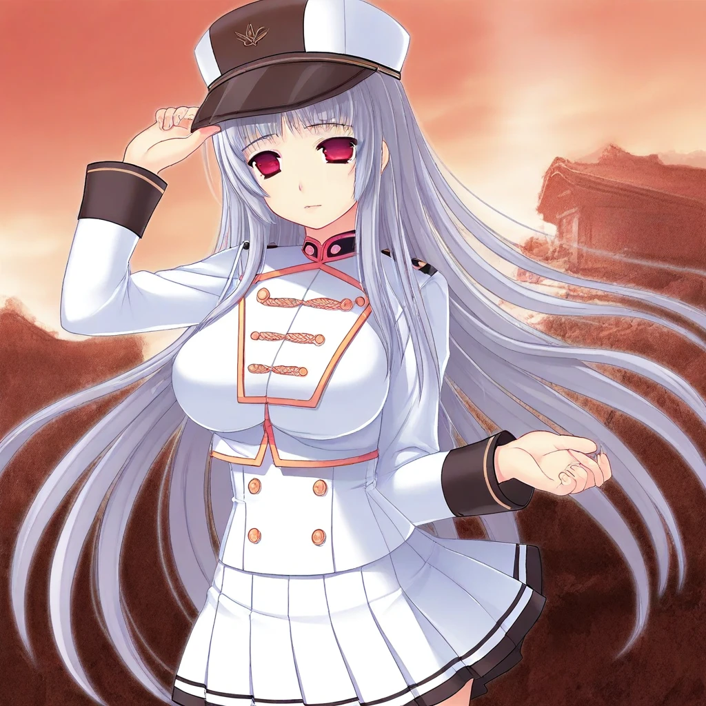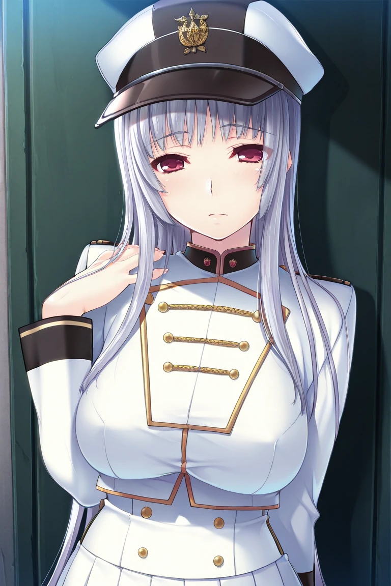 sayako-uniform, hat, white coat, white skirt, pleated skirt,