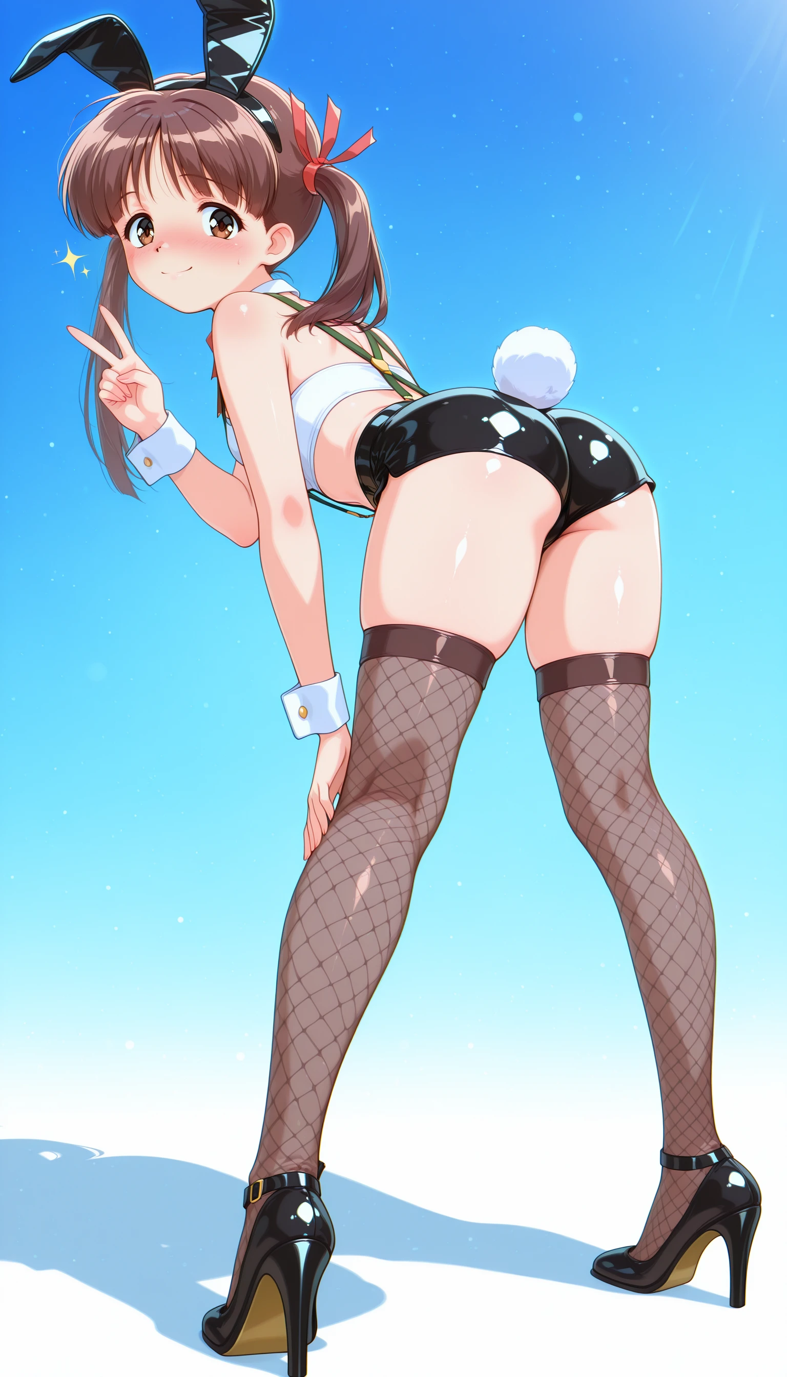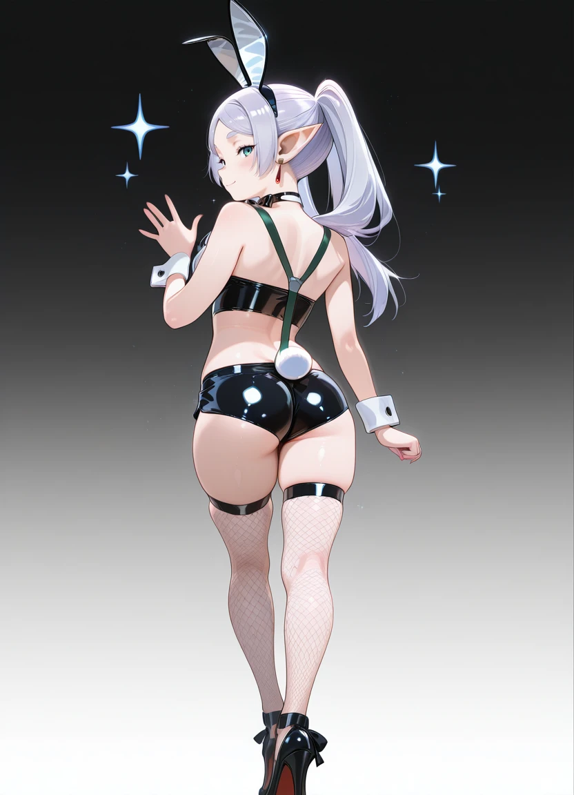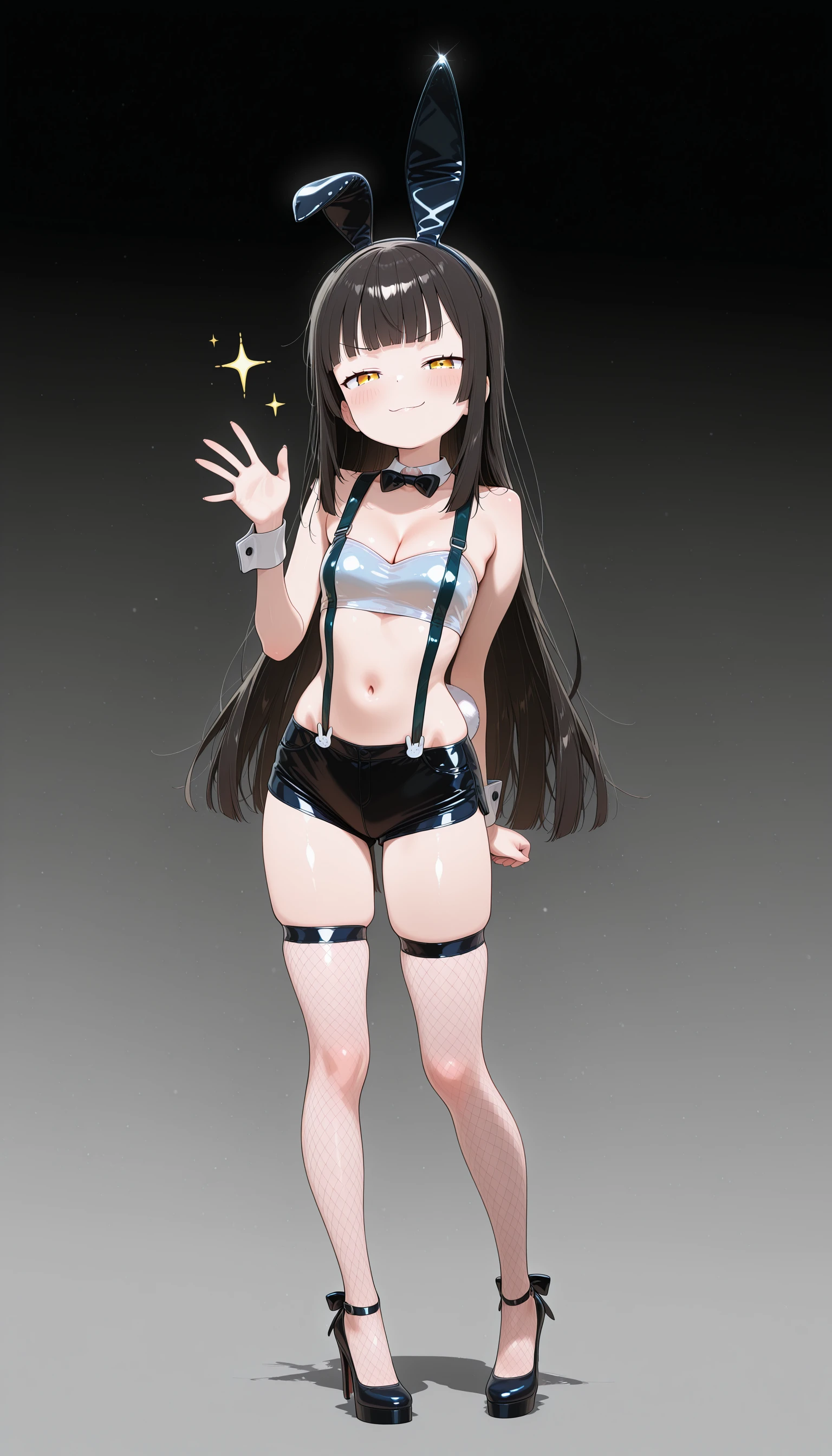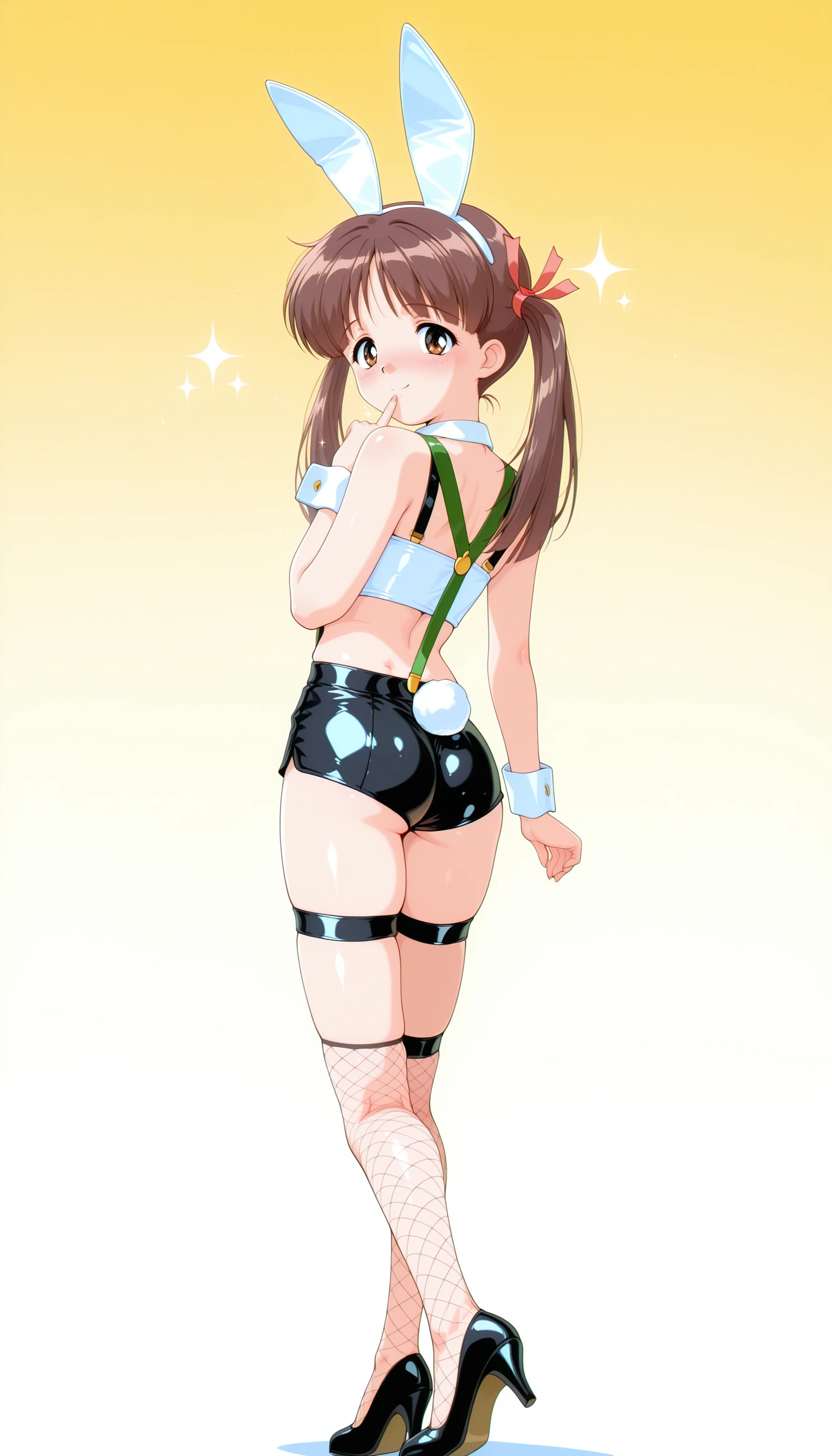 Trigger word and reccomended prompts: slimbunnysuit, latex shorts, white tubetop, rabbit tail, fake animal ears, fishnet thighhighs, high heels, suspenders, bowtie,