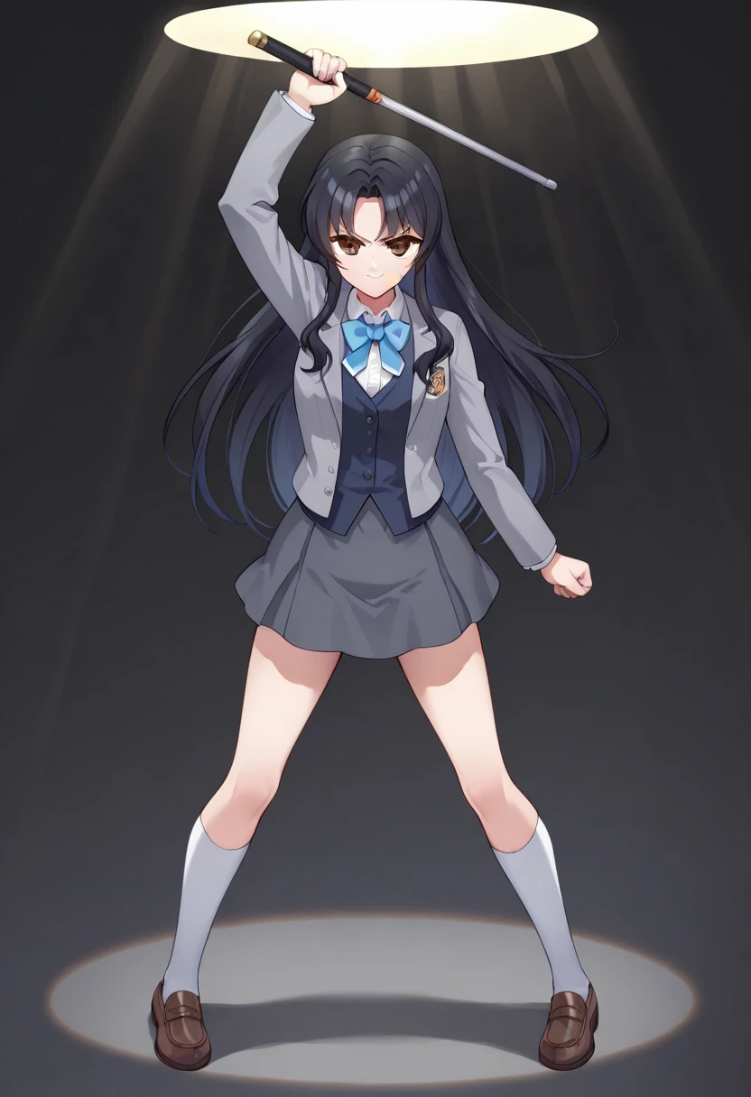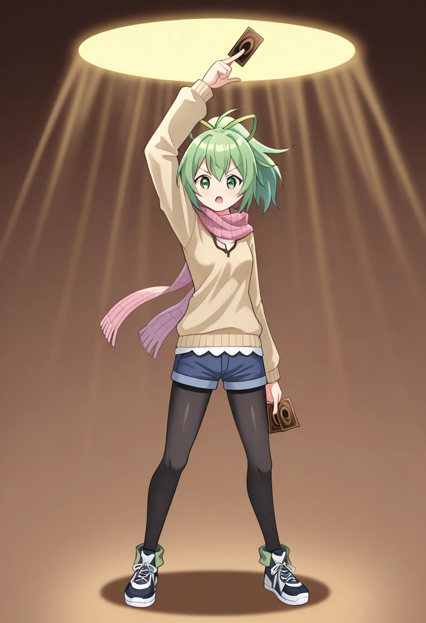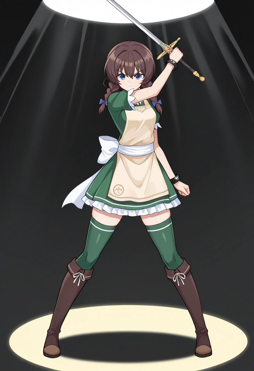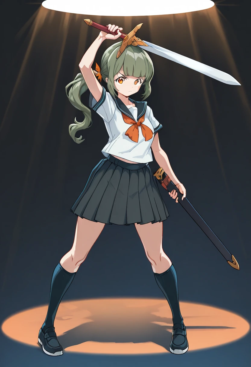 mkaihenshin, holding weapon, arm up, spotlight,