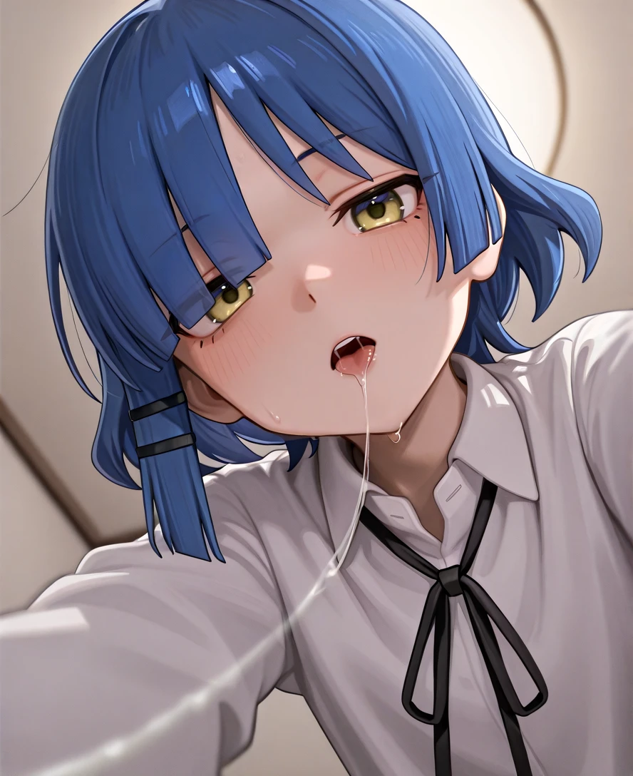 pov, solo, after kiss, upper body, depth of field, from below