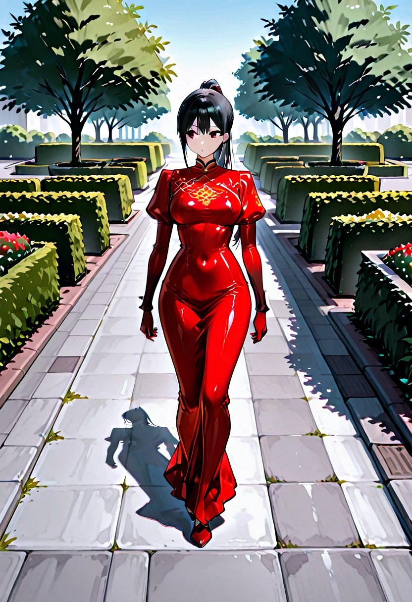 A long dress that covers the entire body from the neck to the feet, including the wrists and fingers.