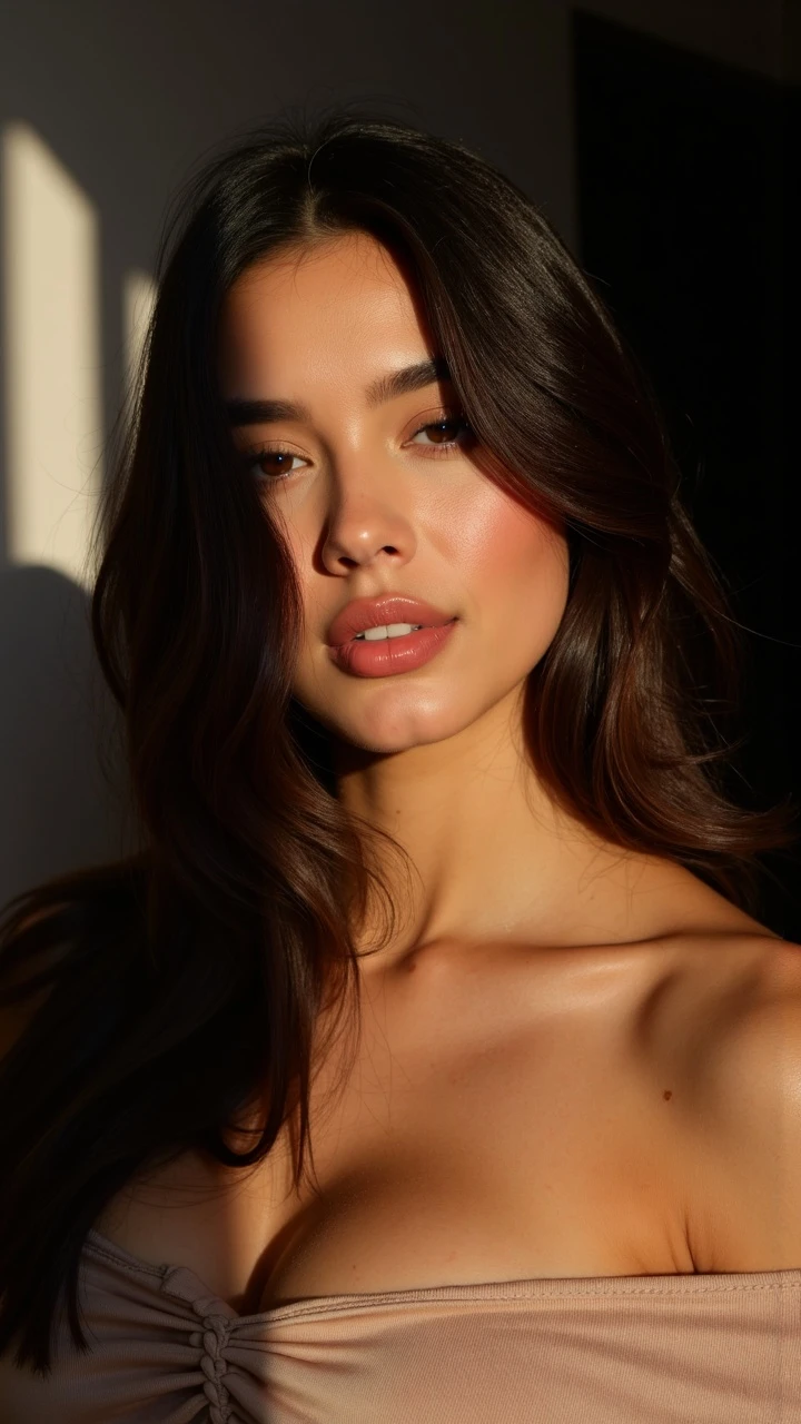 LYNE is a 26 year-old woman. Her facial features are striking yet balanced, creating a timeless and understated elegance. She carries herself with a quiet confidence and an air of thoughtful self-awareness. Her presence speaks for itself. Intelligent, grounded, and composed, she is unforgettable—mysterious, and effortlessly captivating.