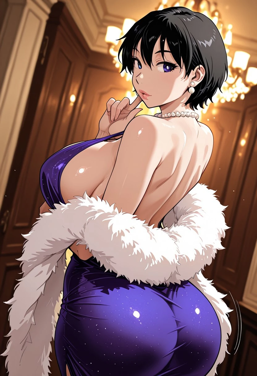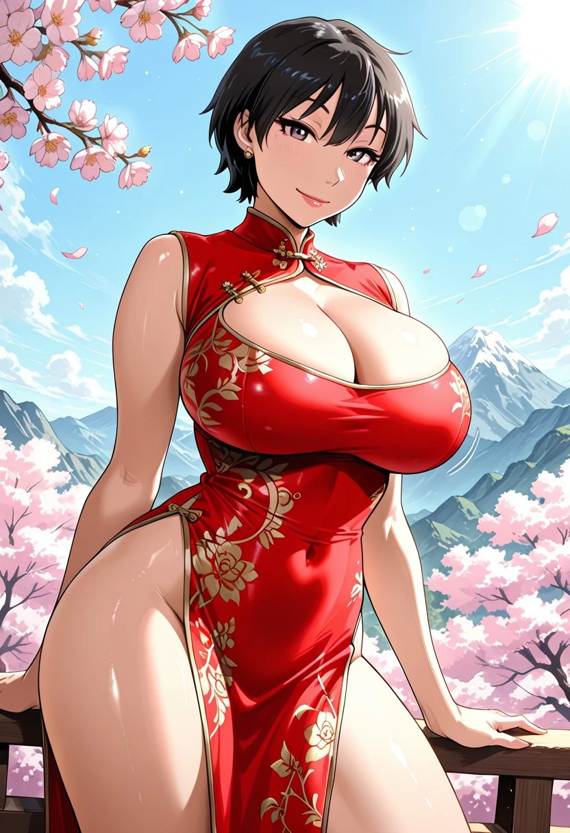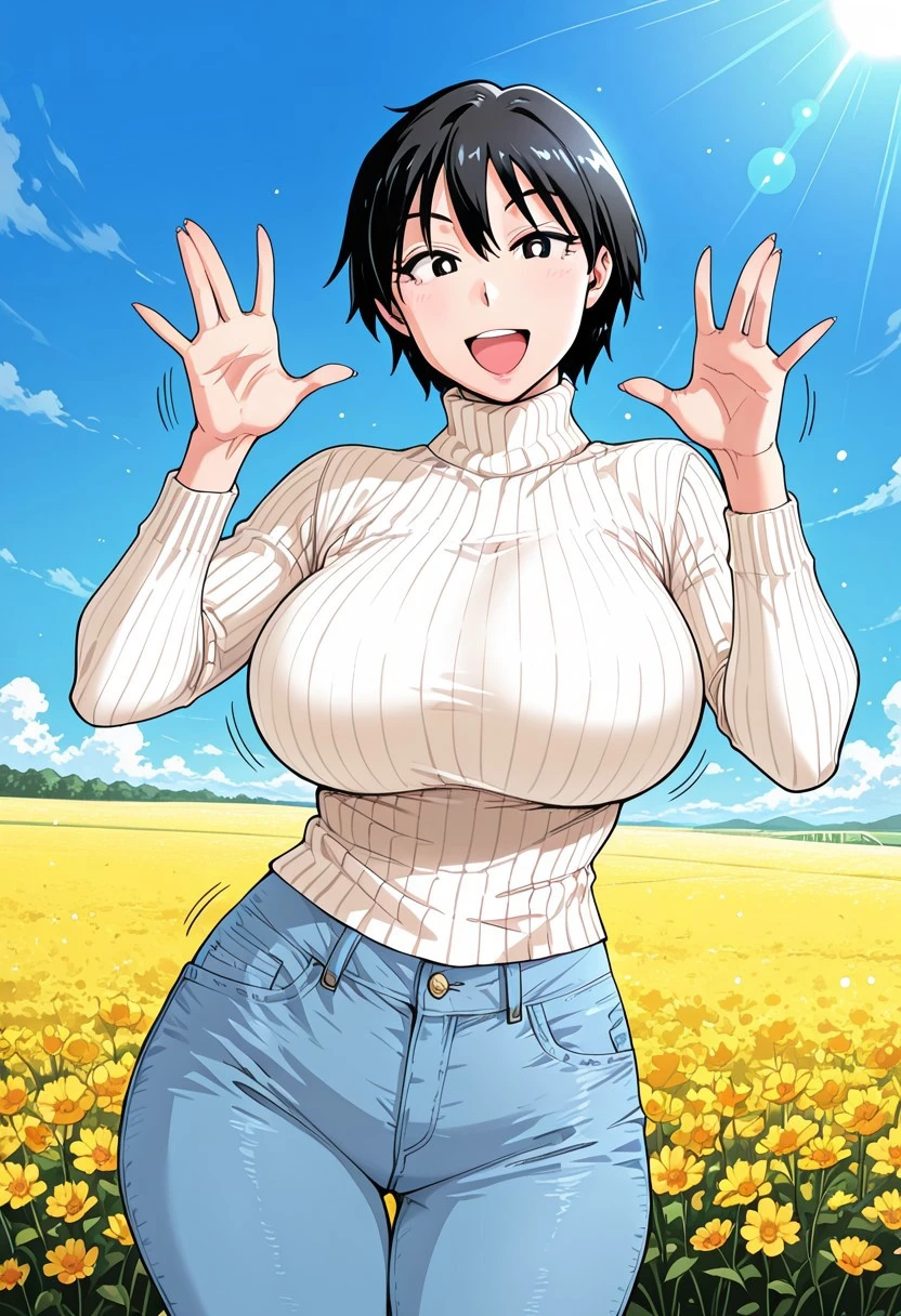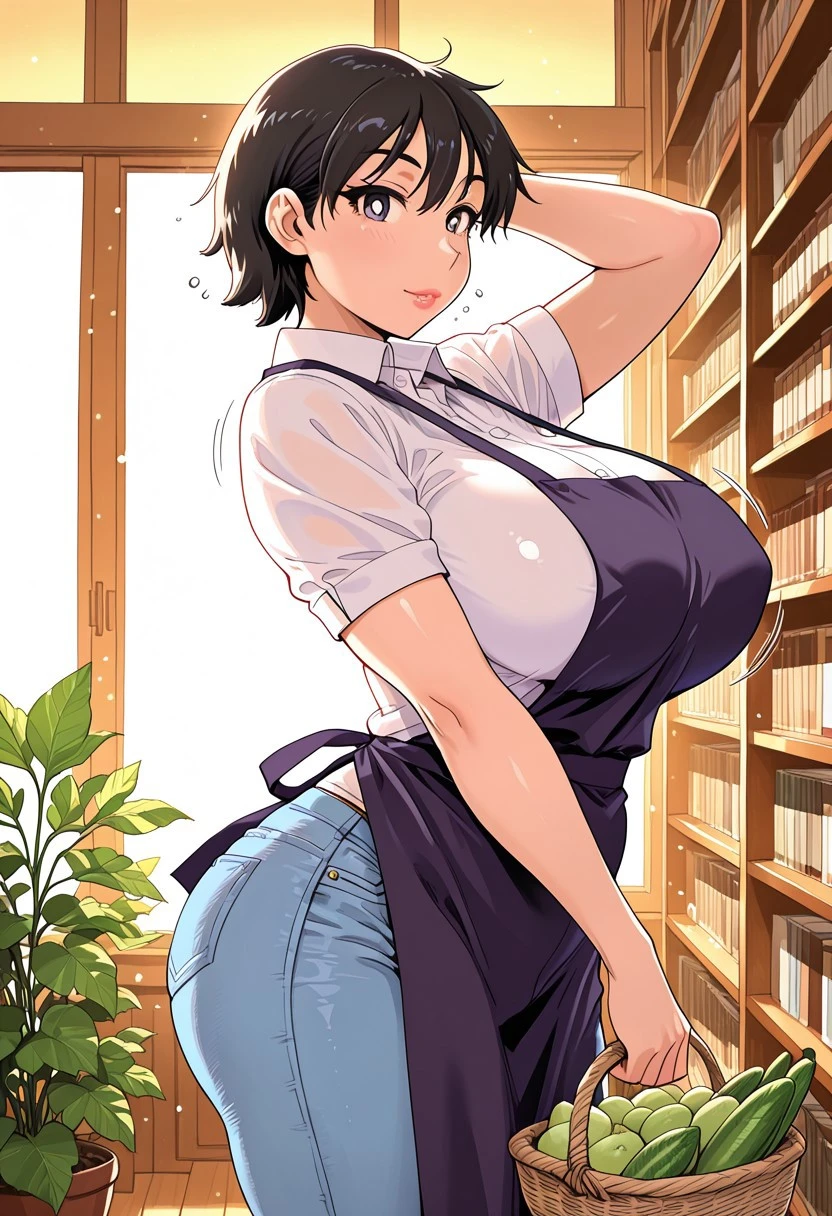 yu8k2 ((yu8k2: busty woman with short hair with messy bangs, very-huge breasts, black hair, )) huge breasts, sexy lips, oversized natural breasts, skindentation, perky natural breasts, normal waist, wide hips, voluptuous body, curvy, hourglass body, sexy milf