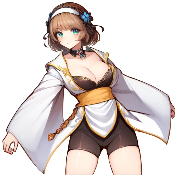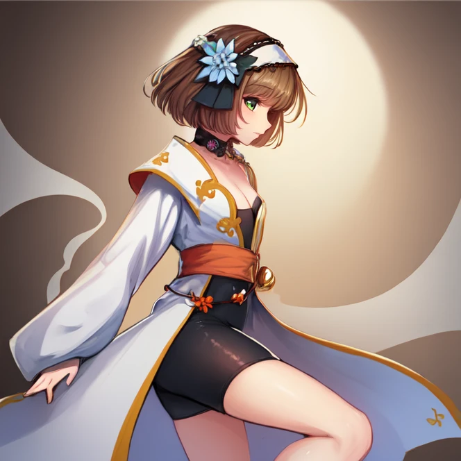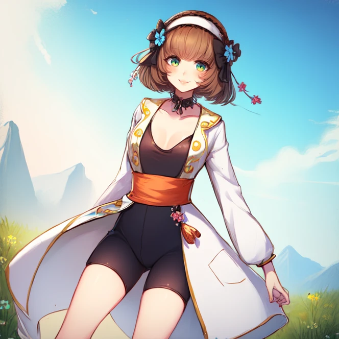 Even though her outfit actually consists of a white coat with a black short bodysuit underneath, I had problems generating her looks with the "bodysuit" tag, most likely due to the checkpoint interpreting bodysuit as something akin to what Zero Suit Samus' bodysuit is like. Thus you might want to instead prompt for "black top" and "bike shorts".
