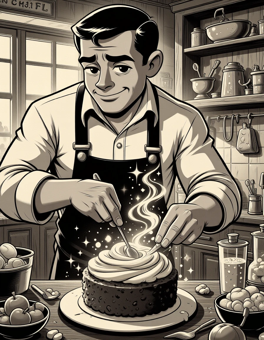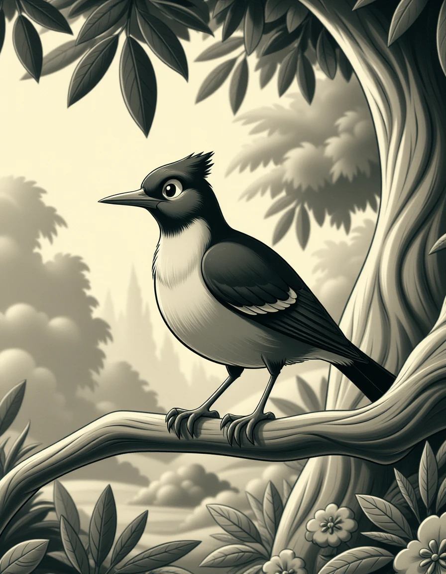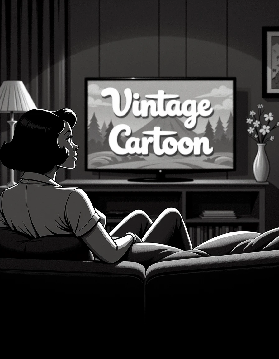 The "B&W Vintage Cartoon" style captures the essence of classic black-and-white animation, reminiscent of mid-20th century cartoon art. It features smooth lines, simple shading, and expressive characters, often with exaggerated features like large eyes or pronounced gestures, set in nostalgic environments. The monochrome palette emphasizes light and shadow, creating depth and contrast without relying on color. This style is timeless, evoking a sense of charm and elegance with its clean and stylized form, often used for storytelling in a cozy or whimsical setting.