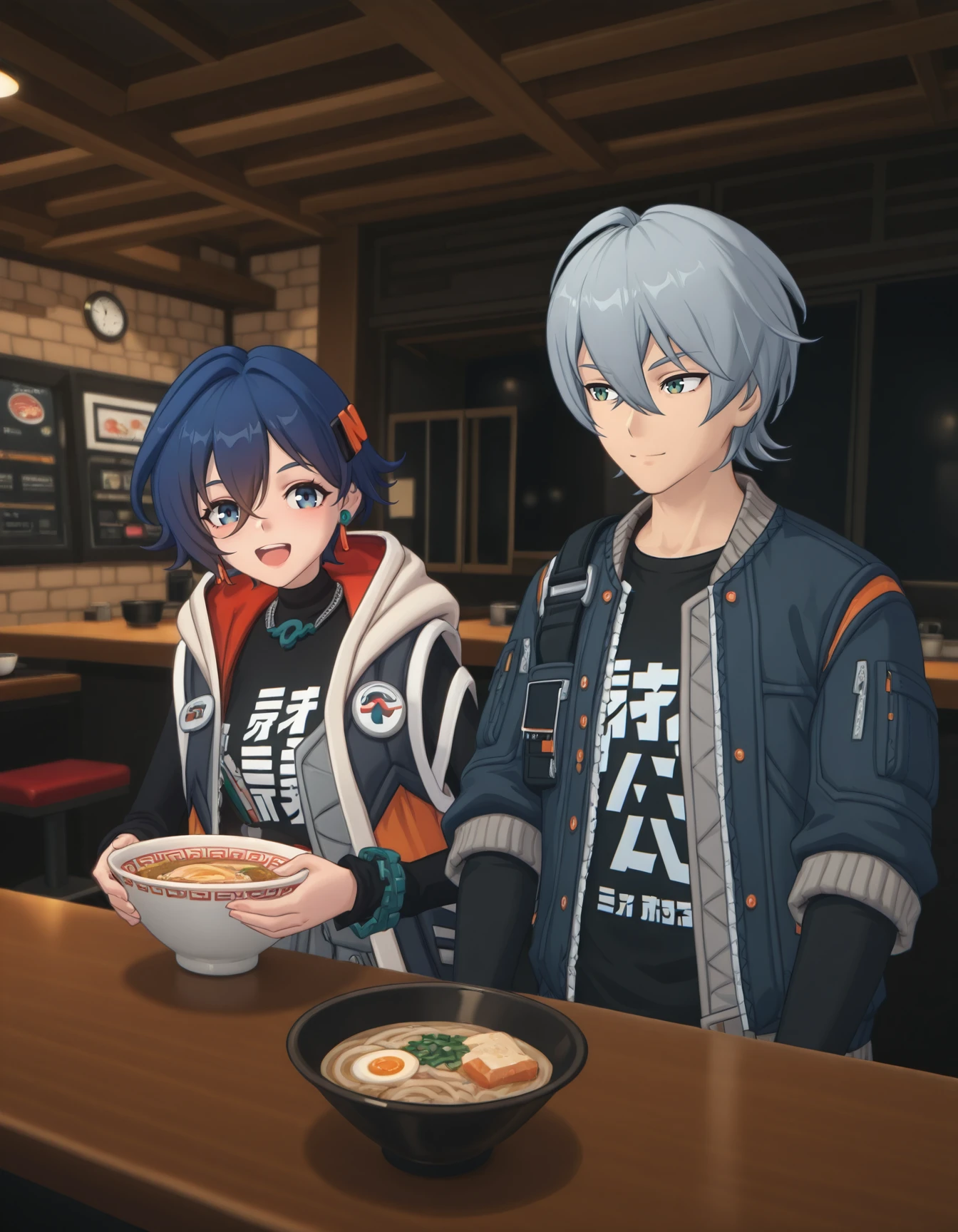 ak1r4, short over long sleeves, open jacket, black shirt