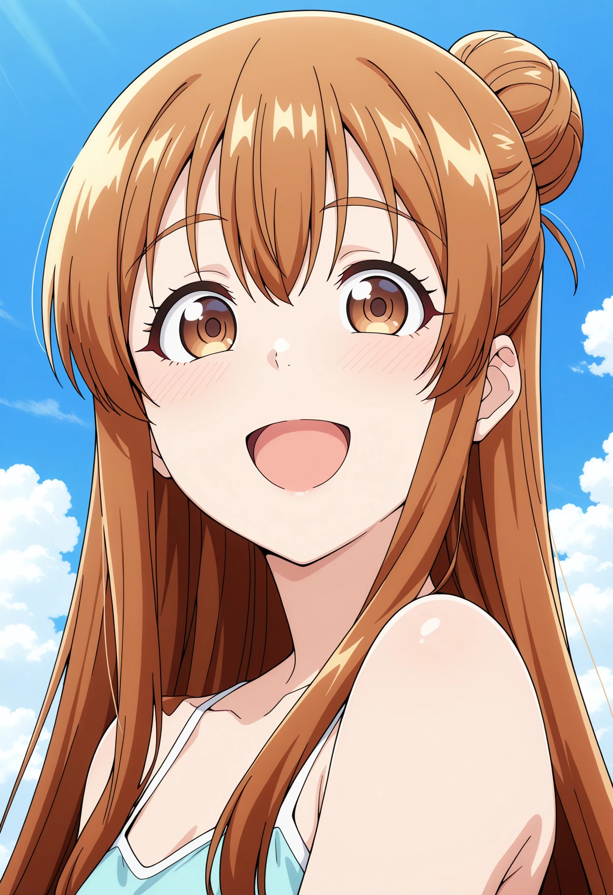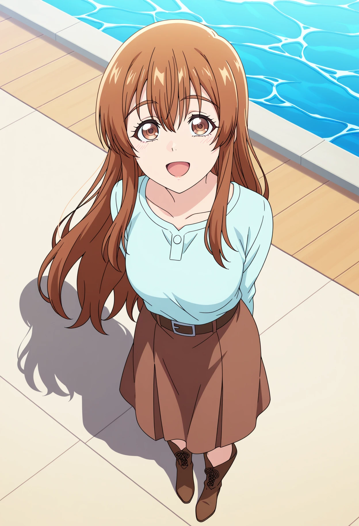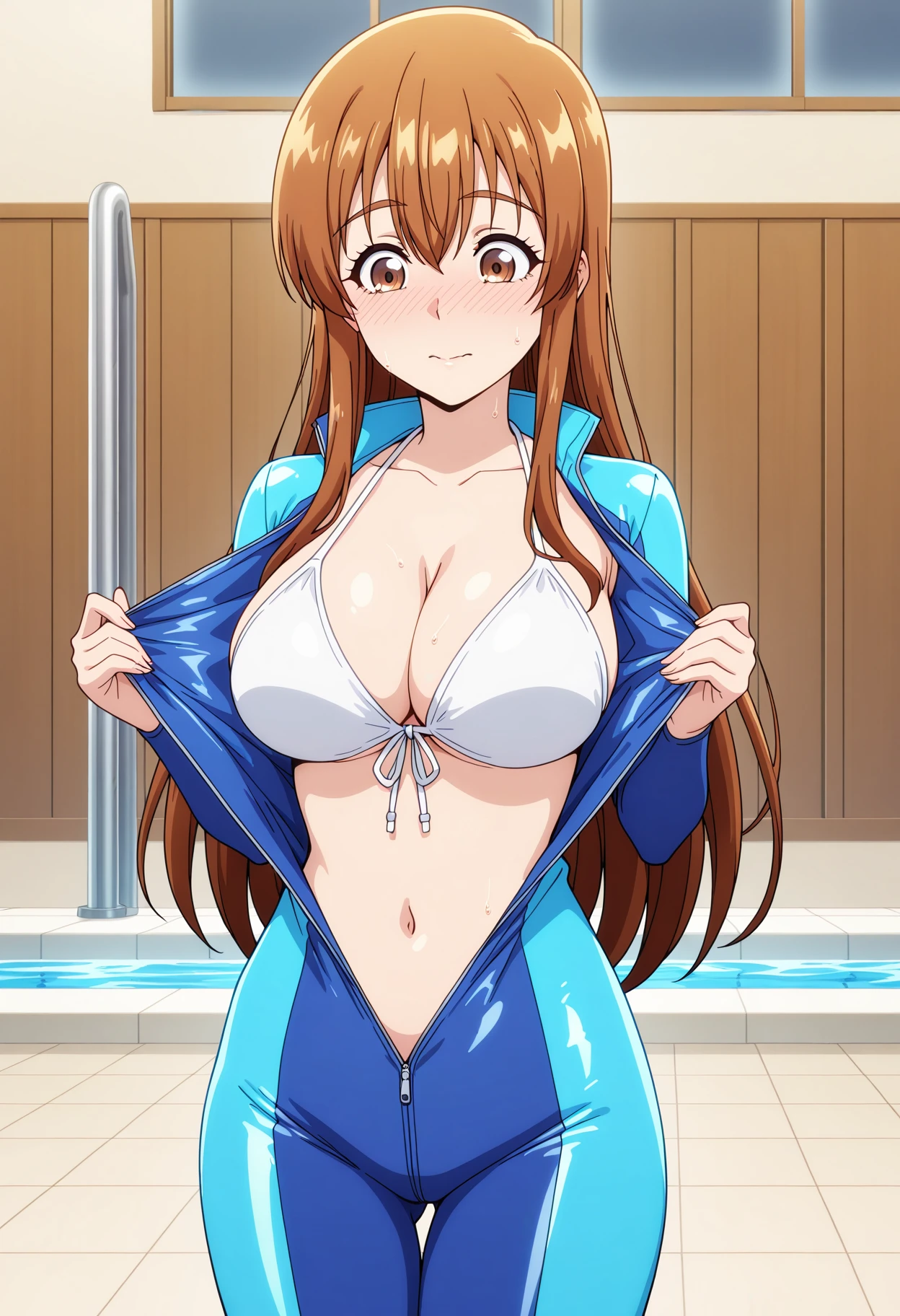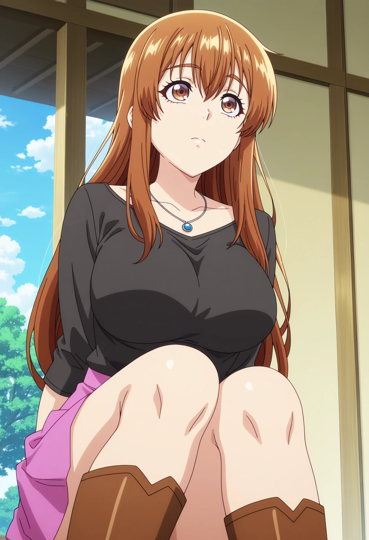 shinanakakotegawadef, long hair, brown hair, brown eyes, large breasts, necklace,