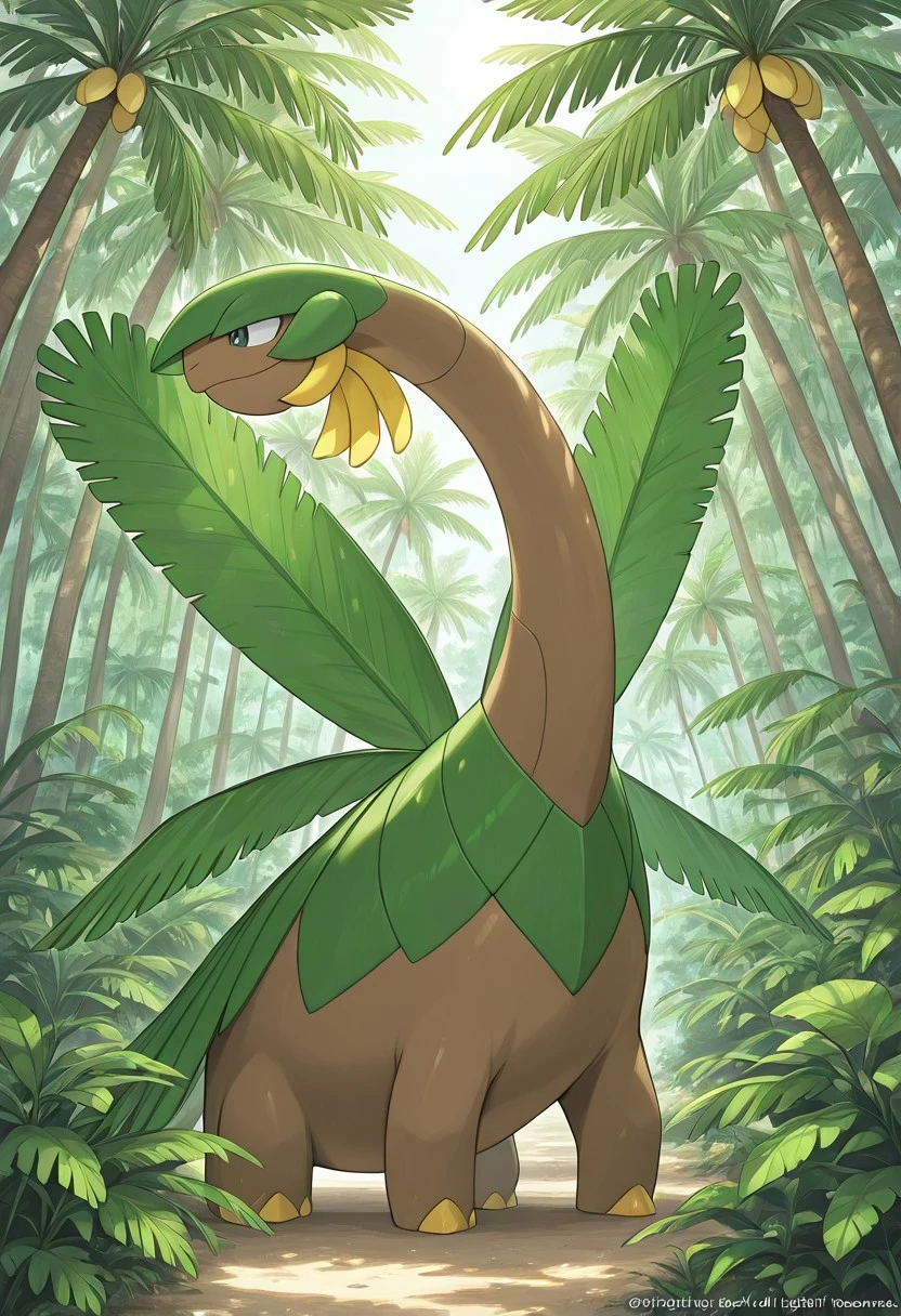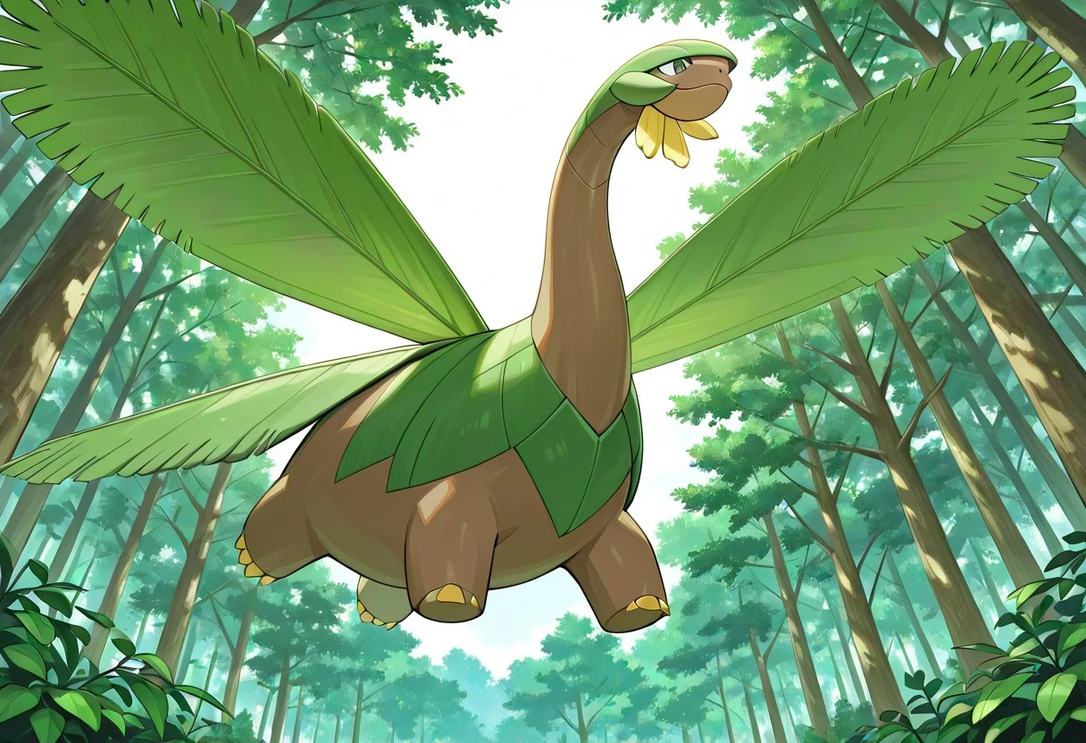 tropius_pkmn, brown skin, green leaf wings, bananas hanging from neck