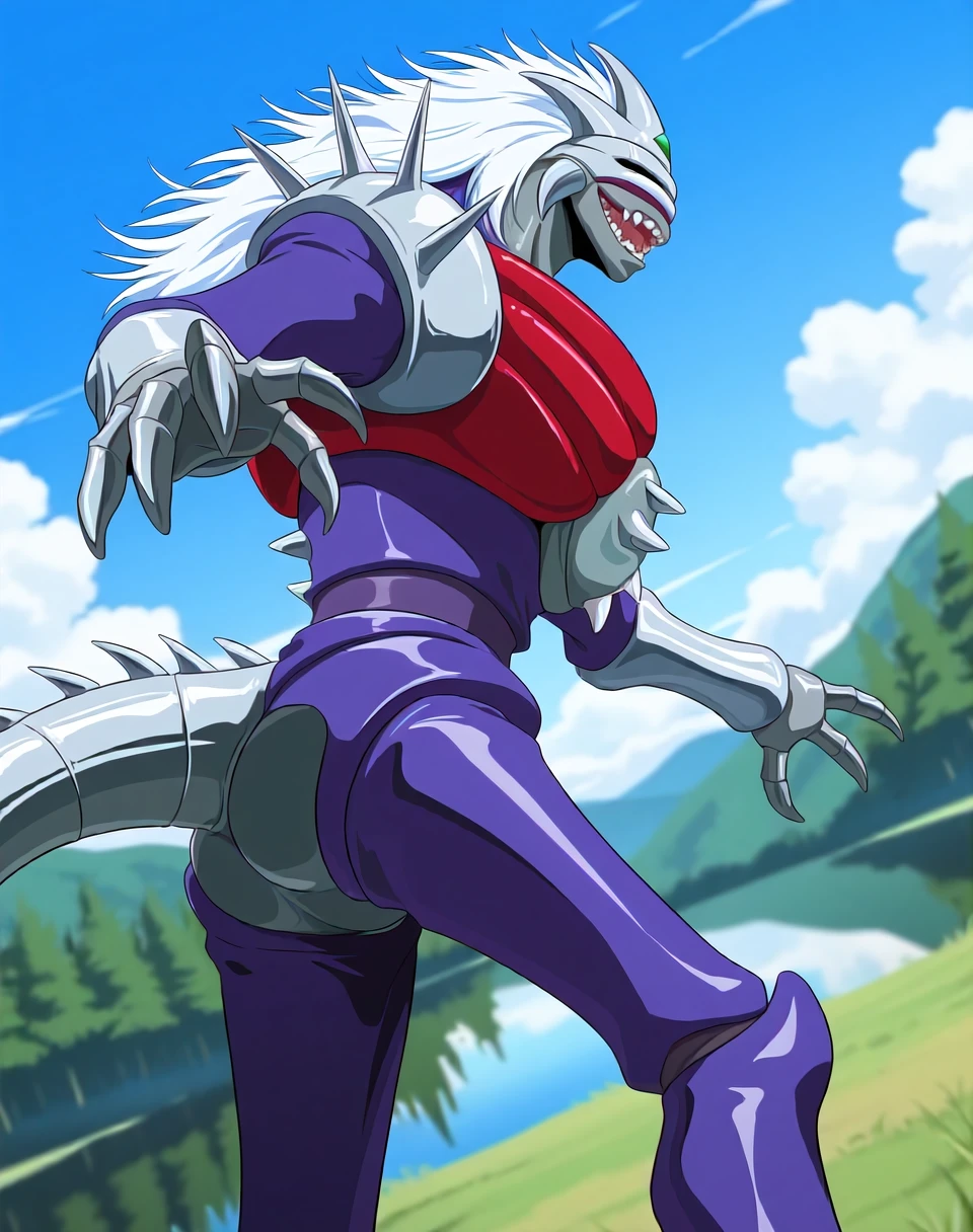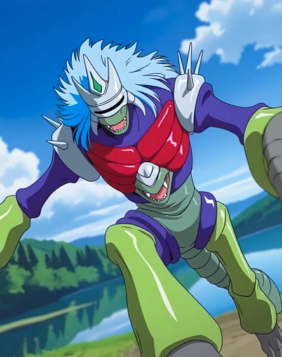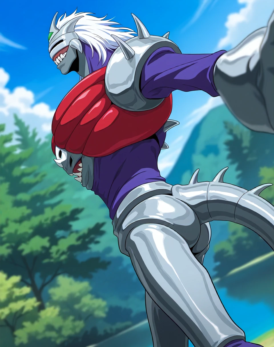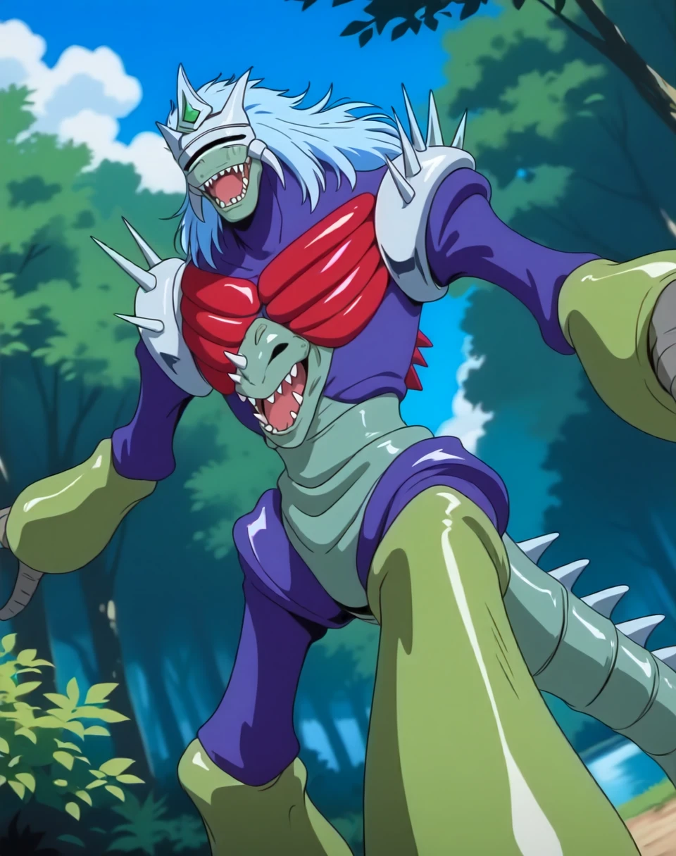 Sometimes adding prompts like ( wide upper body, red chest, teeth, ) can help with making pictures in some cases.