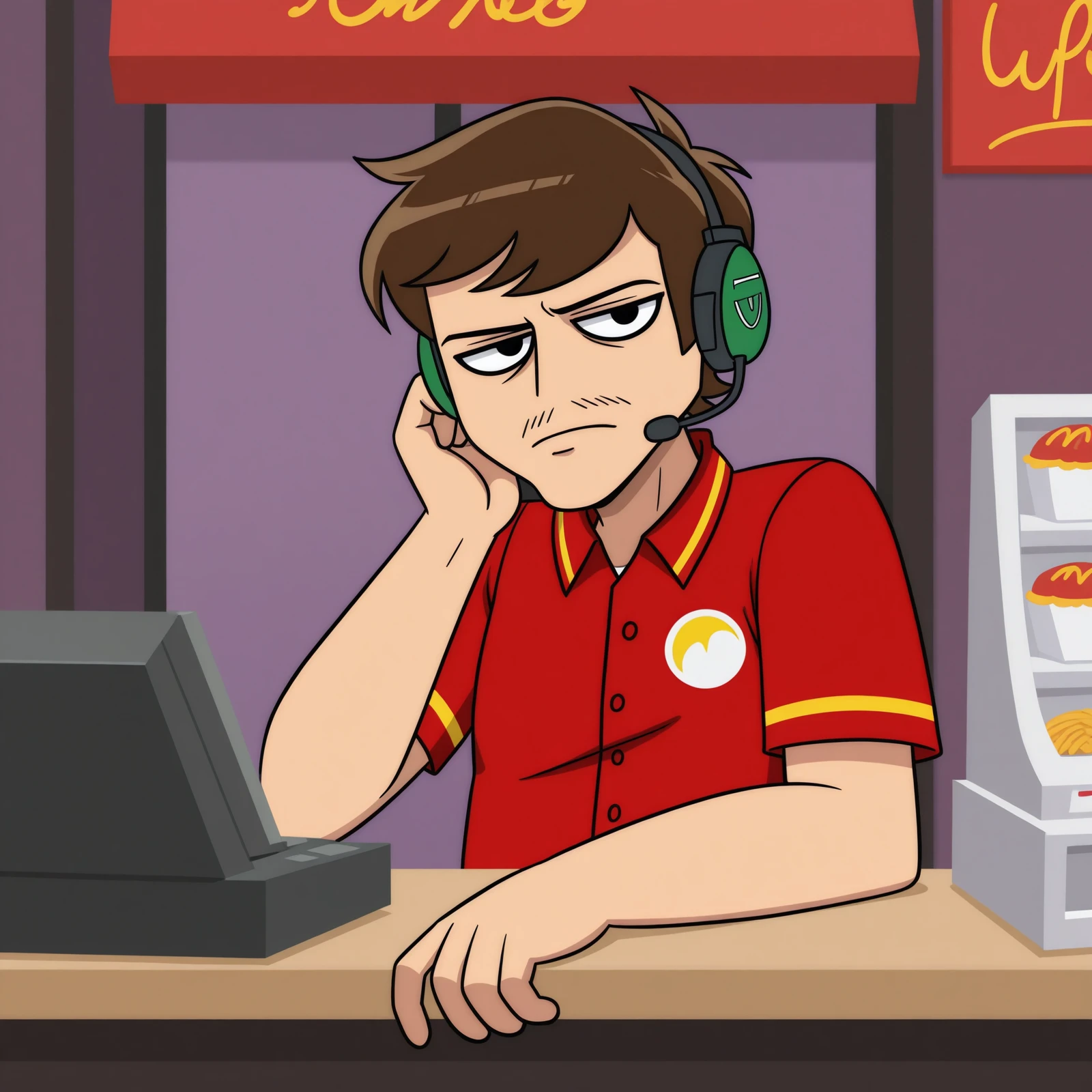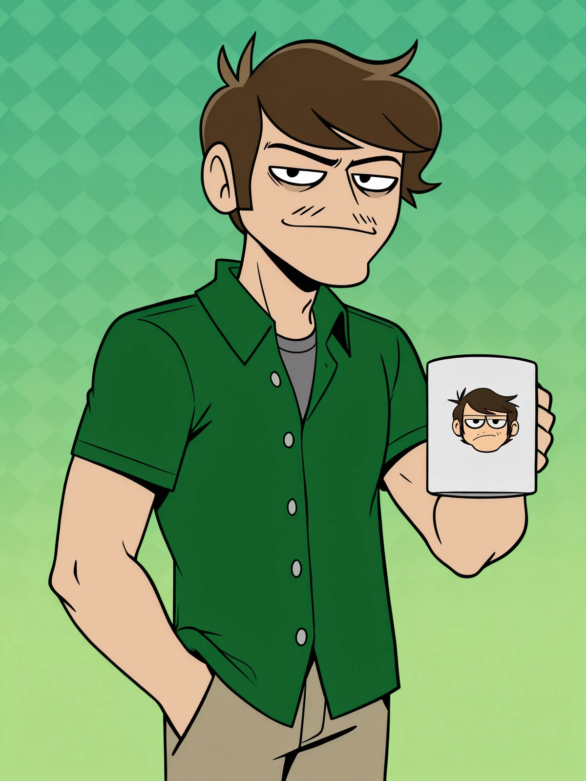 Main Prompts: Eduardo_Eddsworld, brown hair, bangs, short hair, black eyes, mustache stubble, facial hair,