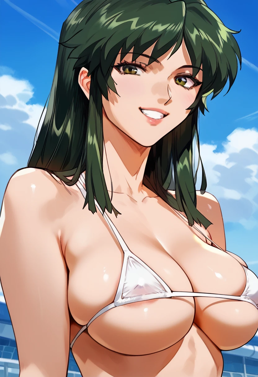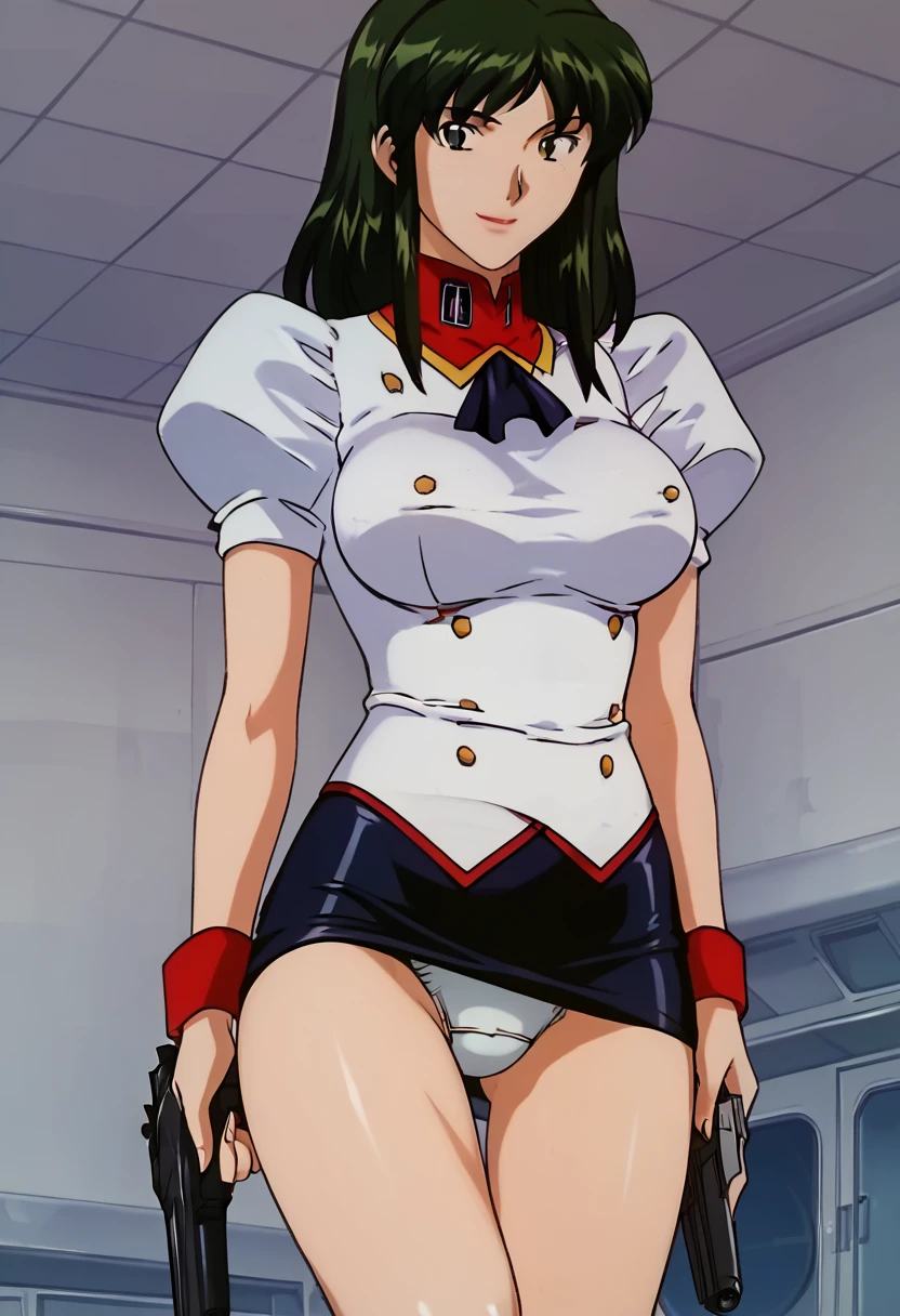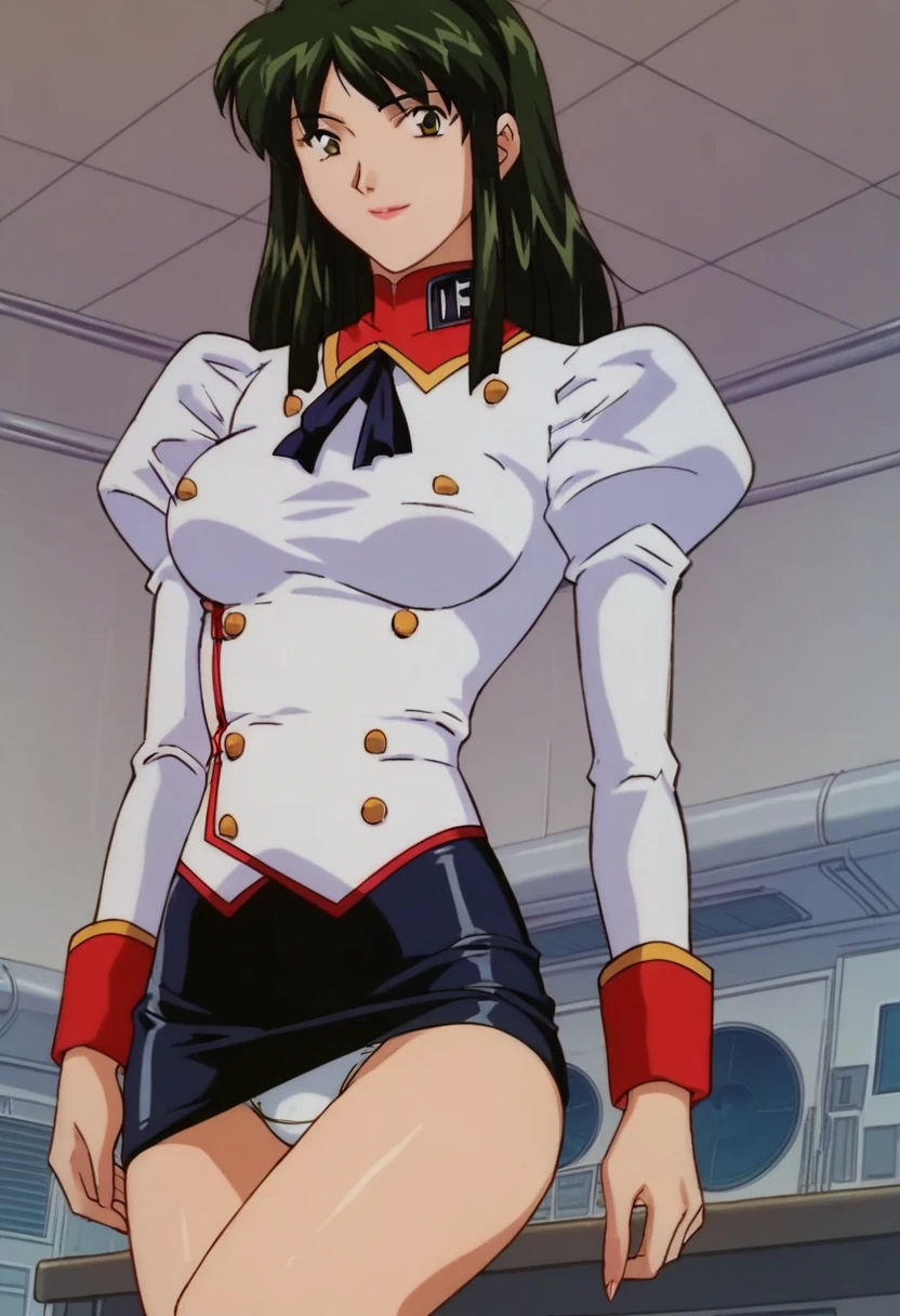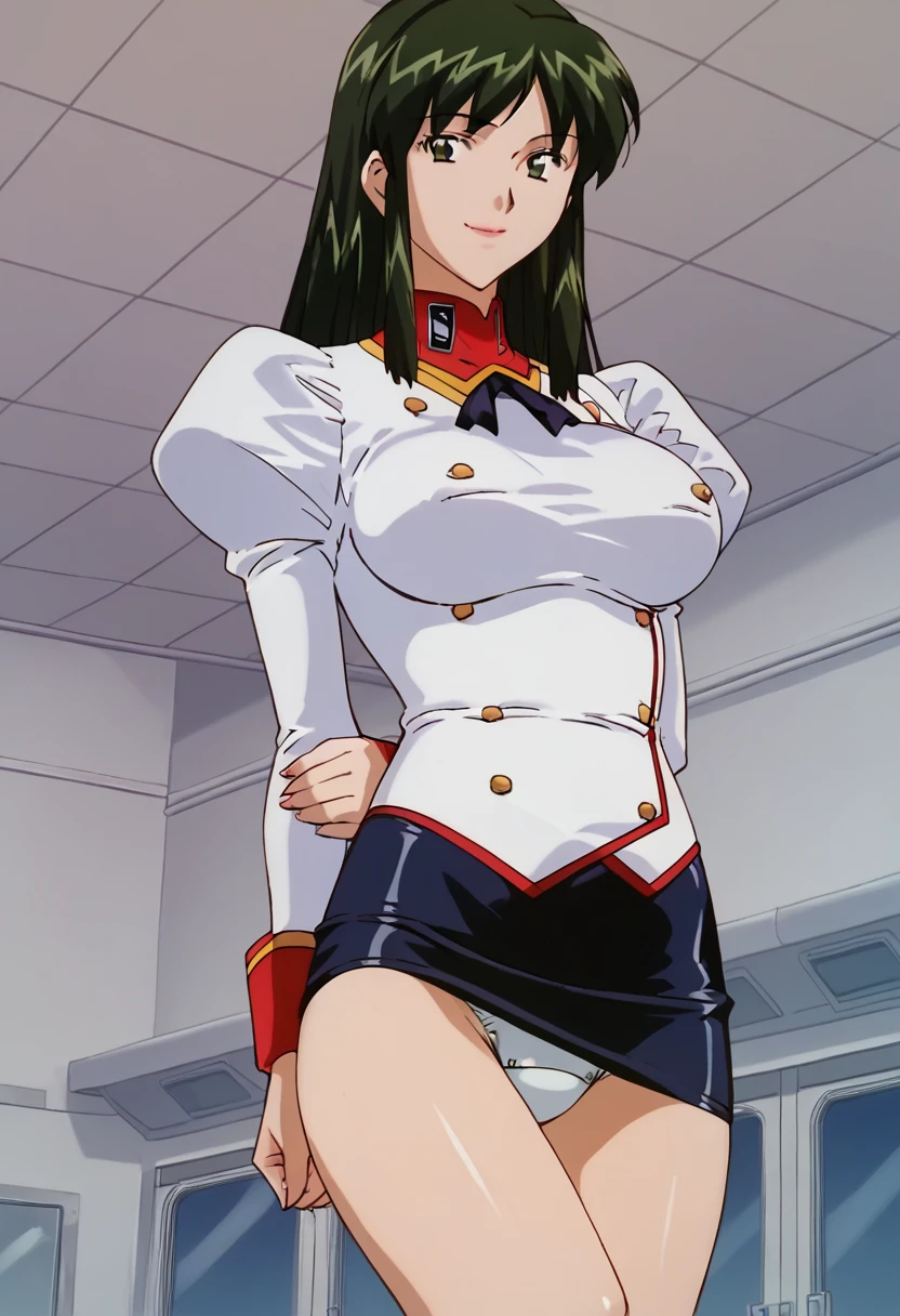 delmo com, green hair, uniform, puffy sleeves, pencil skirt