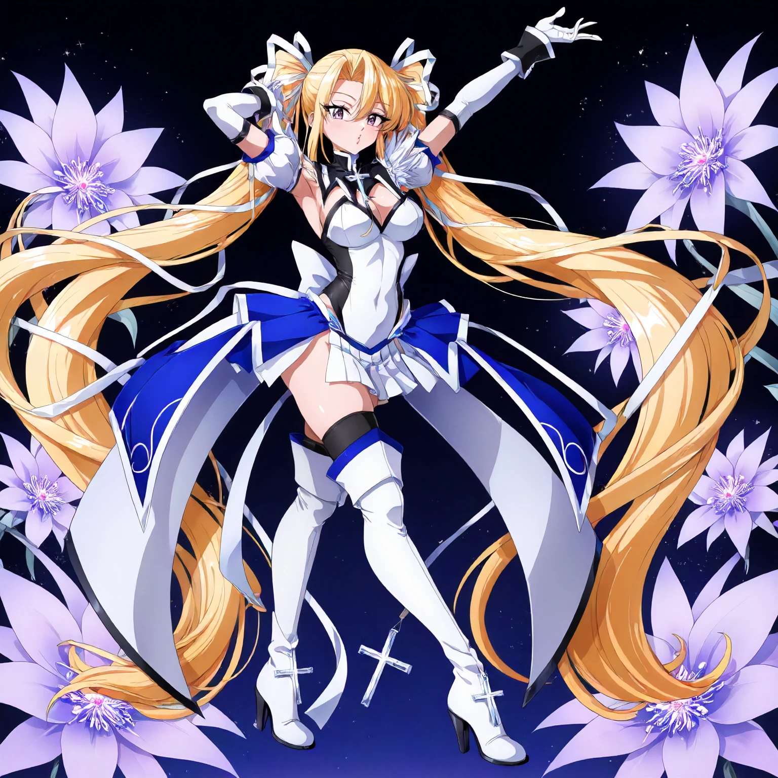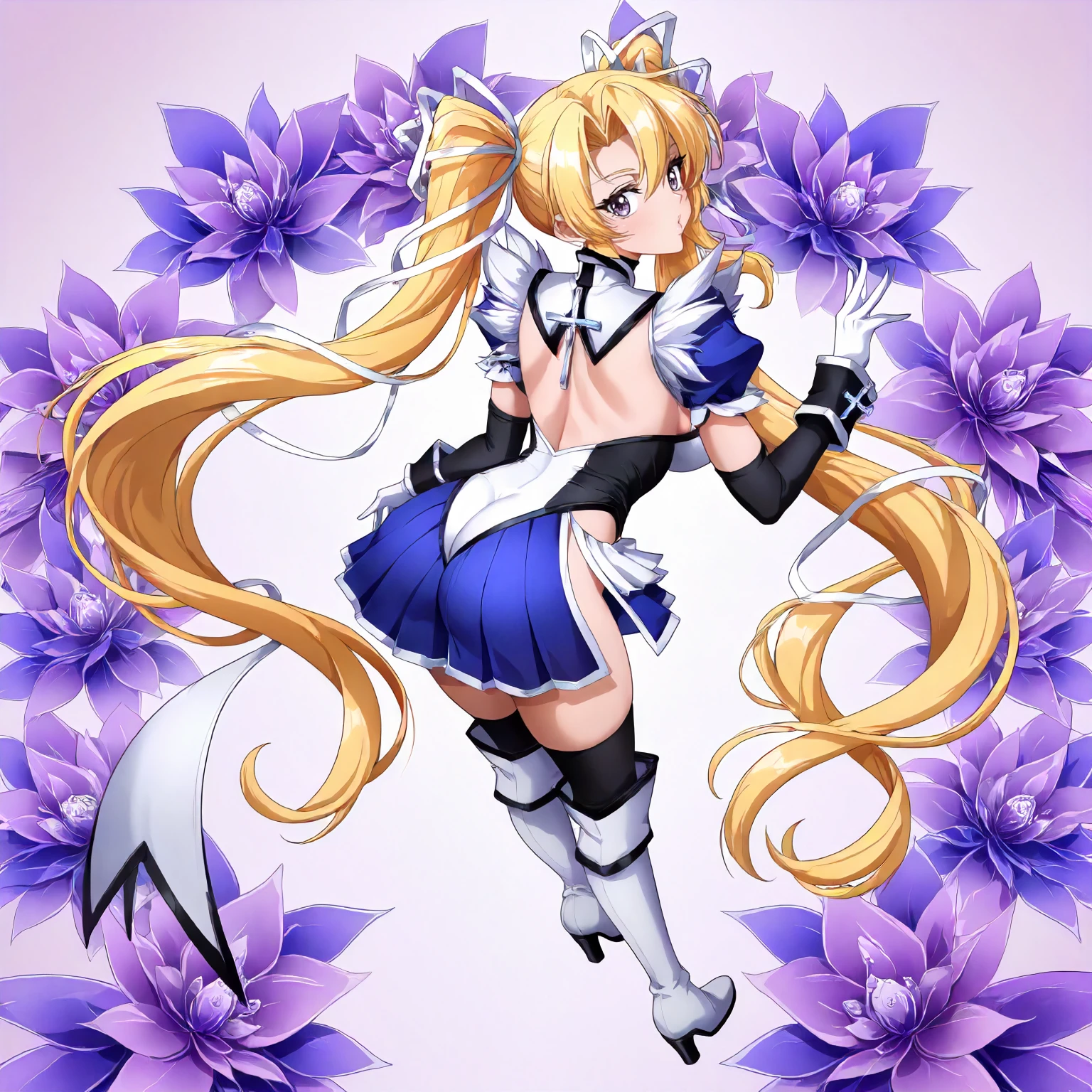 anime coloring, elice\(magical_girl_elice\),1girl,blonde hair,long twintails,hair ribbon,black purple eyes,